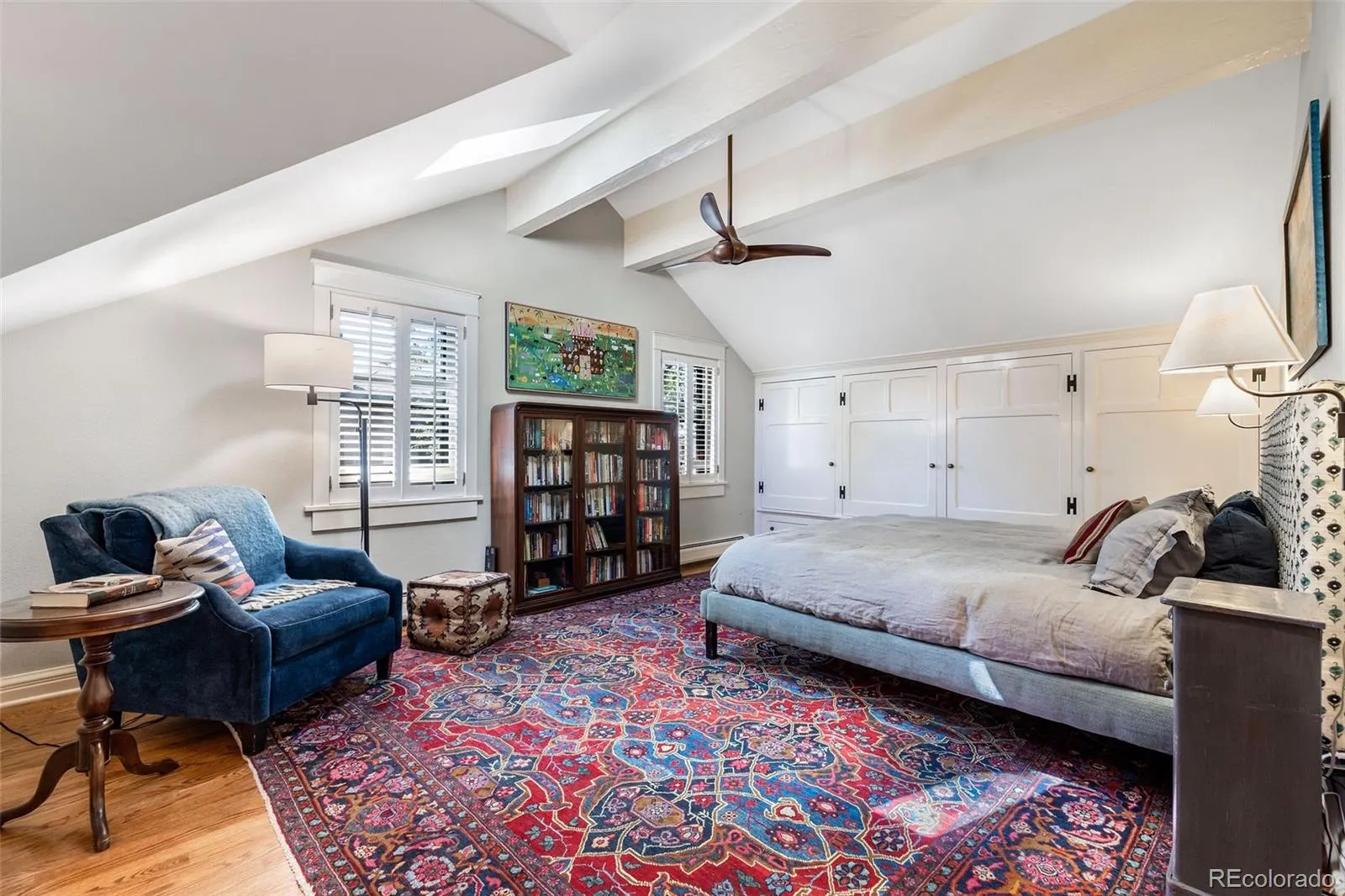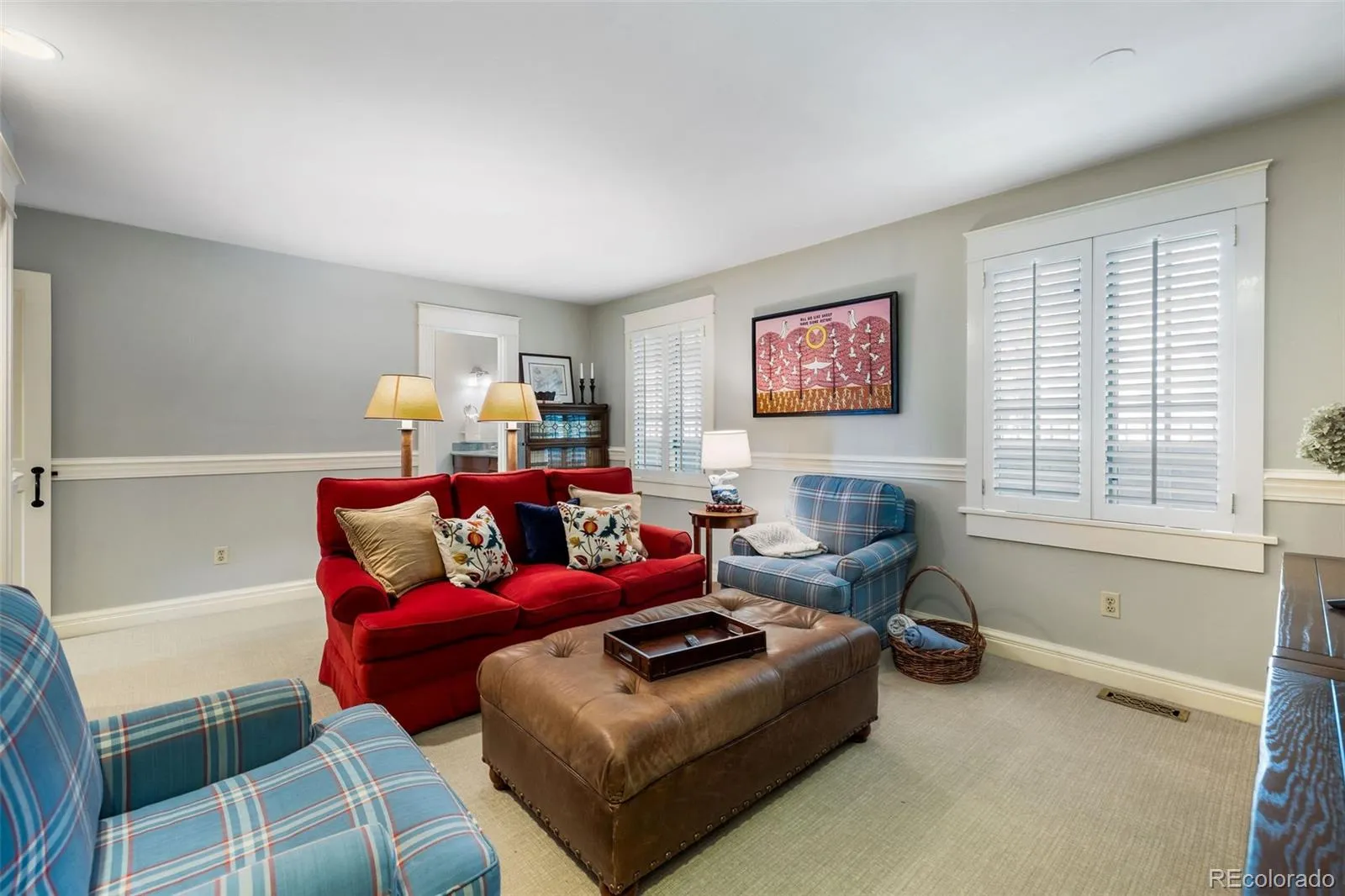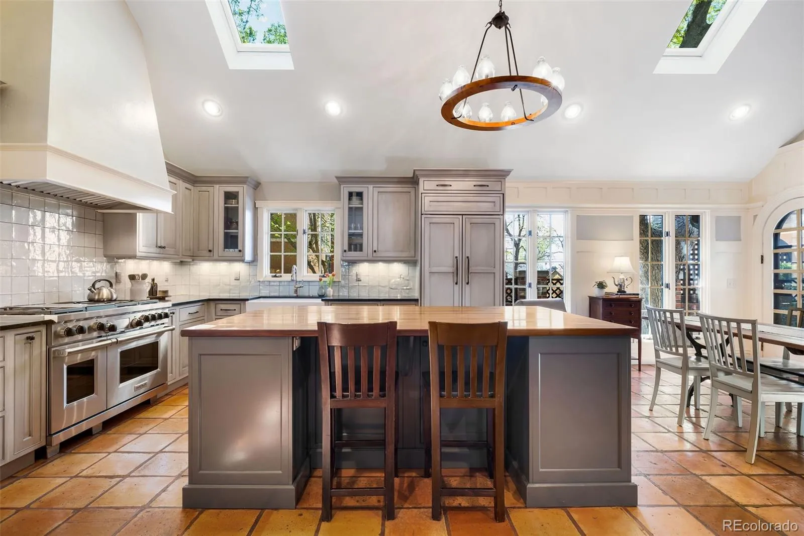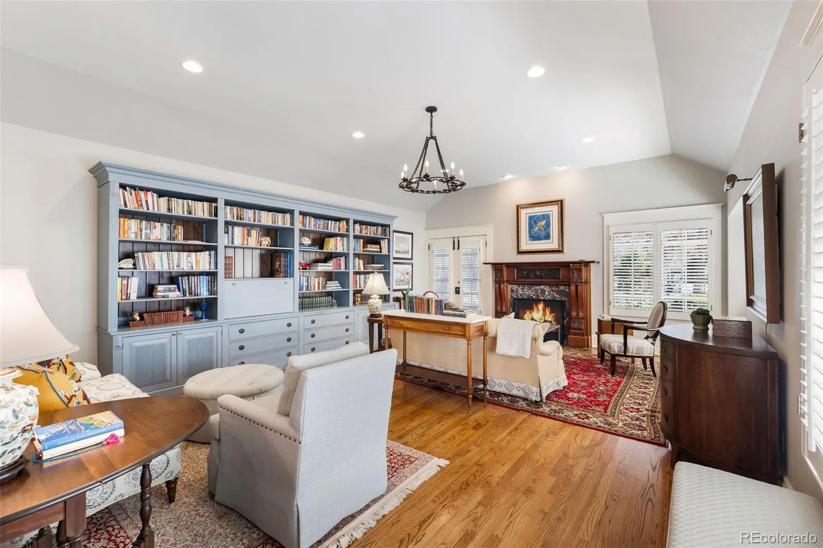 Perfectly combining the character of historic Denver with modern amenities and convenience, this one-of-a-kind residence offers indoor/outdoor Colorado living at its finest. Exquisite gardens surround this classic Country Club North home, with multiple sets of French doors to allow easy access, and the entire property is fully fenced for privacy. The entry hall welcomes you with a charming curved front door, floor-to-ceiling windows & skylight, and Saltillo floor tile. Hardwood flooring, plantation shutters & handsome fireplace adorn the sunny living room. The chef’s kitchen is highlighted by a walnut-topped island, soapstone perimeter countertops + Sub-Zero & Wolf appliances. Sky-lit, spacious dining room with gas fireplace + incredible millwork & moulding. Main floor bedroom/den includes wool carpeting, 2 closets, plantation shutters, en suite bath with skylight & walk-in closet + access to the powder room. The loft features wool carpeting, skylight & built-ins- a great space for office or den. In the primary bedroom, new hardwood floors extend into the walk-in closet, built-in storage on the west wall, and plantation shutters + skylight enhance the space. Marble en suite bath offers walk-in shower & heated floor. Saltillo floor tile is found throughout the lower level, featuring plantation shutters, laundry room, bedroom with en suite bath, spacious entertainment room & office/den with a curved single French door. Retreat and relax in the back garden, which includes an in-ground sprinkler system, updated landscape lighting, and elevated garden with mature trees and bushes that provide shade for 3 seasons. Enjoy al fresco dining on the brick patio, a beautiful space that is sheltered, private, and quiet. Heated 2-car garage offers built-in storage & direct access from the house, and the roof was replaced in 2015. This enchanting residence is a timeless classic, poised in a prime location, just moments to Cheesman Park, Botanic Gardens, Cherry Creek & Downtown.
