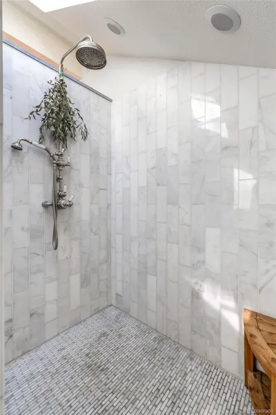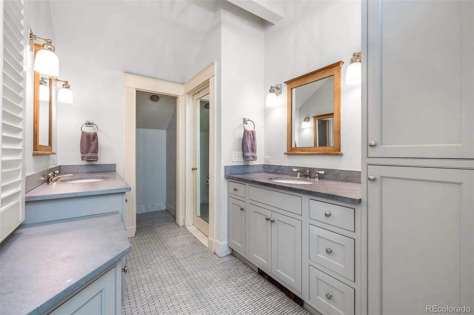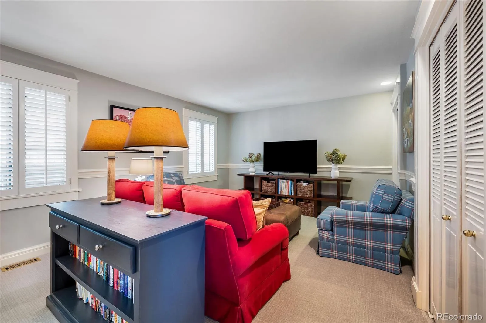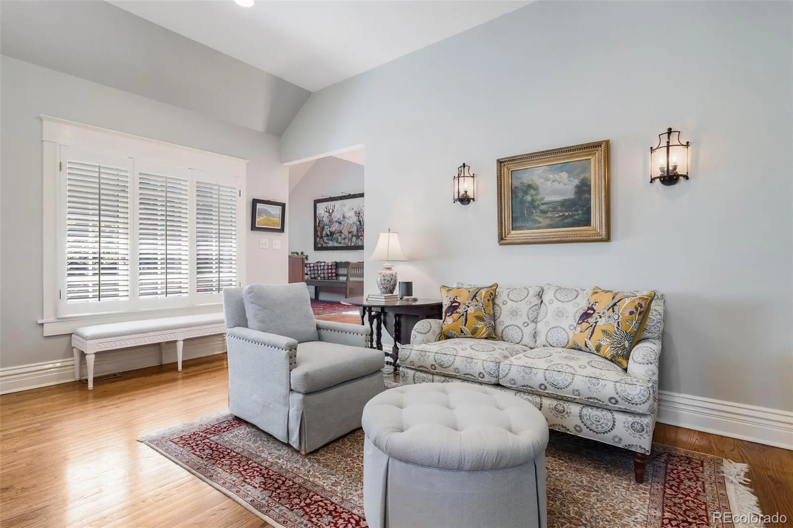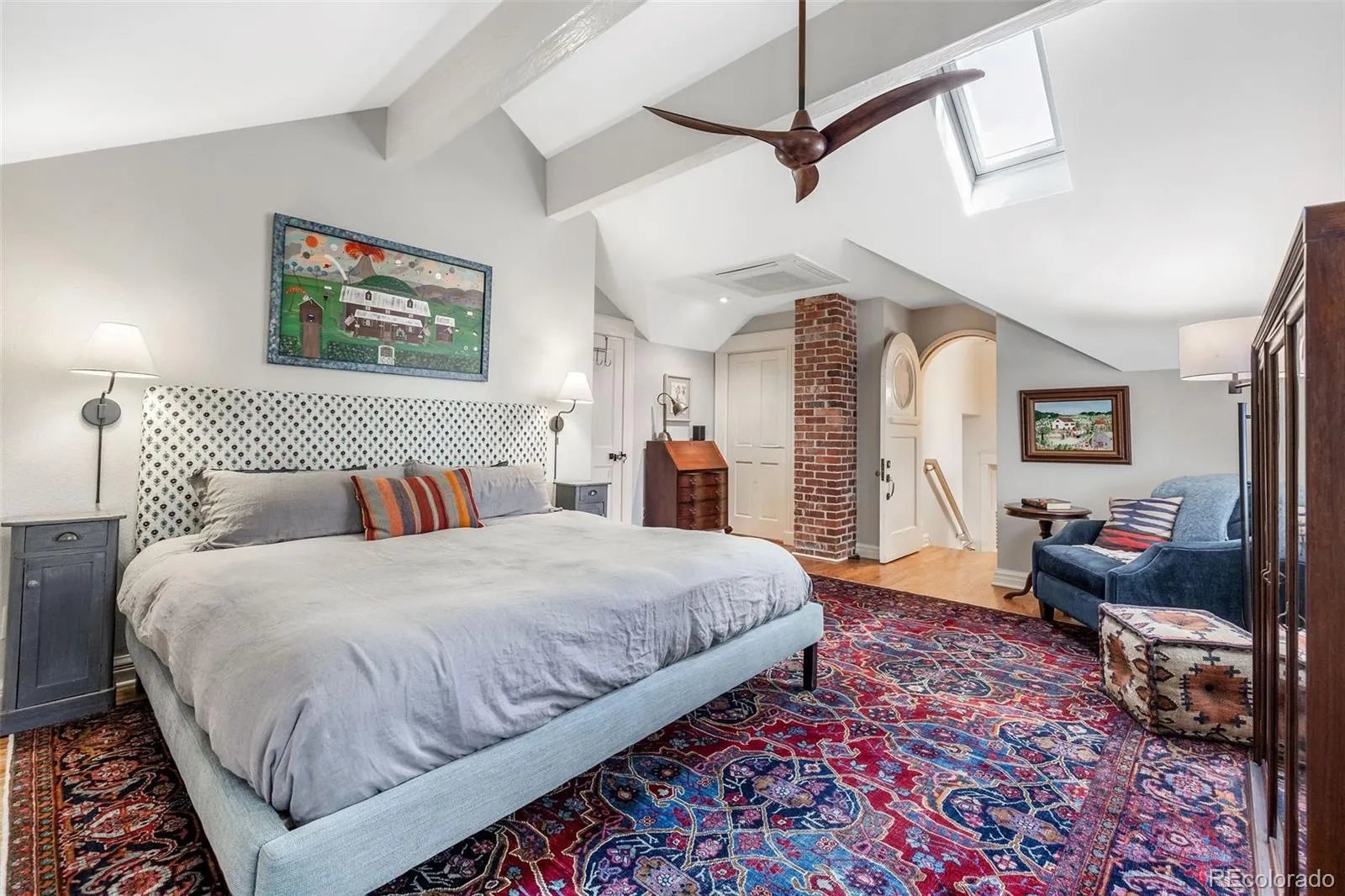 Perfectly combining the character of historic Denver with modern amenities and convenience, this one-of-a-kind residence offers indoor/outdoor Colorado living at its finest. Exquisite gardens surround this classic Country Club North home, with multiple sets of French doors to allow easy access, and the entire property is fully fenced for privacy. The entry hall welcomes you with a charming curved front door, floor-to-ceiling windows & skylight, and Saltillo floor tile. Hardwood flooring, plantation shutters & handsome fireplace adorn the sunny living room. The chef’s kitchen is highlighted by a walnut-topped island, soapstone perimeter countertops + Sub-Zero & Wolf appliances. Sky-lit, spacious dining room with gas fireplace + incredible millwork & moulding. Main floor bedroom/den includes wool carpeting, 2 closets, plantation shutters, en suite bath with skylight & walk-in closet + access to the powder room. The loft features wool carpeting, skylight & built-ins- a great space for office or den. In the primary bedroom, new hardwood floors extend into the walk-in closet, built-in storage on the west wall, and plantation shutters + skylight enhance the space. Marble en suite bath offers walk-in shower & heated floor. Saltillo floor tile is found throughout the lower level, featuring plantation shutters, laundry room, bedroom with en suite bath, spacious entertainment room & office/den with a curved single French door. Retreat and relax in the back garden, which includes an in-ground sprinkler system, updated landscape lighting, and elevated garden with mature trees and bushes that provide shade for 3 seasons. Enjoy al fresco dining on the brick patio, a beautiful space that is sheltered, private, and quiet. Heated 2-car garage offers built-in storage & direct access from the house, and the roof was replaced in 2015. This enchanting residence is a timeless classic, poised in a prime location, just moments to Cheesman Park, Botanic Gardens, Cherry Creek & Downtown.