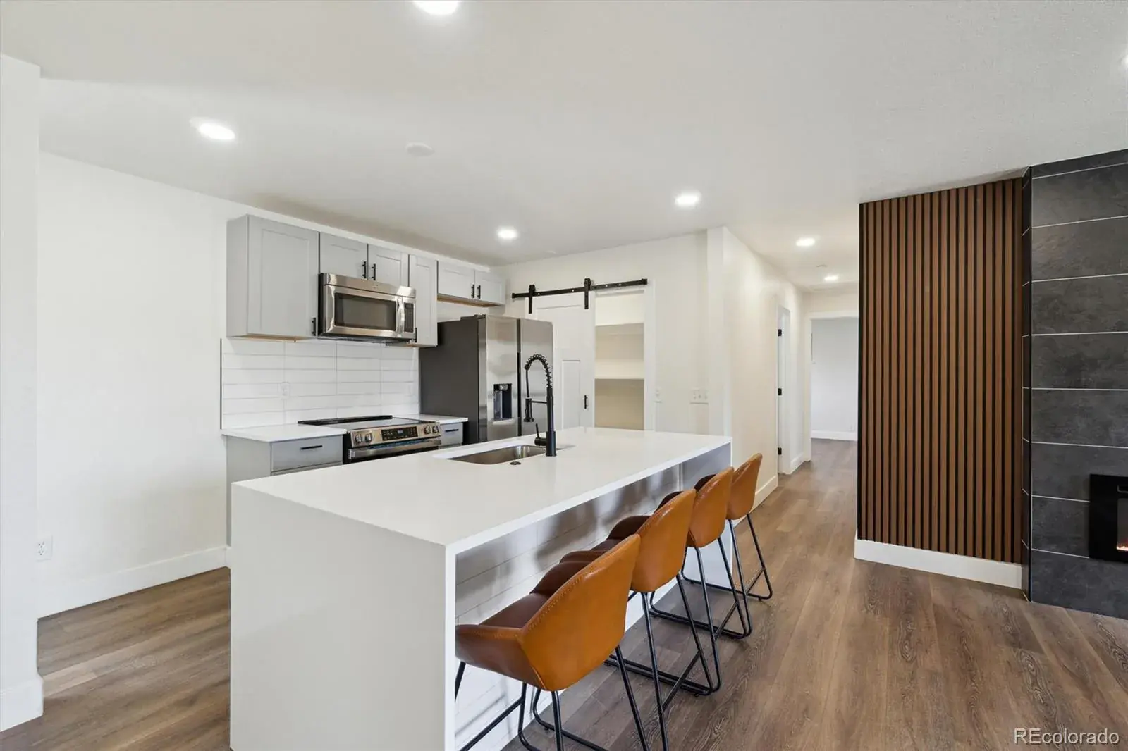 Move-in ready and fully permitted, this stunning Fairview remodel blends modern design with everyday comfort in all the right ways. Step inside to a bright, open-concept main level featuring all-new flooring, contemporary finishes, and a warm, inviting living room anchored by a cozy fireplace perfect for relaxing evenings at home.