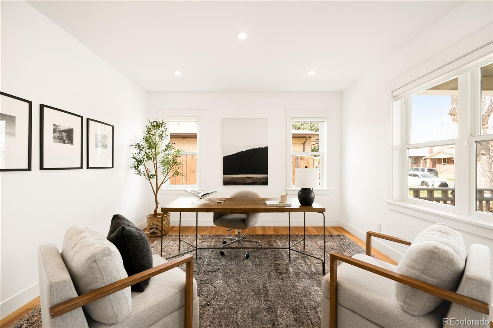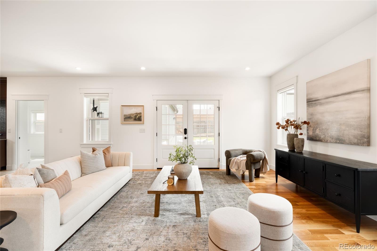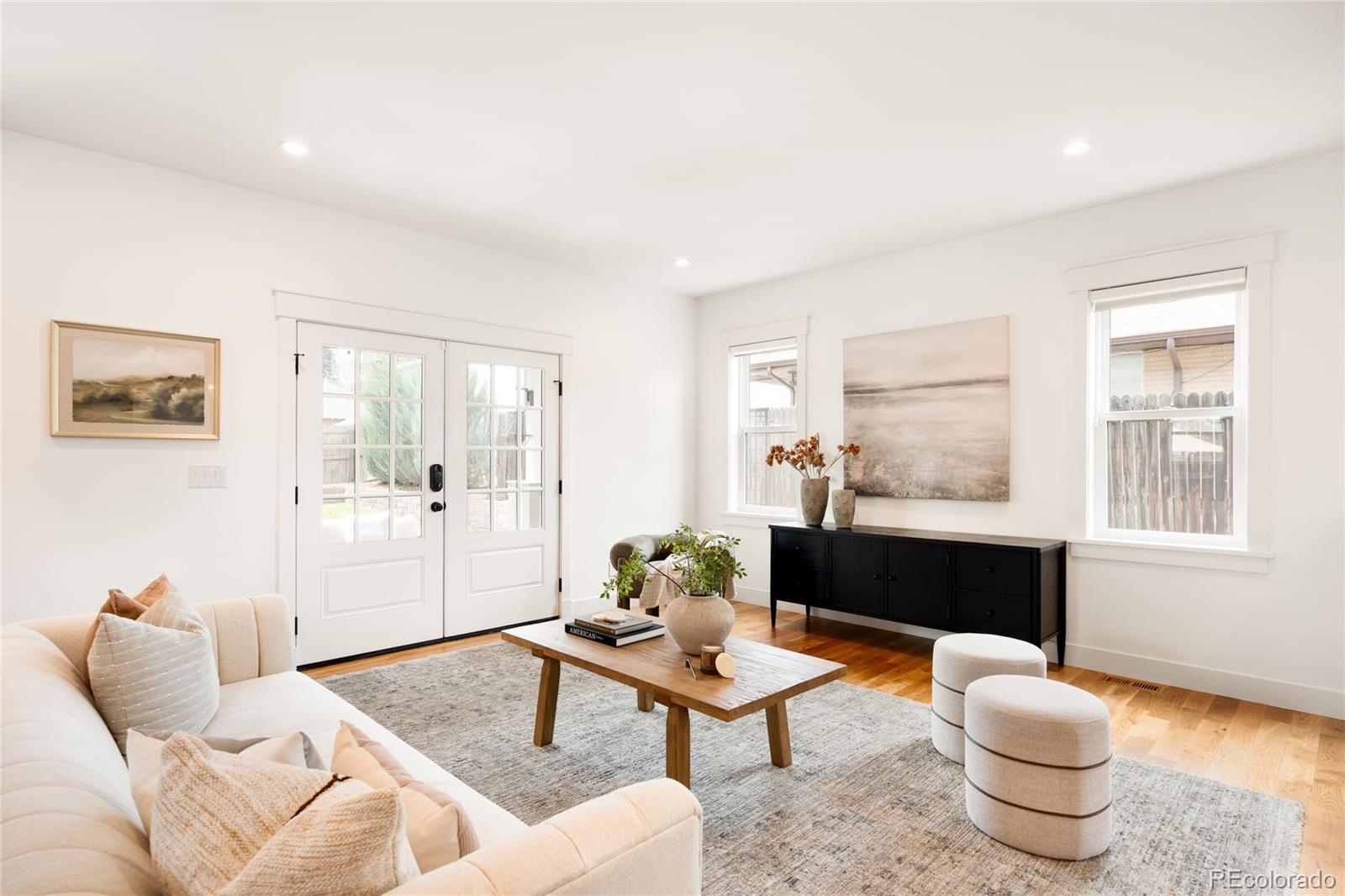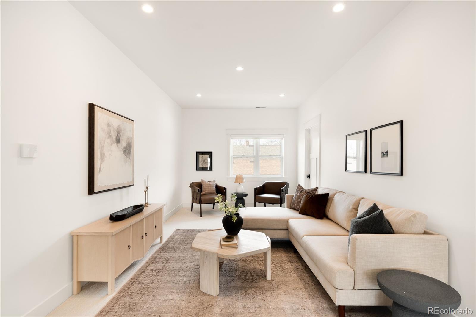 This exceptional Highlands residence represents a standout value in today’s market, delivering nearly 4,900 square feet, refined design, and a level of condition and preparation rarely available at this price point. A covered front porch introduces a bright, open interior defined by four inch plank hardwood floors, custom built-ins, and clean architectural lines. The main level is both functional and inviting, featuring a private study with French doors, a living room with a gas fireplace, and an expansive great room that flows seamlessly into the dining area and kitchen. The kitchen stands out with Bosch appliances, quartz countertops, soft close cabinetry, all opening naturally to the main living spaces for effortless living and entertaining. Upstairs, the primary suite offers vaulted ceilings, a private patio, a custom walk-in closet, and a well appointed bath with a soaking tub and multi head shower. Additional bedrooms are generously sized and well positioned. The finished basement expands the home with a wet bar, recreation space, and additional bedrooms, creating flexibility for guests or entertaining. Outdoor spaces include a covered patio, fenced yard, and an oversized 2 car garage with EV charging. This home has been meticulously maintained and thoughtfully prepared for market. A pre-listing inspection was completed, and the sellers addressed items identified during that process. The HVAC system has been recently inspected and serviced. Recent improvements include full interior paint, new carpet, refinished hardwood floors, LED lighting upgrades, updated fixtures, professional cleaning, window cleaning, exterior power washing, new sod, and refreshed landscaping. Additional materials available upon request include: floorplans, a 3D walkthrough video, inspection reports, and vendor invoices. This is a rare opportunity to acquire a home of this size, quality, and condition in one of Denver’s most sought after neighborhoods.
