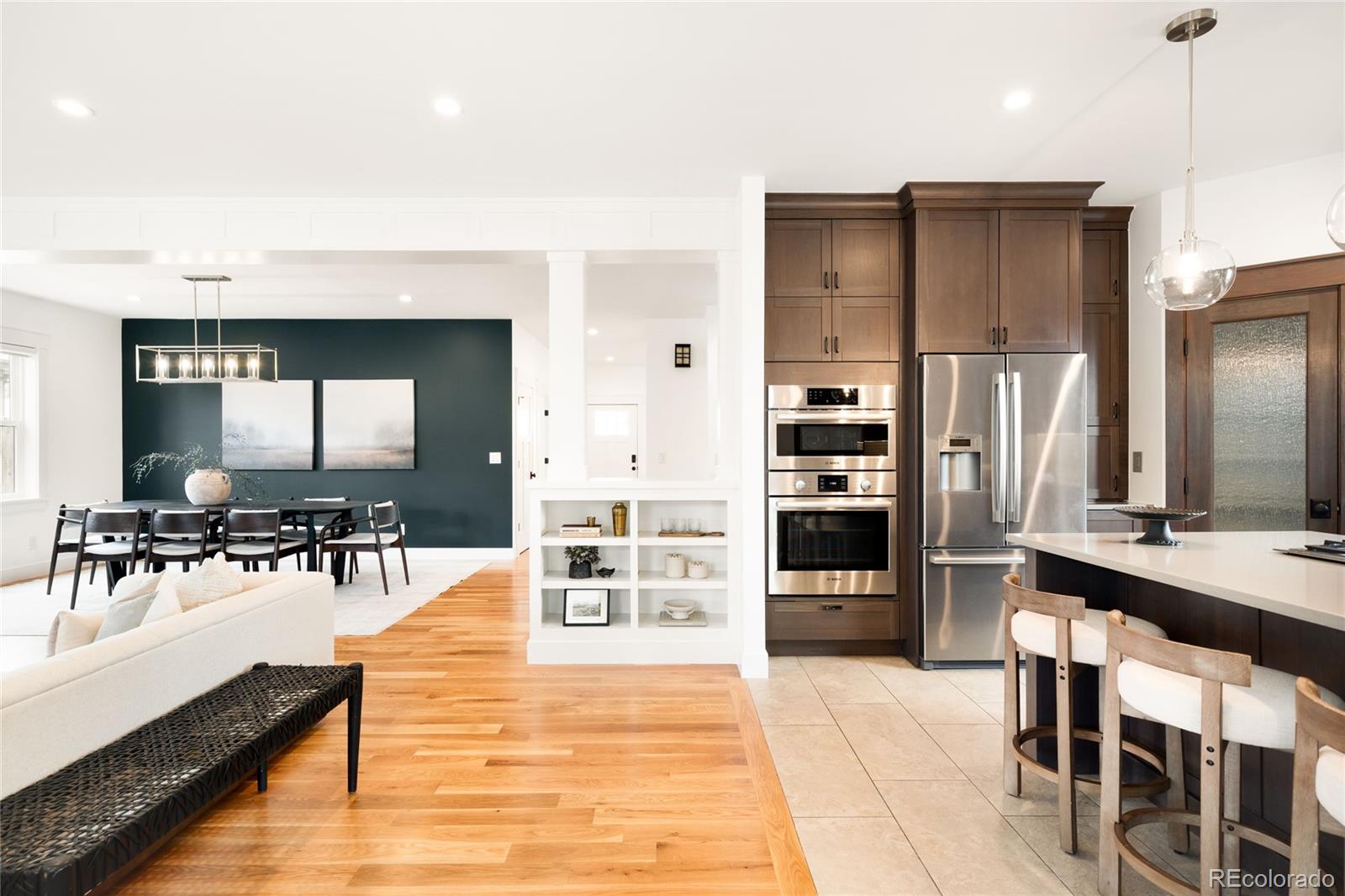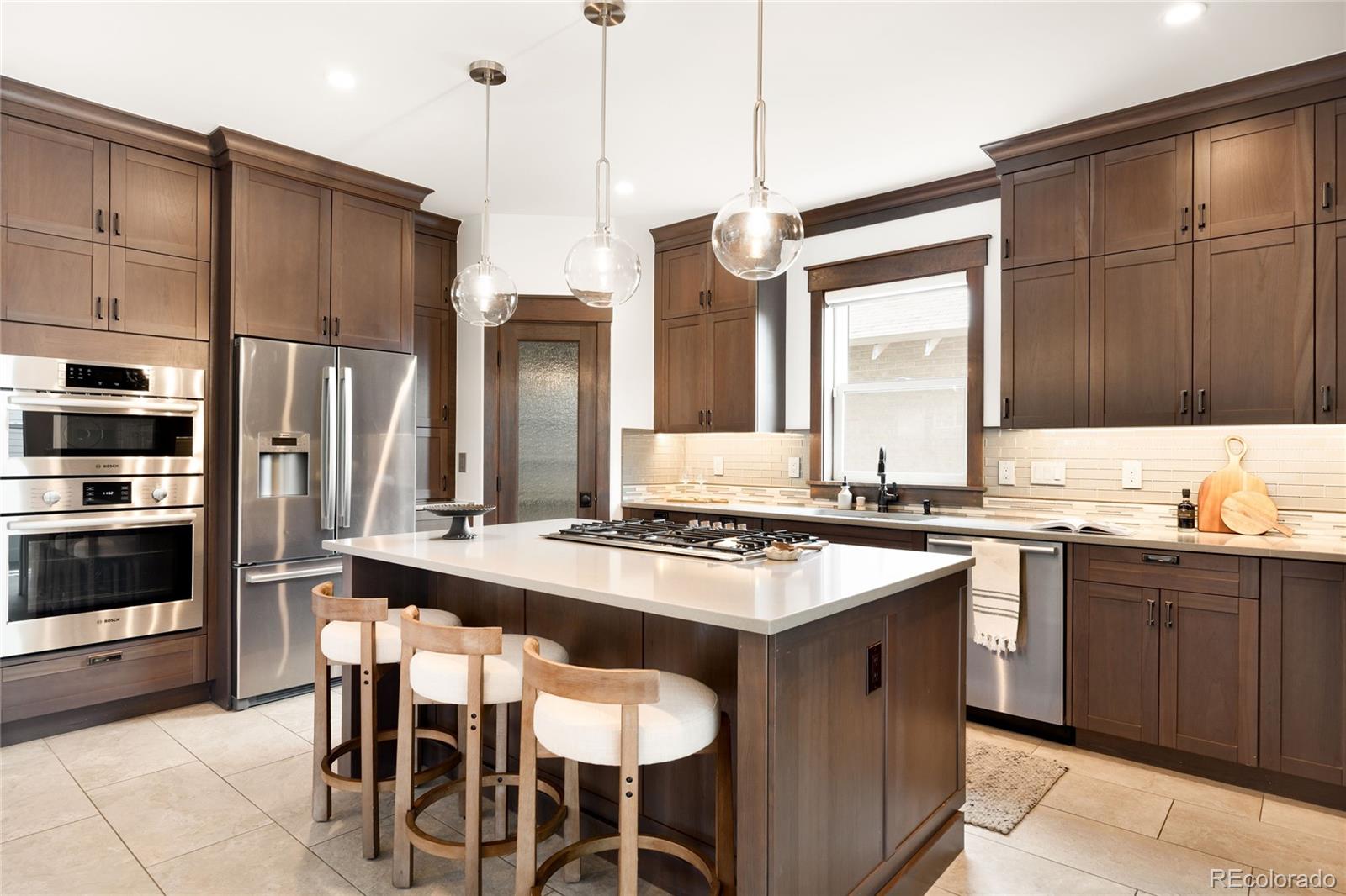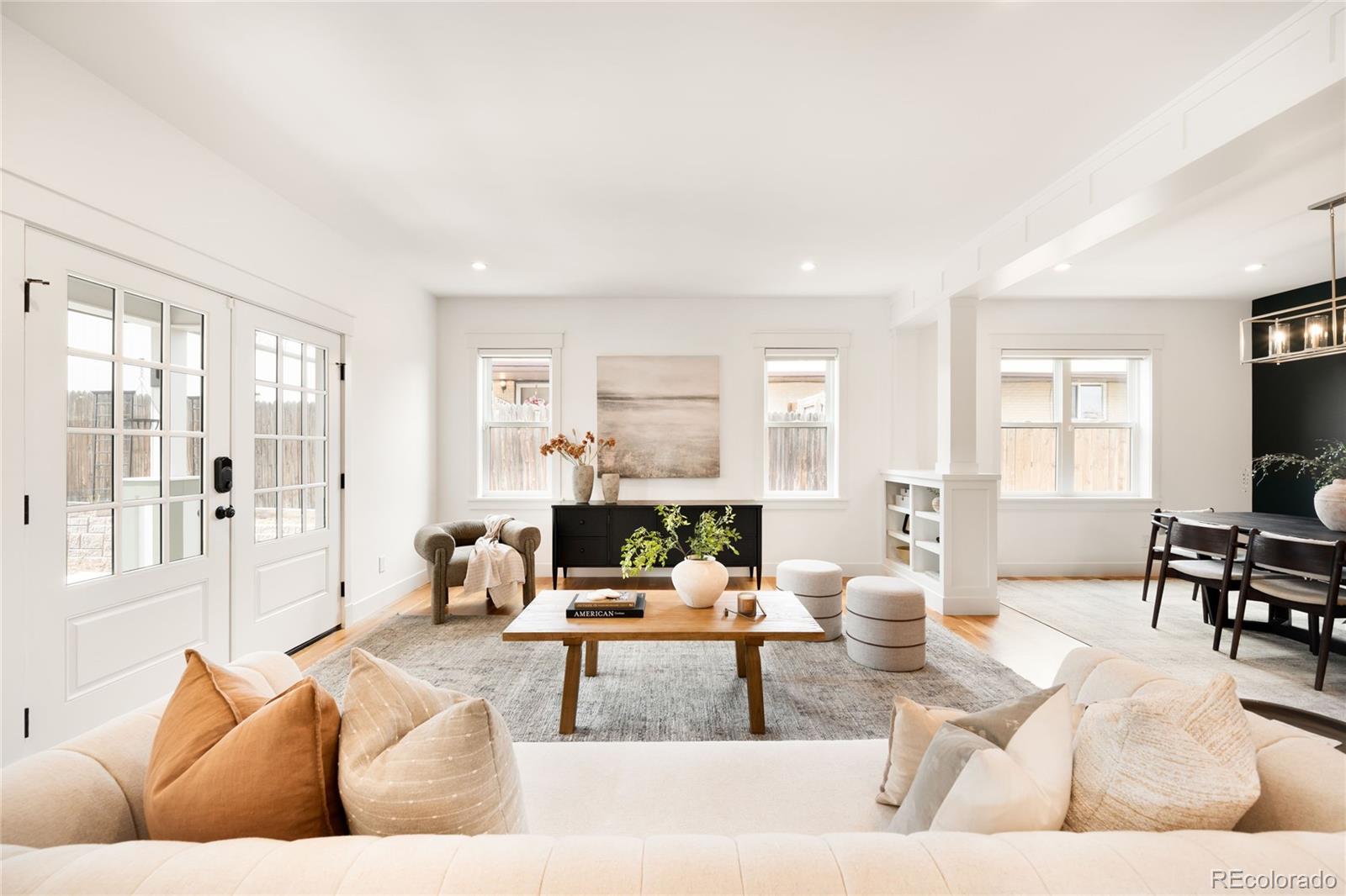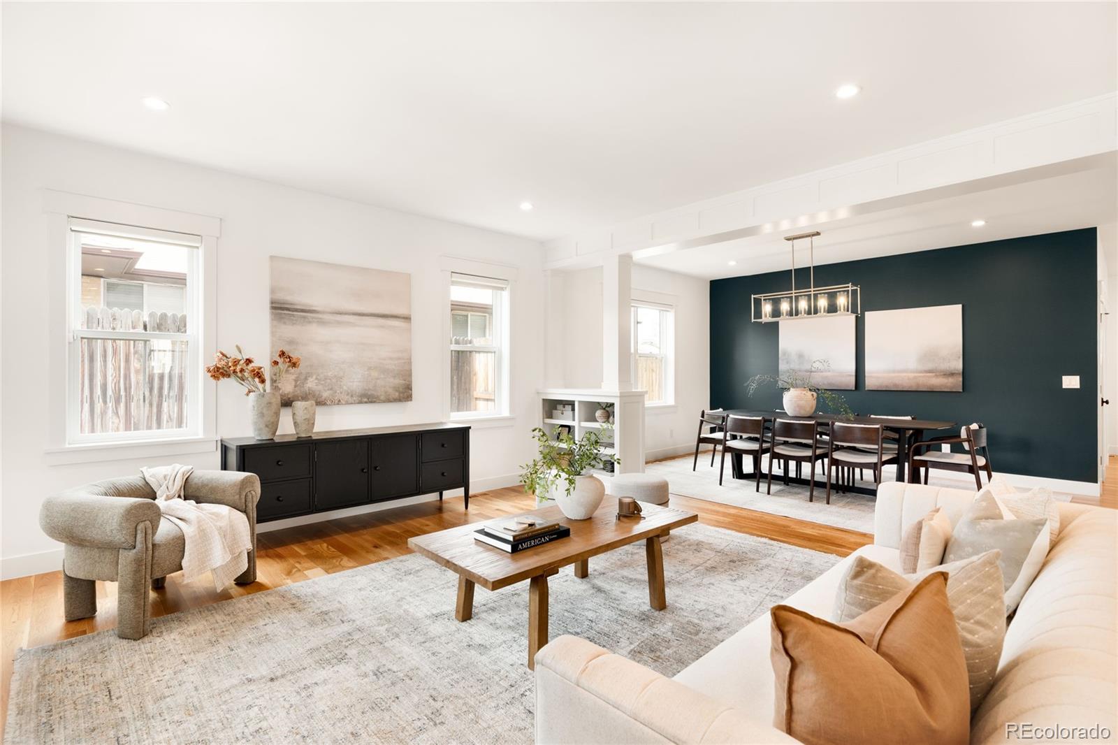 This exceptional Highlands residence represents a standout value in today’s market, delivering nearly 4,900 square feet, refined design, and a level of condition and preparation rarely available at this price point. A covered front porch introduces a bright, open interior defined by four inch plank hardwood floors, custom built-ins, and clean architectural lines. The main level is both functional and inviting, featuring a private study with French doors, a living room with a gas fireplace, and an expansive great room that flows seamlessly into the dining area and kitchen. The kitchen stands out with Bosch appliances, quartz countertops, soft close cabinetry, all opening naturally to the main living spaces for effortless living and entertaining. Upstairs, the primary suite offers vaulted ceilings, a private patio, a custom walk-in closet, and a well appointed bath with a soaking tub and multi head shower. Additional bedrooms are generously sized and well positioned. The finished basement expands the home with a wet bar, recreation space, and additional bedrooms, creating flexibility for guests or entertaining. Outdoor spaces include a covered patio, fenced yard, and an oversized 2 car garage with EV charging. This home has been meticulously maintained and thoughtfully prepared for market. A pre-listing inspection was completed, and the sellers addressed items identified during that process. The HVAC system has been recently inspected and serviced. Recent improvements include full interior paint, new carpet, refinished hardwood floors, LED lighting upgrades, updated fixtures, professional cleaning, window cleaning, exterior power washing, new sod, and refreshed landscaping. Additional materials available upon request include: floorplans, a 3D walkthrough video, inspection reports, and vendor invoices. This is a rare opportunity to acquire a home of this size, quality, and condition in one of Denver’s most sought after neighborhoods.