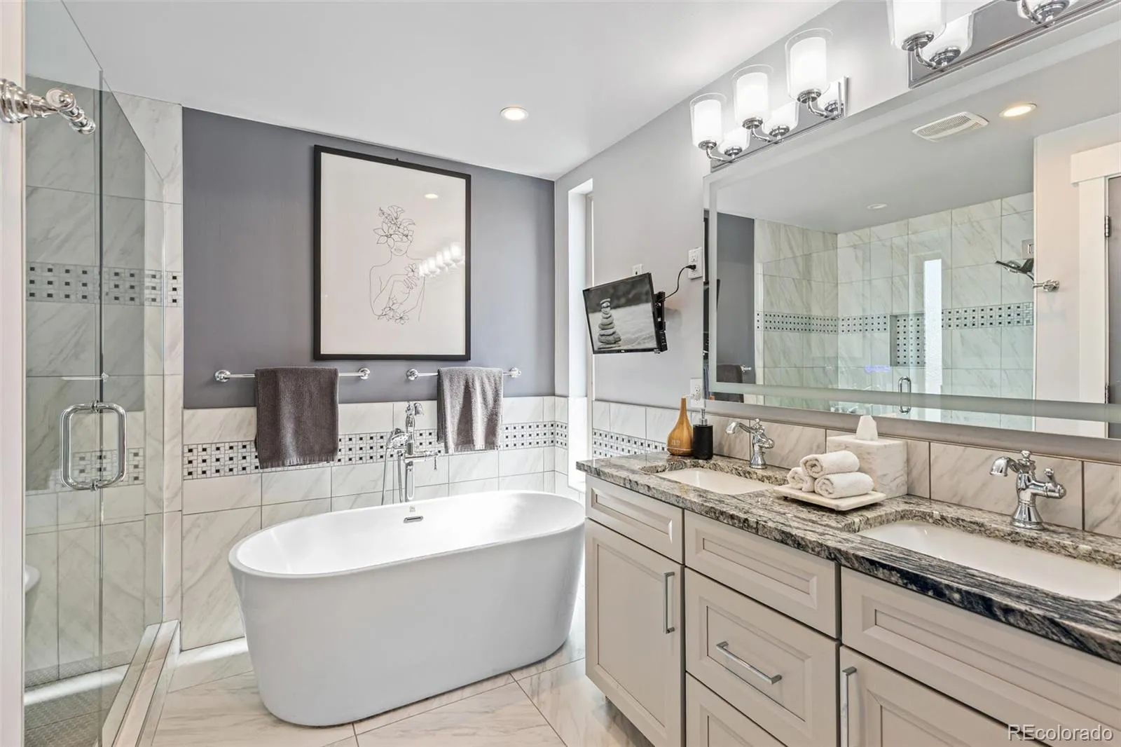 Extraordinary Highland Half-Duplex sitting on one of the most beautiful blocks in Highlands! Step inside to appreciate the sleek lines and open floor plan – all highlighted with modern aesthetics in luxurious space. Everything about this property is intentional – lives exactly as you desire… The Great room is beyond great, it’s capital M, Marvelous! Spacious and flexible allowing for any furniture arrangement you desire! Opens onto a perfectly sized deck. Dining Room is large enough to seat 12. Contemporary, state-of-the-art chef’s kitchen features light colored granite tops, a high-end appliance package, tremendous cabinet space, a walk in pantry to house all your goods, and an eating bar with room to seat 5. Main floor also delivers an ideally placed home office that overlooks a fascinating streetscape. Second story meets everyone’s needs with a king-sized owner’s suite that includes a gas fireplace, a thoughtful walk-in closet and the 5-piece bath you’ve been dreaming of – huge walk-in shower, glamorous soaking tub, dual vanity, all finished with high quality materials. 2nd bedroom is currently showing as a closet, can return to a bedroom if you wish, or keep it as a boutique inspired closet. Enjoy the 2nd story deck with neighborhood views of all that Highlands is! Basement is filled with neutral tones in all spaces – Great Room with entertainment space and a gaming space in front of the third gas fireplace. Basement delivers two additional bedrooms, both with egress, excellent closets and lots of natural light. Simple hobby room or gift-wrapping space anyone would envy! Lives like a detached single family home. 2 car detached garage. Low maintenance yard includes the deck and a yard just big enough for a pooch and a party! There’s nothing not to love about this home! Truly just one minute to Highland Square, five minutes to Sloan’s Lake – enjoy dining, entertainment, shopping and much more!