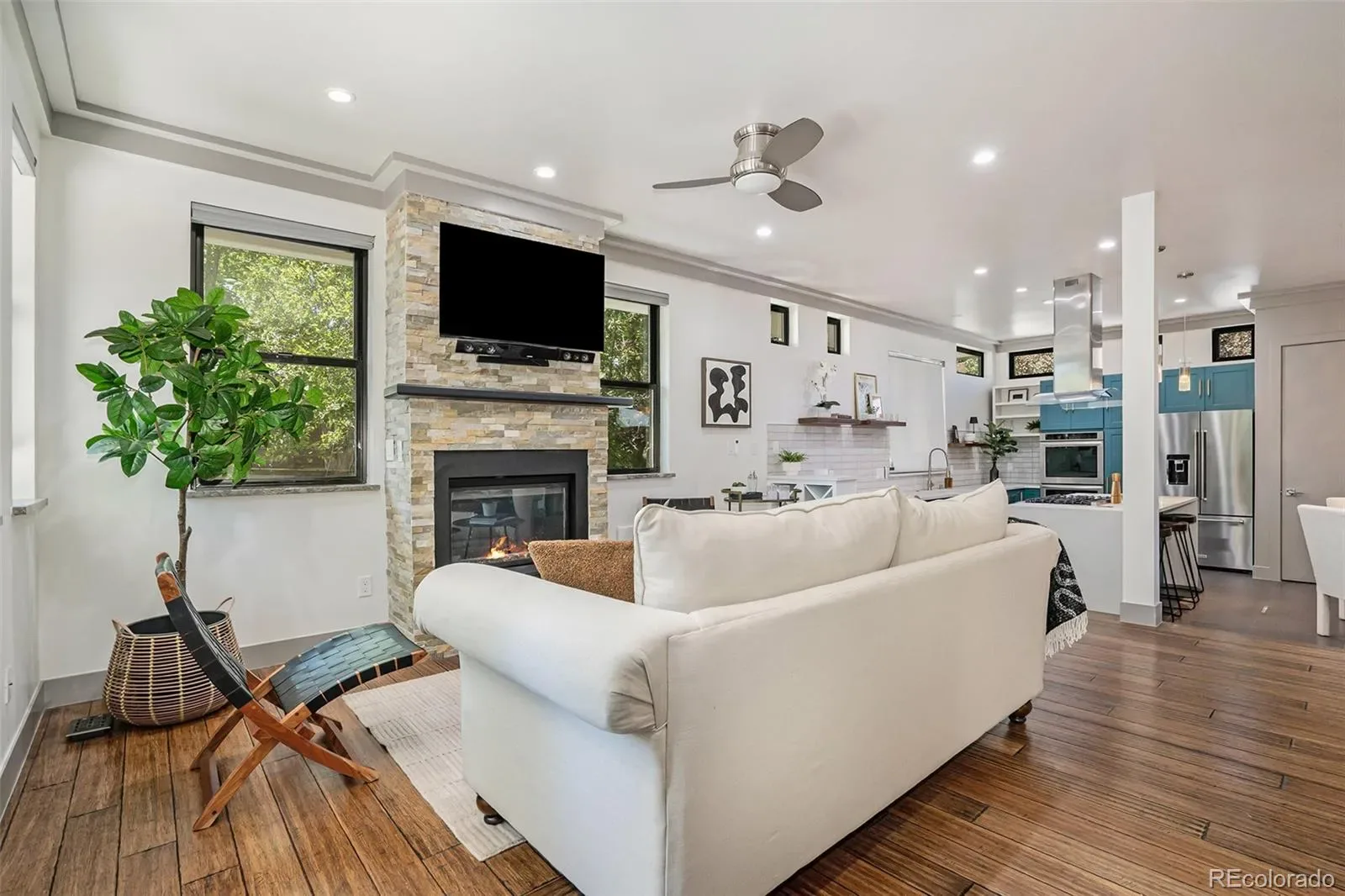 Home is Listed over $200,000 below Appraised Value.******Truly one-of-a-kind in the Highlands. This urban contemporary also includes a carriage home and is perfect for the buyer looking to live in a modern home with the option of rental income (including AirBnb) or to keep family close but still maintain their own privacy.****** When you first walk into the main house you are greeted with a luxurious open floor plan that welcomes entertaining, great natural lighting provided by the well placed windows, large island, and new waterfall countertops. On the main level you have a bedroom that can also be used as an office and a 3/4 bath. Expand your entertaining from the main level to the rooftop viewing deck to enjoy a firepit while viewing the mountain and city views. When the evening winds down you can enjoy an optional theater room in the basement that also boasts a gas fireplace and a wet bar. Enjoy the remainder of your evening in your amazing primary bedroom that has its own personal deck, gas fireplace surrounded by stone work, large walk in closet with built-ins, and a well done 5-piece bathroom. Use the enclosed breezeway for easy access to the carriage house, which also acts as a flex space to be used as a gym or for hobbies.****** The carriage home includes 2 large bedrooms (one being on the main level), 2 full baths, its own laundry room, and parking. Off street parking for 4 cars. Just moments from Tennyson, Highland Square and Sloan’s Lake. Within the Courtyard between the Main House and the Carriage House, you will find post that are installed along the driveway, this was originally installed for the future installation of a carport. The Sellers had opted to not remove these post until we have discussed with the future Buyer. Sellers are willing to leave the Posts or will have post removed. It will depend on the Buyer’s wants.