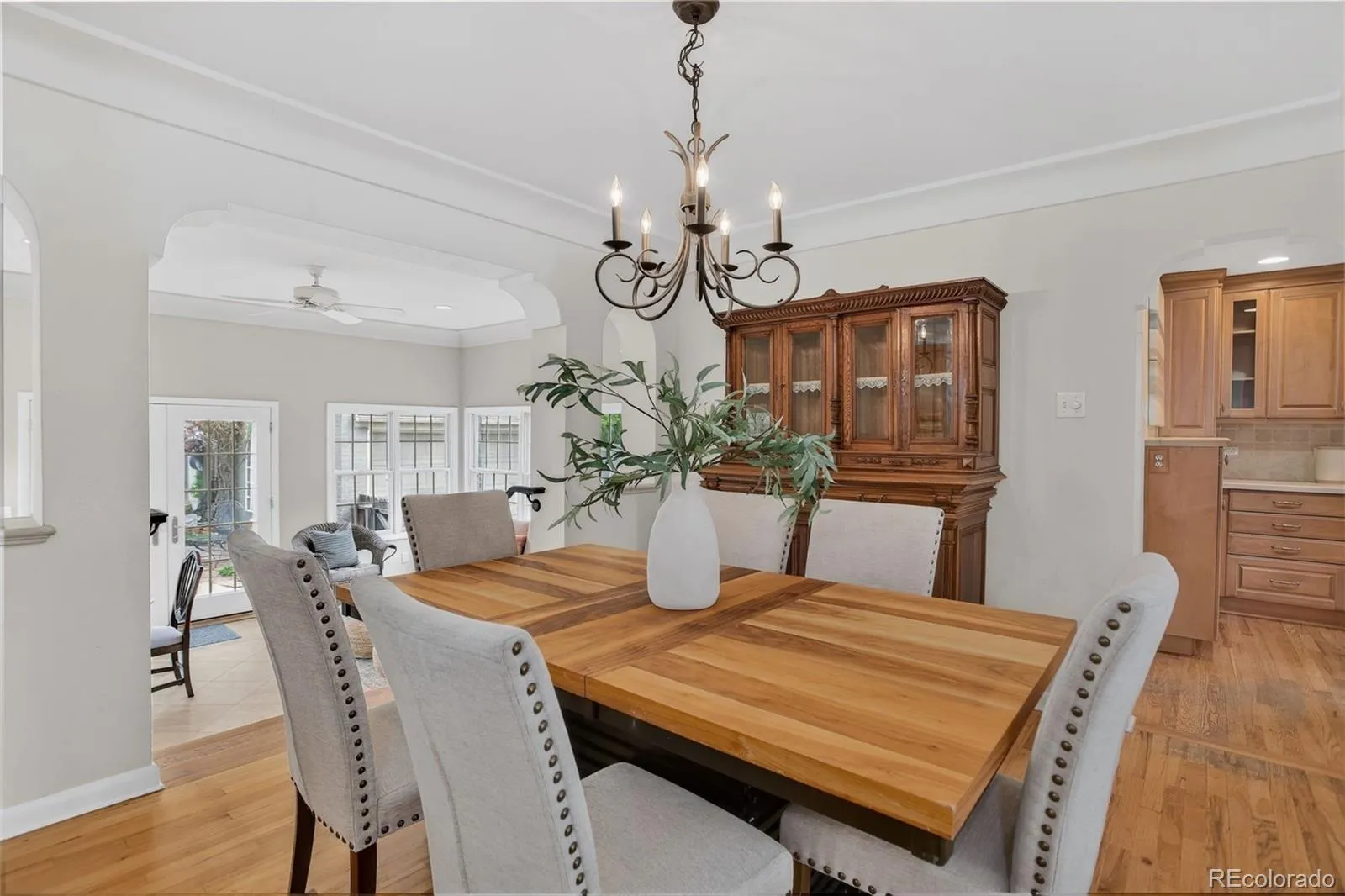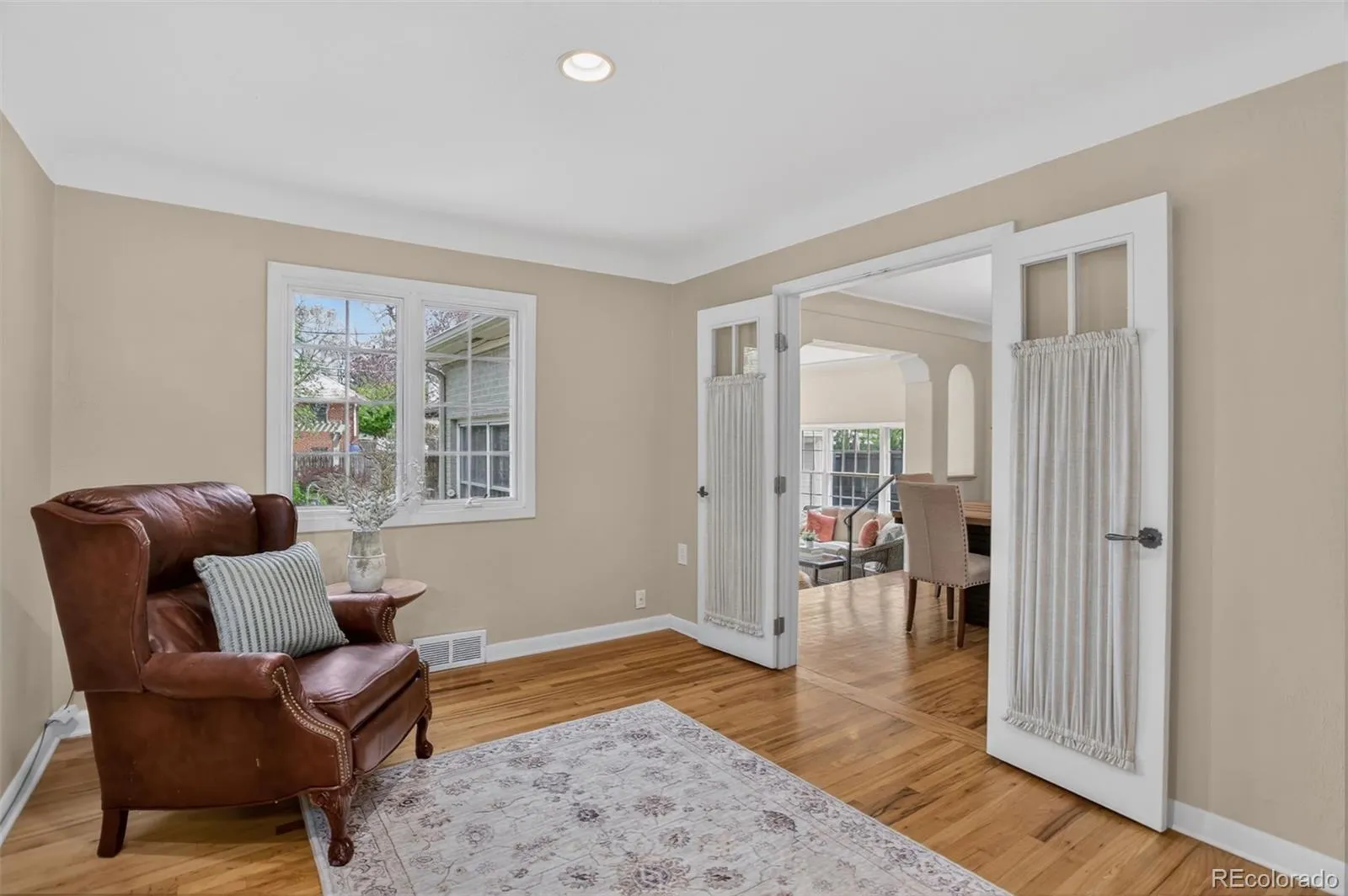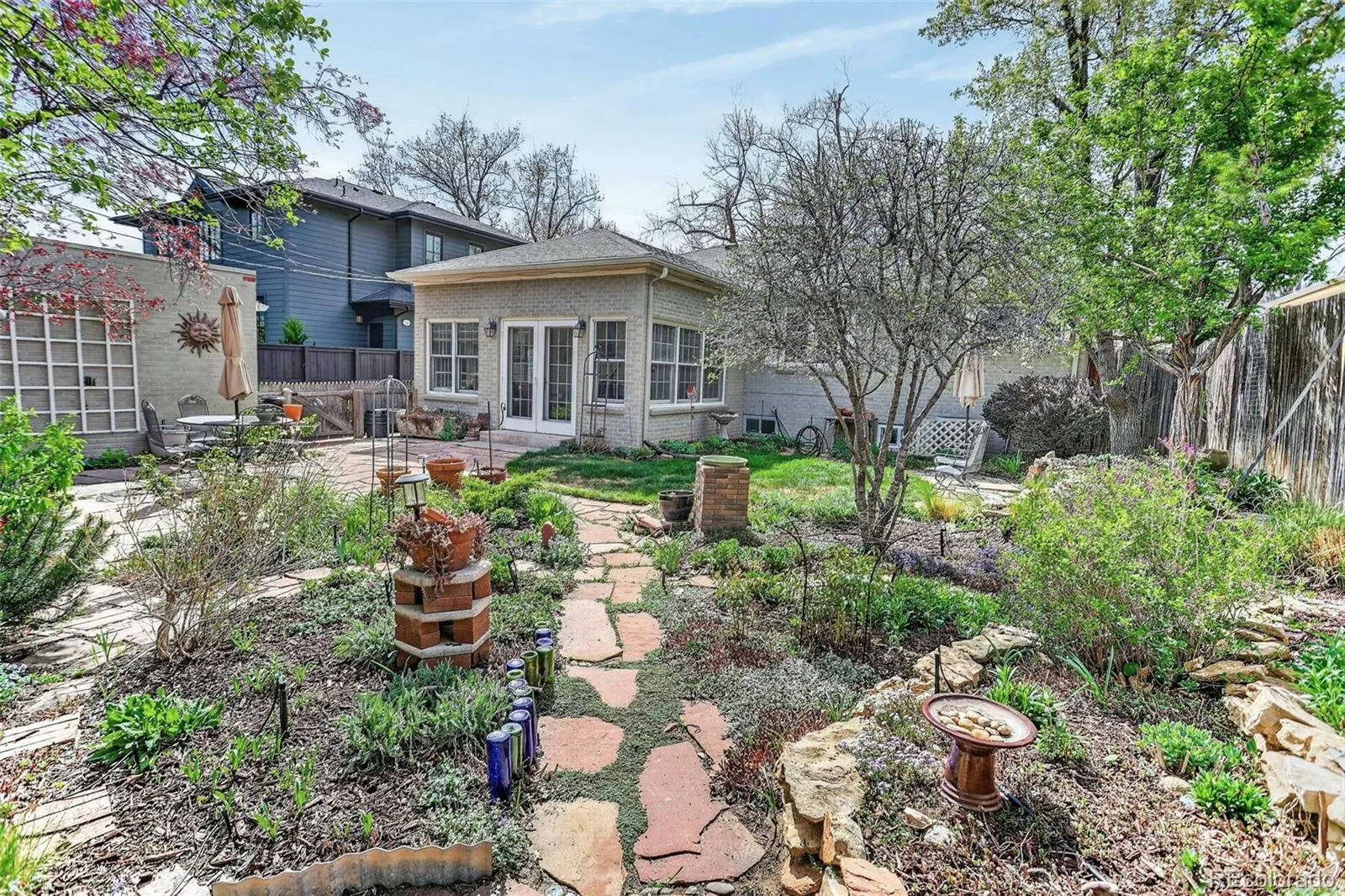 Welcome home to the beautiful neighborhood of Hilltop! Set on a peaceful, tree-lined street, this 3 bed/ 3 bath home offers the perfect balance of historic charm, thoughtful renovations, and everyday functionality. As you walk through the front door, the living room is embellished with the classic cottage style details such as cove ceilings, arched doorways, and hardwood floors throughout. The chef’s kitchen showcases distressed maple cabinetry with a refined, white-washed finish and premium appliances. A breakfast nook filled with sunlight is an ideal spot for casual meals or your morning coffee. Adjacent to the kitchen, the formal dining room provides ample space for entertaining guests. Step through the French doors into the main floor study, which features built-in cabinetry and can easily serve as a home office, fourth bedroom, or media room. Adjacent to the dining area, the generously sized family or patio room offers expansive windows on three sides, limestone flooring, recessed lighting, cove ceiling, and a Jøtul gas stove in addition to central heating and air conditioning. The main floor also includes two spacious bedrooms featuring ample closet storage, as well as both a full bathroom and a half bathroom. Maximize your lifestyle in the versatile lower level, where sprawling entertainment space meets thoughtful utility. Features include a non-conforming third bedroom and a three-quarter bath, alongside a laundry room and a “bonus” room ideal for a hobbyist’s retreat or an additional bedroom. Offering an abundance of hidden storage, this level is as functional as it is impressive. The backyard reveals a meticulously manicured English walking garden. Experience a location that is truly second to none, where the quiet charm of Hilltop meets the cosmopolitan energy of Cherry Creek. Walkable to acclaimed schools and scenic parkways. It is, quite simply, a rare invitation to own a piece of Denver’s most coveted neighborhood at an unbeatable price point.