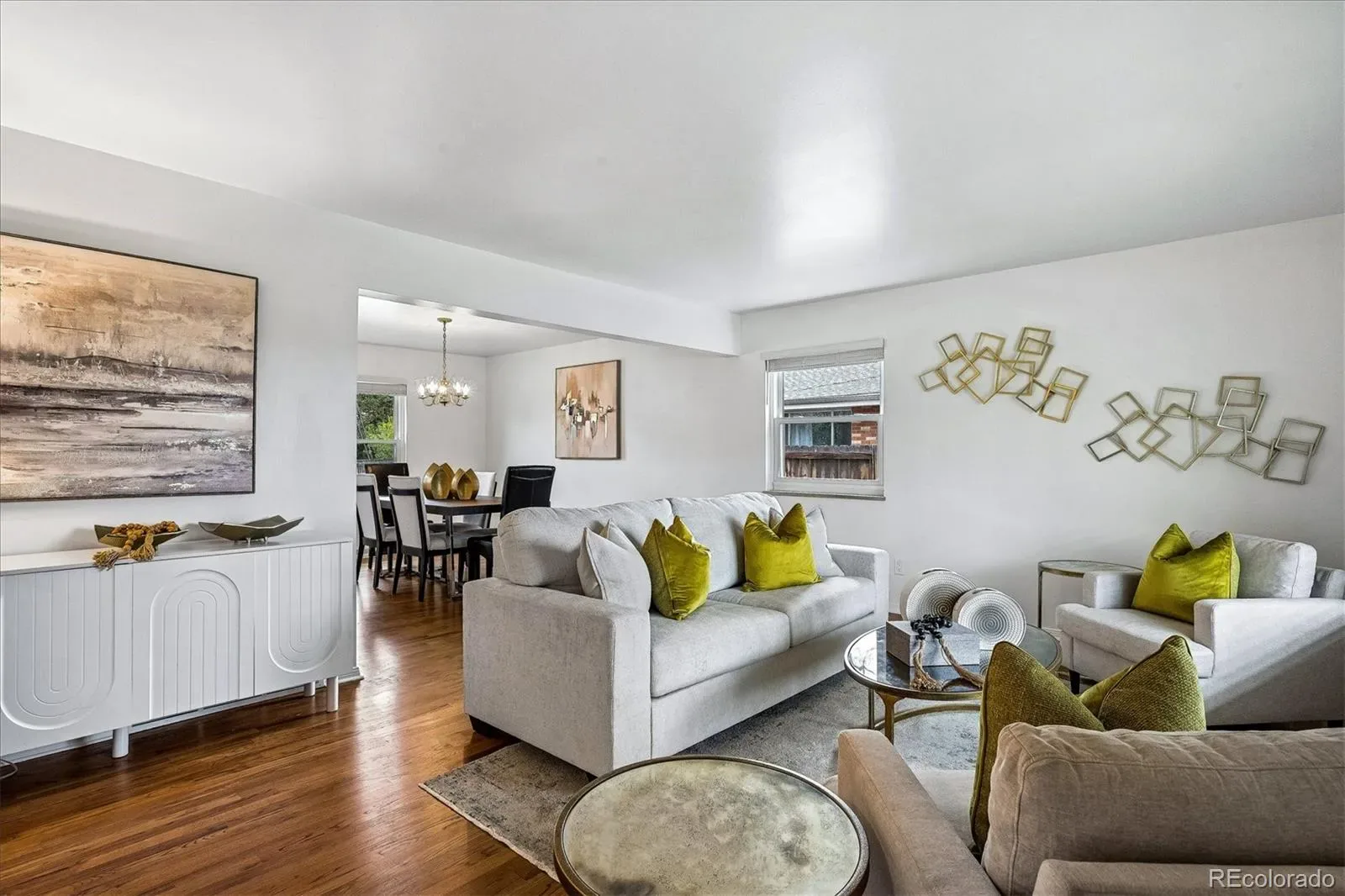 Welcome to this fantastic two-story home in the top-rated neighborhood in Denver! According to Niche, Holly Hills is the #1 best place to live in Colorado. And it is in the highly acclaimed Cherry Creek School District with students going to West Middle School and Cherry Creek High School. Many upgrades were done to the home recently including updates to the kitchen and all three bathrooms, new window coverings, new garage doors, new appliances, and updated flooring. There are hardwood floors throughout, both on the main and second levels. The home has a great floor plan that includes a main floor living and dining room, a spacious kitchen, a separate family room with a new gas fireplace that opens to a large covered patio ideal for entertaining and spending time in the giant backyard. The huge yard is flat and filled with healthy grass with a fully fenced yard perfect for kids and dogs. There is a very large dedicated garden space which can be used for gardening and still have room for a swing set. The second floor boasts four spacious bedrooms, including the master suite which has its own bathroom and walk-in closet. An added bonus in the main floor laundry. The basement is partially finished and ready for your own personal touch. The two-car garage is large and filled with storage cabinets. You will save tens of thousands of dollars over the years as the home already has high-quality James Hardie Siding on it. This siding is fire, hail, insect, and woodpecker resistant, and the boards do not swell or shrink which makes the paint last much longer. The warranty is transferrable to new owners. This home has been lovingly cared for by one family for the last 48 years! This great house is an easy drive to the Denver Tech Center, downtown, I-25 and I-225. And it is within walking distance to restaurants, the primary and elementary school, shopping, King Soopers, Starbucks, and the bus and light rail station.