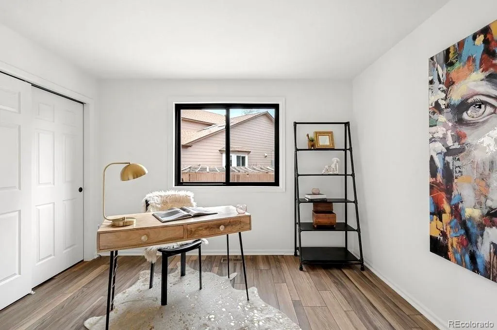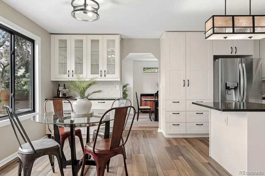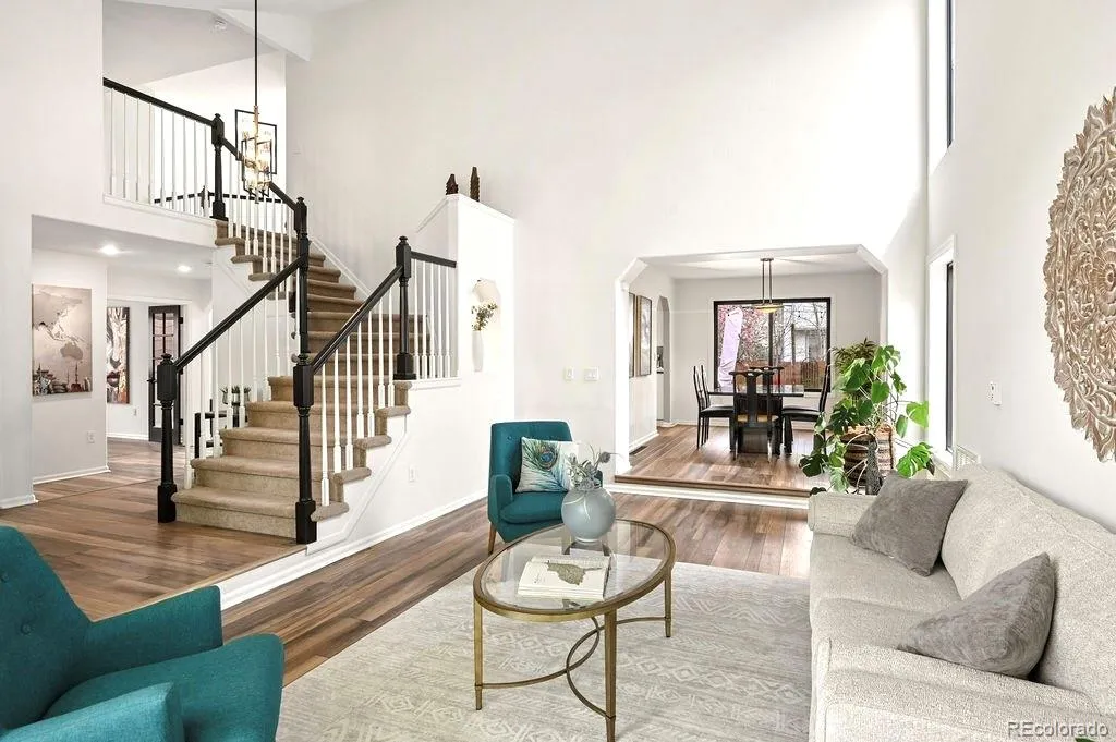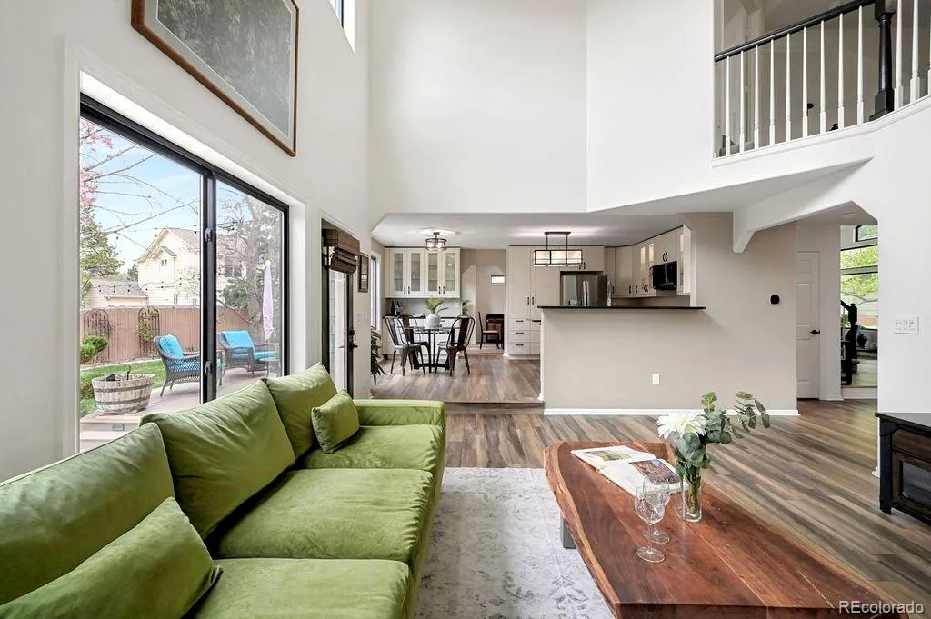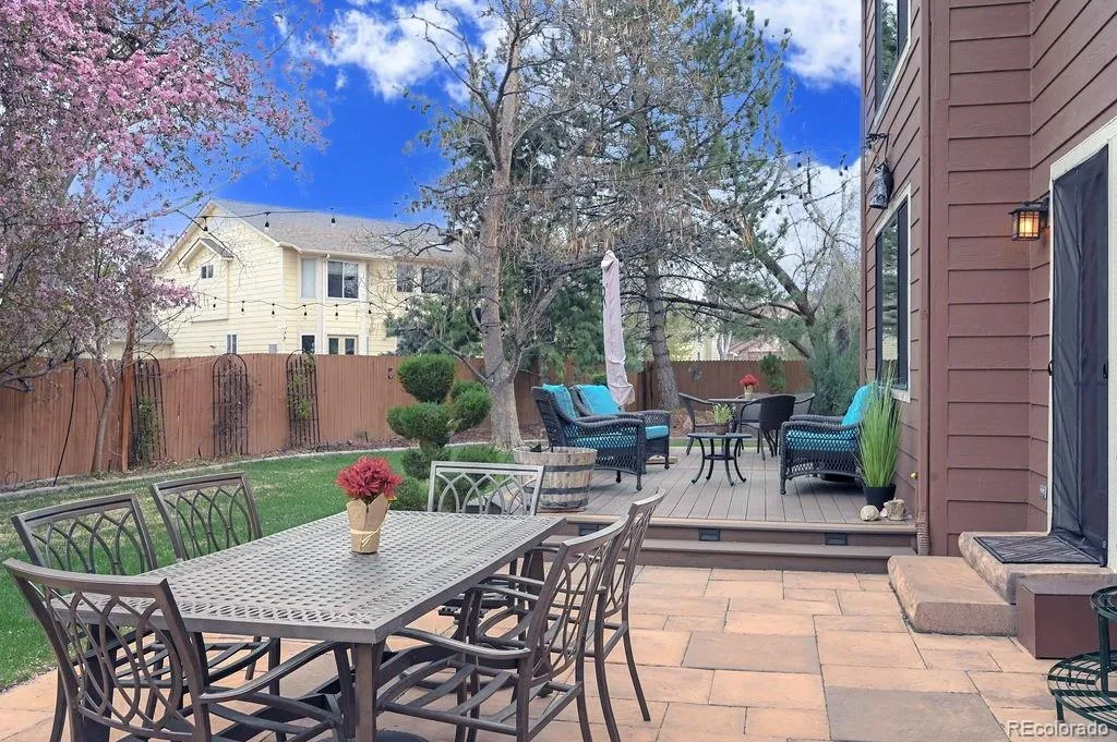 Don’t miss this rare opportunity to own in quiet enclave of Indian Creek! This light-filled 5-bedroom, 3-bath home offers soaring ceilings, an open layout, creating a welcoming, open feel from the moment you walk in. Inside, vaulted ceilings and large windows bring in natural light throughout the main living areas. The living room offers a spacious, light-filled setting, while the family room provides a more casual space, anchored by a modern gas fireplace. LVP flooring runs throughout the main level, while both a formal dining room and eat-in kitchen provide distinct spaces for everyday living and entertaining. The kitchen features stainless steel appliances, including a GE CafĂ© gas range, quartz countertops, and a clean, cohesive design that connects easily to the surrounding living spaces. Bathrooms have been updated with the same thoughtful approach, and the home reflects consistent care throughout. A main-floor office with a connected bathroom adds flexibility for main-level living or hosting guests. Upstairs, the spacious primary suite offers a retreat-like feel, complete with a walk-in closet and a five-piece ensuite bath. The additional bedrooms are well-sized and filled with natural light. Outside, the backyard offers a private retreat with mature trees, beautiful landscaping, raised beds, an extra shed, and a patio and deck designed for relaxing and entertaining, while the home is situated on an extremely quiet cul-de-sac. ADDITIONAL FEATURES: ***OWNED SOLAR***3-car garage***Electric car charger***Large unfinished basement—plumbed for an additional bath, offers flexibility to create additional living space tailored to your needs.*** Indian Creek offers convenient access to the High Line Canal Trail, Cherry Creek Trail, and Cook Park, with close proximity to Cherry Creek and Glendale for dining, shopping, and everyday living. This is a unique opportunity to own a beautiful, thoughtfully maintained home in a truly special enclave in Denver.