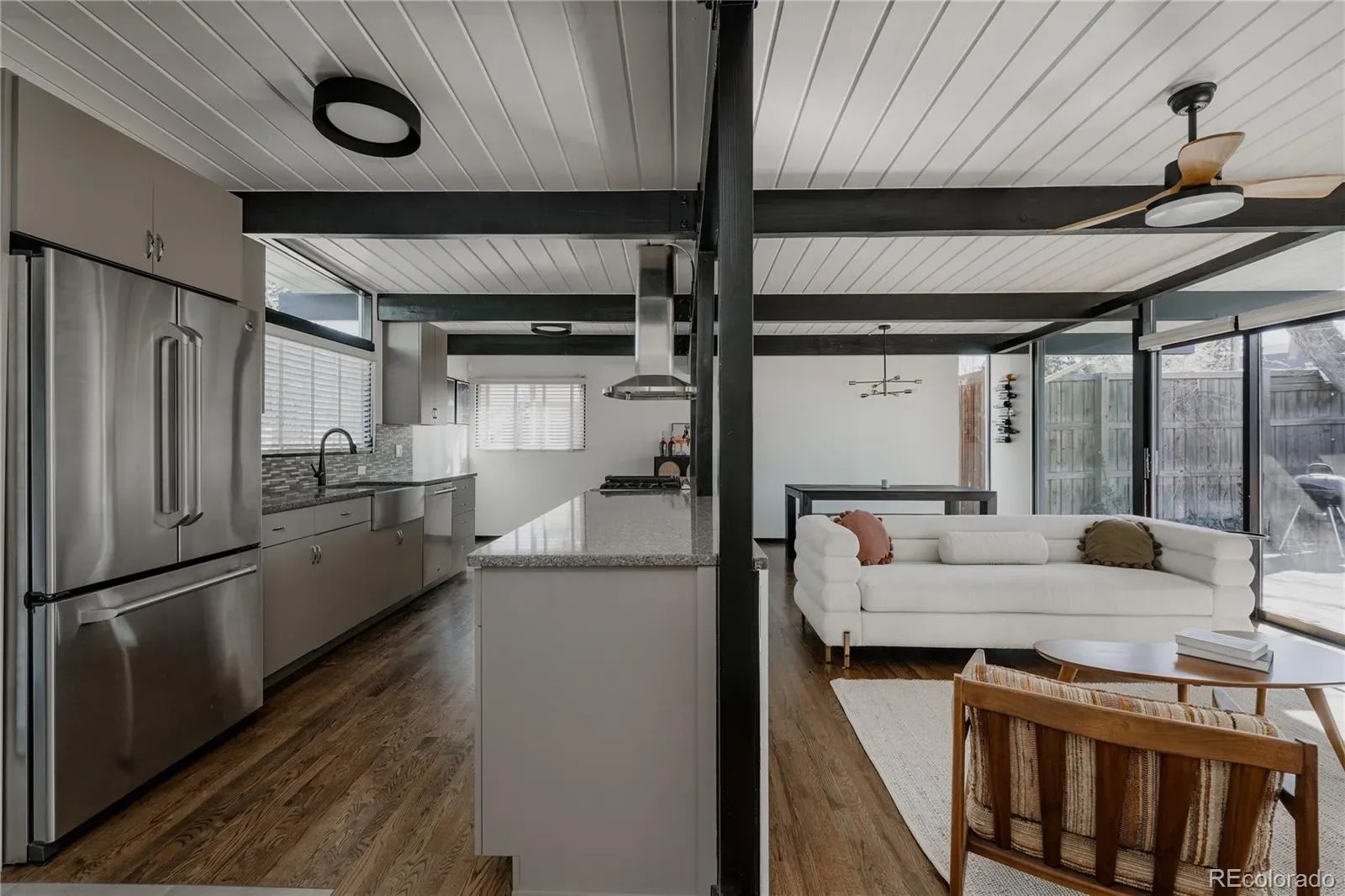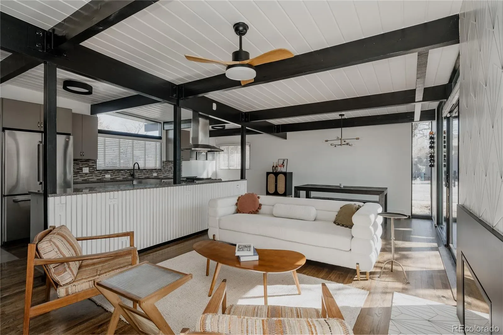 Welcome to 1495 S Elm Street in Denver’s historic, Joseph Eichler-inspired neighborhood, Krisana Park. This home, the “Model 2E”, offers an open plan, floor-to-ceiling glass, post-and-beam construction, and a comfortable interior. Hardwood floors, bright walls, and