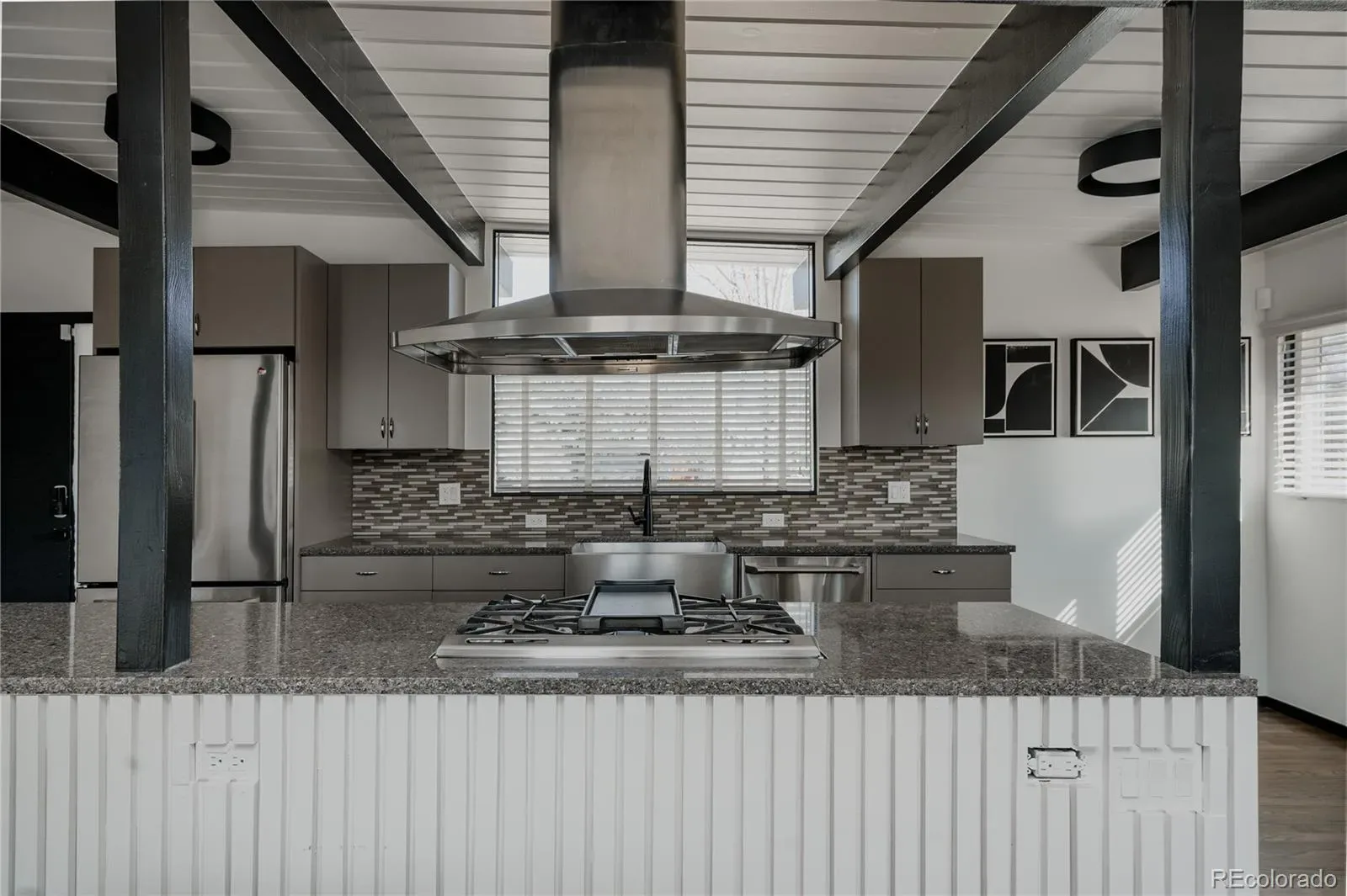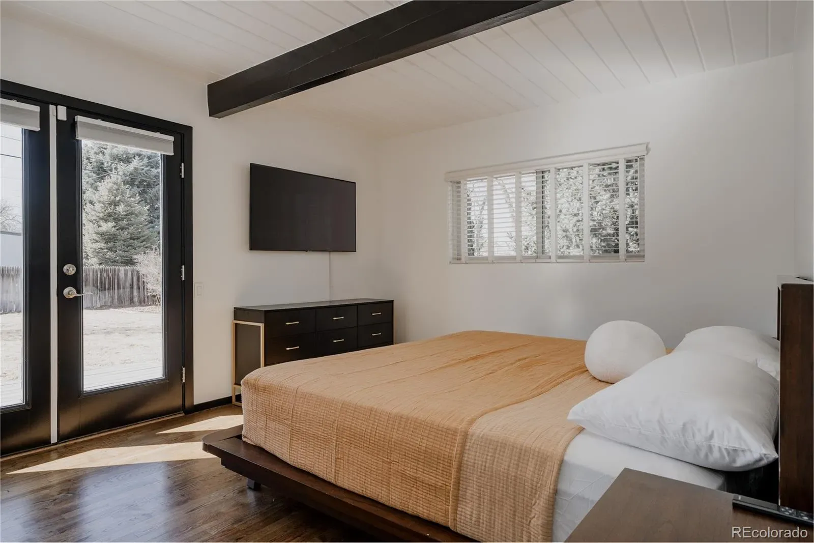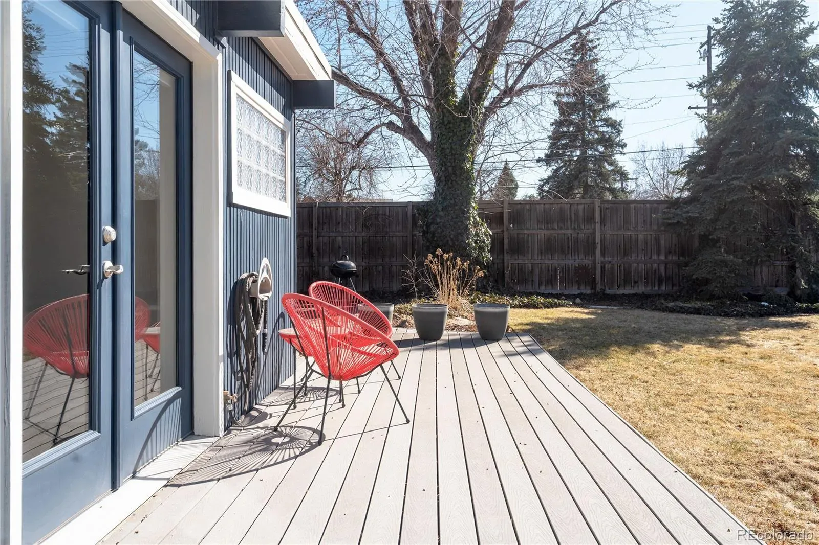 looks over a long, bright living room, connected to a ground-level deck. Comfortable bedrooms are off the wide hallway, leading to the primary suite, which offers its own private access to the backyard. An expansive lot offers plenty of room to garden and play, and offers the possibility of a future expansion or ADU. The home itself is wrapped in beautiful concrete block and vertical redwood siding. While the home maintains much of the character and detail from when it was built in 1955, the home is updated to meet the demands of modern comfort and performance and is inclusive of modern central heating, cooling and water heater systems, modern electrical service, double-pane windows and glazing, and a radon mitigation system. The home also includes a 6.8kW solar panel array – offsetting some electric utility costs – and 220V electric car charging station located in the single-car garage. This home is minutes from Wash and Platt Parks, Cherry Creek, and the University area. Don’t miss this opportunity to call this beautiful Krisana
