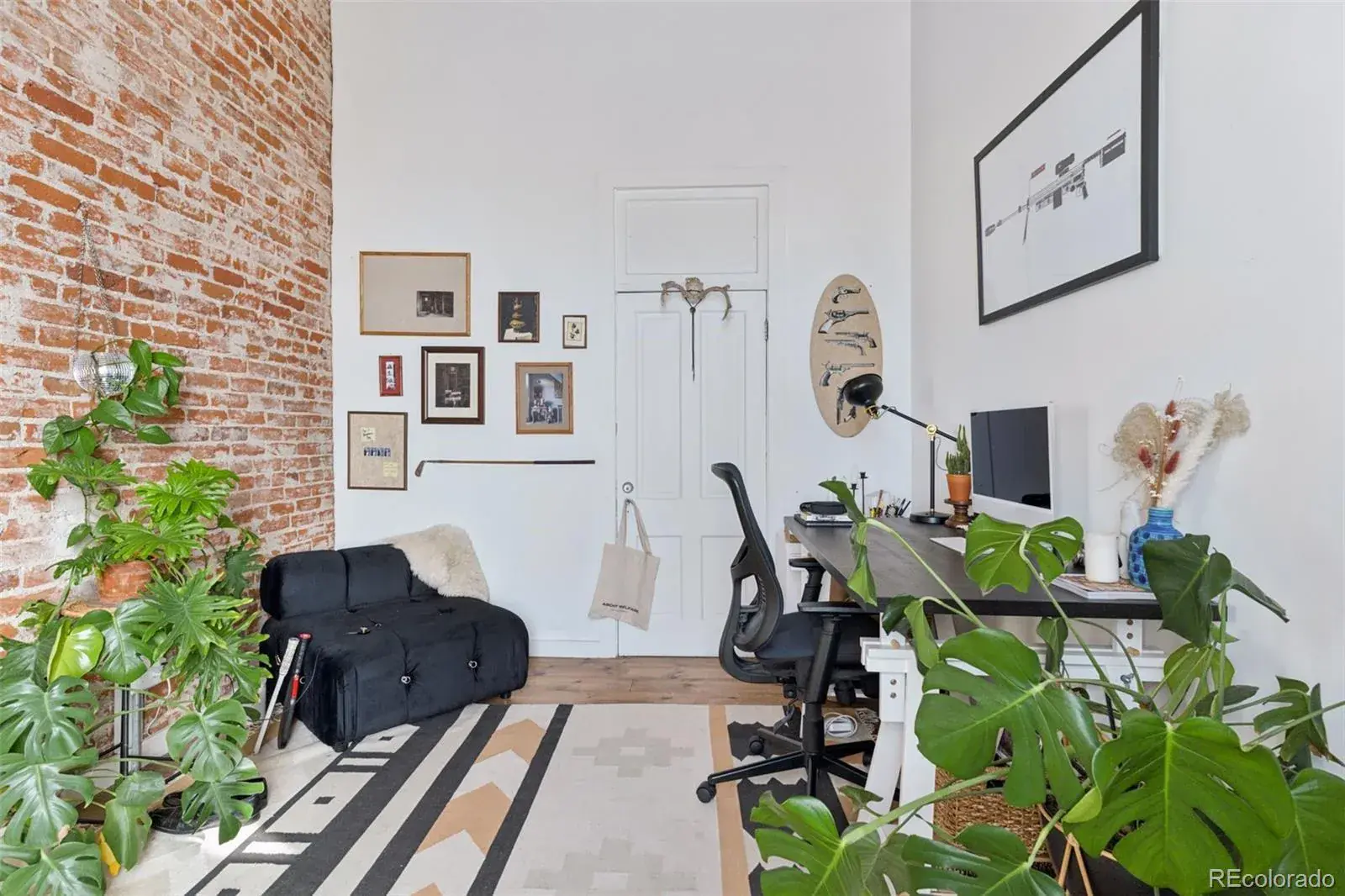The main-level residence features soaring 10-foot ceilings, oversized windows that flood the space with natural light, and a beautifully updated kitchen with hard surface countertops and stainless steel appliances. A spacious bedroom and stylish bath complete this inviting retreat. Additionally, a flex space off the main living area is perfect for a dedicated home office, offering the ideal work-from-home setup.