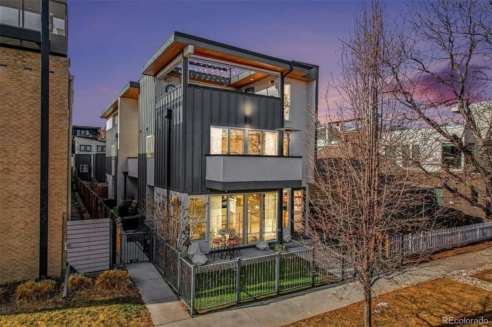 Experience Modern Luxury Living in the Heart of LoHi Welcome to this exceptional 4-bedroom, 5-bath modern duplex, perfectly situated in Denver’s sought-after Lower Highlands. Built in 2017, this home seamlessly blends sophisticated design with everyday comfort, offering views of downtown Denver from a one-of-a-kind third-story entertainment suite. The 3rd open-air deck is an entertainer’s dream, featuring a large fire pit, wet bar, & expansive indoor/outdoor seating. Enjoy city & mountain views through oversized sliding glass doors, or host unforgettable gatherings under the stars. The adjoining suite offers flexible space for a home gym, office, or guest bedroom with a full bath. Step inside to discover imported designer tile, gleaming hardwood floors, floating staircases, and 2 modern gas fireplaces The gourmet kitchen is equipped with a premium Jenn-Air appliance package, perfect for culinary enthusiasts. Each bedroom is generously sized, including a luxurious primary suite with a spa-inspired 5-piece bath and soaking tub. The fully finished basement features a private guest suite with a full bath and recreation area—ideal for visitors or family. The front yard is enclosed with a stylish wrought iron fence and features low-maintenance astroturf—perfect for pets or relaxing with neighbors in this vibrant, walkable community. Enjoy whole-home audio, smart thermostats, and remote access to security and climate controls—all easily managed from your phone or tablet for ultimate convenience and peace of mind.