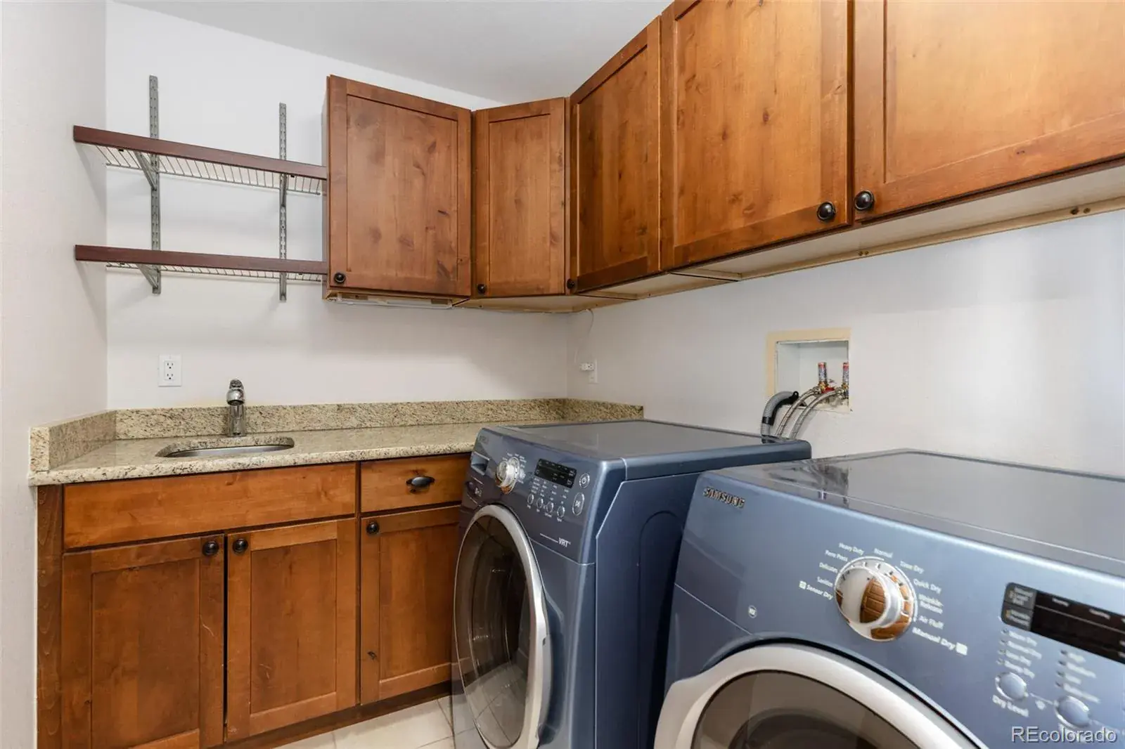 Upstairs, the second level offers two spacious ensuite bedrooms, including a dreamy primary retreat with a true five-piece bath: soaking tub, walk-in shower, double sinks, water closet, and a large walk-in closet. On the same level you’ll enjoy a full laundry room with cabinets for extra storage and a sink making everyday living feel easy and elevated.
