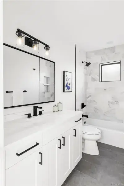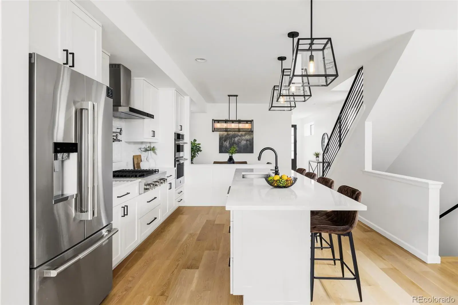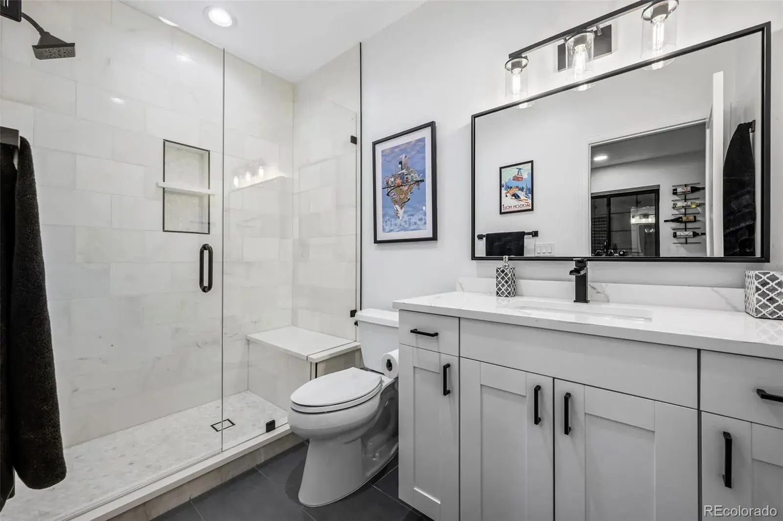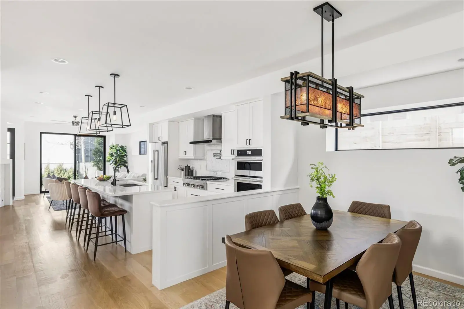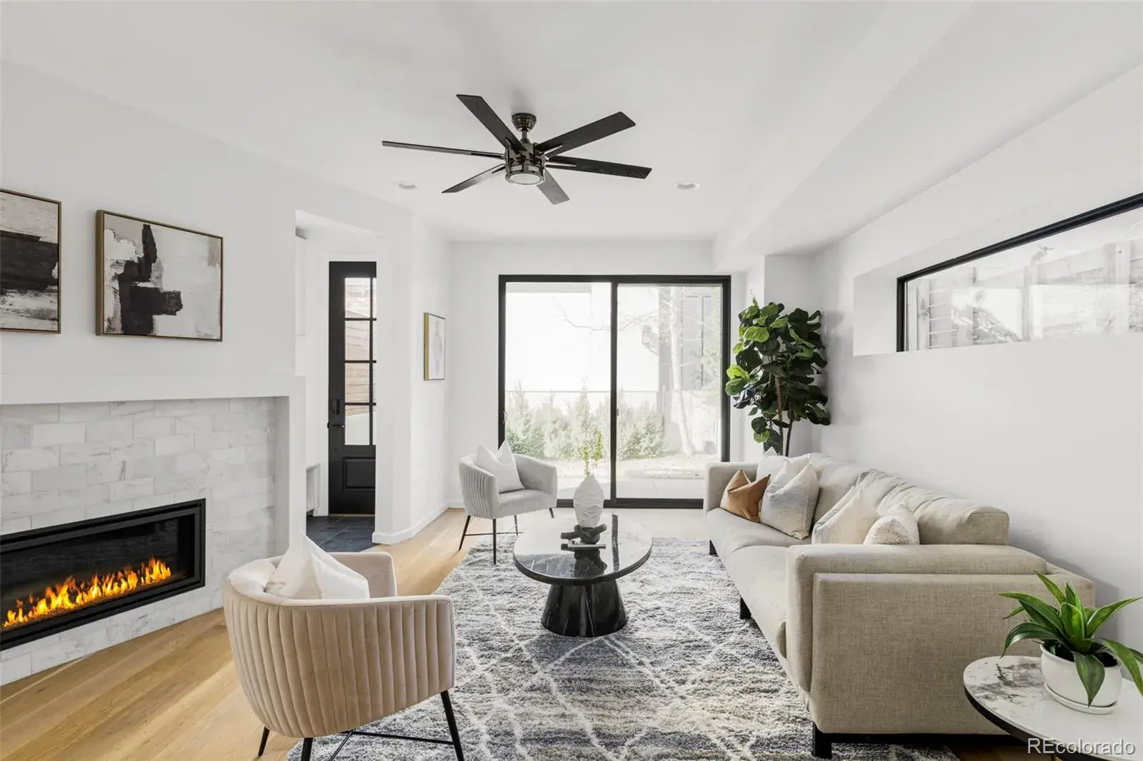 Tucked into one of Denver’s most coveted neighborhoods, this home is a rare retreat that blends privacy, sophistication, and accessibility. Built in 2020, this 5-bedroom, 4-bathroom home spans more than 3,200 square feet of refined living space, offering both tranquility and the vibrancy of LoHi just beyond the front door. The main floor showcases an ideal layout with effortless flow between living, dining, and entertaining spaces. At its center, a chef’s kitchen boasts an oversized quartz island, professional-grade appliances, and designer lighting. The living room, anchored by a sleek gas fireplace, opens through sliding glass doors to a lush backyard with mature trees, water feature, and stone patio — perfect for quiet evenings or lively gatherings. A main-level bedroom or office with full bath provides flexibility. Upstairs, the primary suite is a private sanctuary, complete with vaulted ceilings, a sunlit terrace amongst the trees, and spa-inspired bath featuring dual vanities, soaking tub, and walk-in shower. A boutique-style custom closet elevates the retreat, while two additional bedrooms, a full bath, and laundry complete the upper level. The expansive rooftop deck redefines outdoor entertaining with a kitchenette, 6-burner gas grill, hot tub, and over 800 sq ft of space. Dine under custom shade sails, watch the city lights from the lounge and fire pit, or unwind in the hot tub with sweeping Denver skyline views. The finished basement extends the lifestyle experience with a theater, rec room, full bathroom, and bedroom — currently curated as a fitness space. Detached two-car garage w/ the roof of the garage featuring a 6.2kW solar system that is fully owned and saves drastically on energy costs. Balancing serenity with city living, this Highlands residence is a lush, private oasis just minutes from Denver’s acclaimed dining, shopping, and nightlife.
