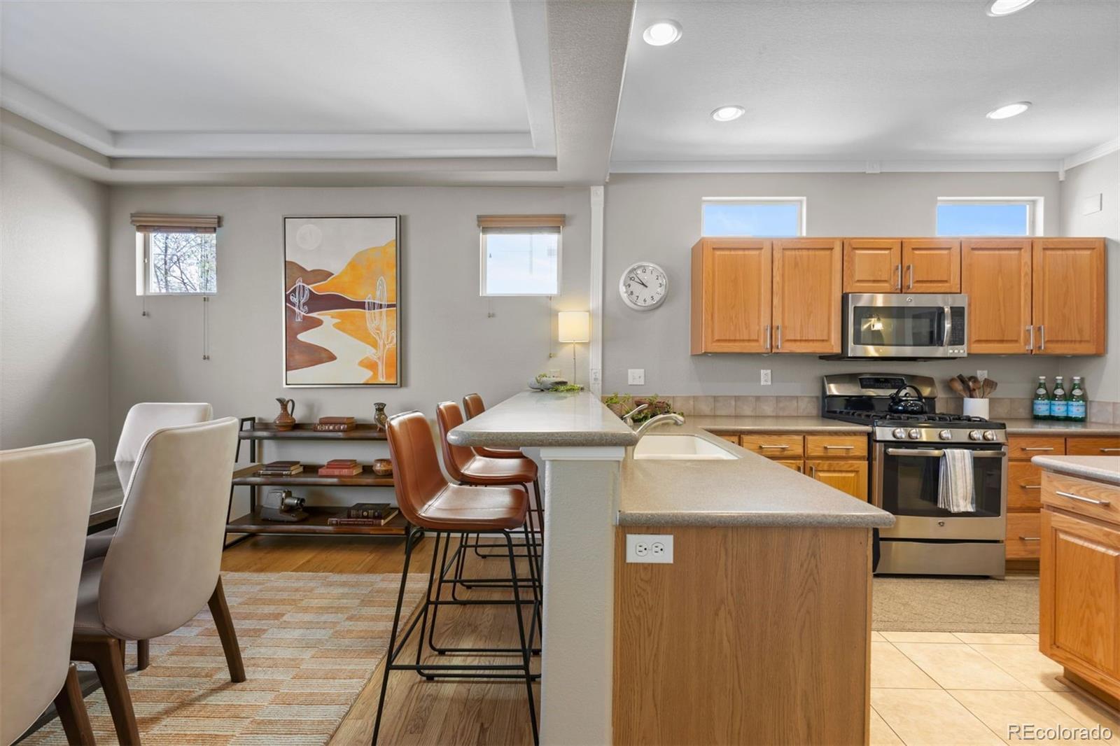 PRIME LOWRY LOCATION | UPDATED & METICULOUSLY MAINTAINED|Beautifully updated and meticulously maintained, this exceptional Village Homes two-story offers turnkey, lock-and-leave living in one of Lowry’s most desirable locations—just steps from parks, trails, and Lowry Town Center. A bright, open floor plan welcomes you with gleaming hardwood floors, abundant natural light, and a warm, inviting living room anchored by a gas fireplace. The spacious kitchen features a center island with breakfast bar, generous cabinetry, and seamless flow into the dining area, highlighted by bay window seating and an elegant cove ceiling—creating an ideal setting for both everyday living and entertaining. The finished basement expands the home’s versatility with a large family room, dedicated study or hobby space, a conforming bedroom, and a nearby full bath—perfect for guests or flexible living. Upstairs, the thoughtfully designed layout offers three bedrooms and two full baths, including a spacious primary suite with a luxurious five-piece bath. Two additional bedrooms are connected by a full Jack-and-Jill bath, providing both comfort and functionality. This home has been carefully maintained and updated with key improvements, including a new GAF roof, gutters, and vents (2024), new AMSCO windows (2024), A Trane furnace (2021), and fresh interior paint throughout—delivering peace of mind and true move-in-ready convenience. Enjoy effortless outdoor living with a beautifully designed, low-maintenance backyard featuring a brick paver patio and fenced yard—ideal for relaxing or entertaining. The HOA-managed grounds further enhance the lock-and-leave lifestyle. Perfectly positioned near Bayaud Park, scenic trails, Boulevard One, Lowry Town Center, Cherry Creek, and Downtown Denver, this home offers an exceptional combination of location, lifestyle, and ease. Low-maintenance luxury living at its best—this is Lowry living at its finest. PRIME LOCATION—STEPS TO IT ALL www.64SRosemary.com