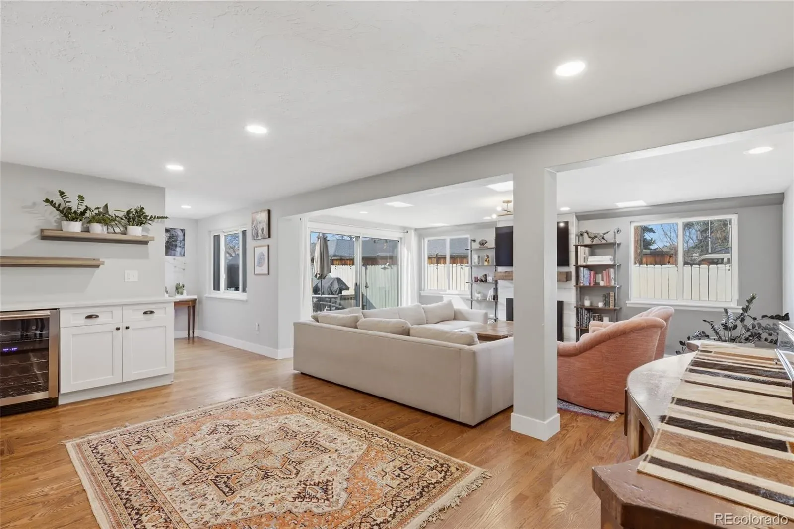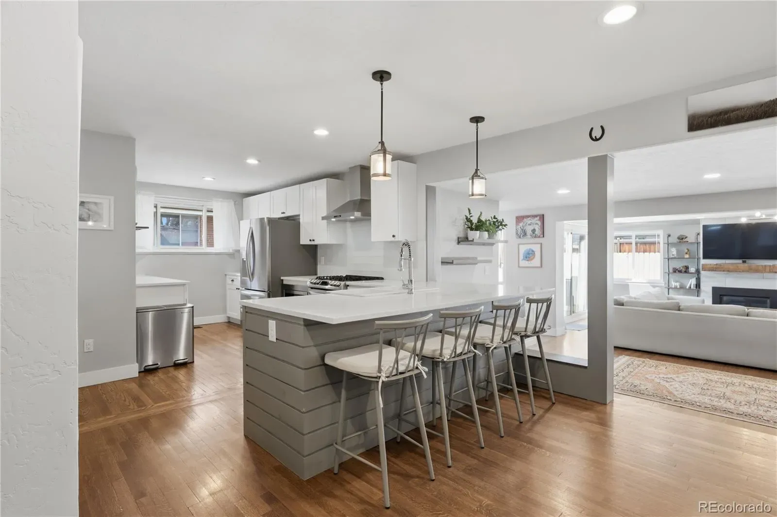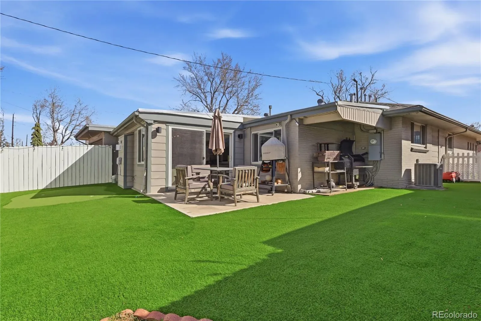 Solidly built in 1953, this 4-bedroom, 2.5-bath brick ranch in Mayfair Park delivers something almost impossible to find at this price: 2,155 square feet all on one floor, with no stairs, no compromises, and a location that puts Lowry Town Center, Boulevard One, and Crestmoor Park trails within easy walking distance.The heart of the home is a beautifully updated kitchen featuring quartz countertops, stainless steel appliances, warm wood accents, and generous white cabinetry — designed for the way people actually cook and entertain. The living room anchors around a gas fireplace with floor-to-ceiling tile and a built-in bar with wine cooler, the kind of space that feels equally right for a quiet Tuesday night or a dinner party for twelve. The primary suite is genuinely generous — two walk-in closets, barn doors, and a fully remodeled 5-piece bath with both a soaking tub and walk-in shower. Three additional bedrooms give you real flexibility: home office, guest room, a nursery that grows into a kids’ room — whatever your life needs right now. HVAC and mechanical systems give you confidence in the bones. Main-floor laundry, a turfed backyard built for low maintenance, a back patio for summer evenings, and a welcoming front deck round out the package. The 2-car attached garage includes a Level 2 EV charger and serious storage. Mayfair Park is a neighborhood people fight to get into — quiet streets, mature trees, and a 10-minute walk to some of Denver’s best dining, coffee, and retail. Cherry Creek and downtown are both under 15 minutes. This is the one-level home in the right zip code that rarely comes available. Professional photos, video, and 3D tour available.