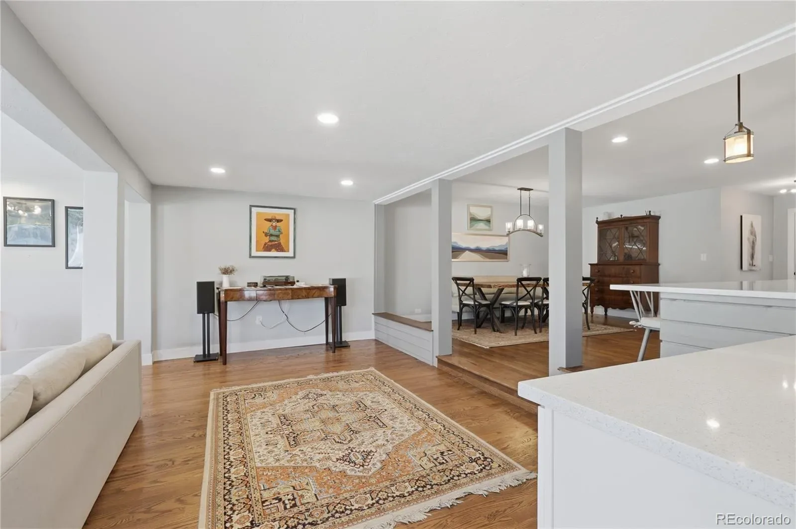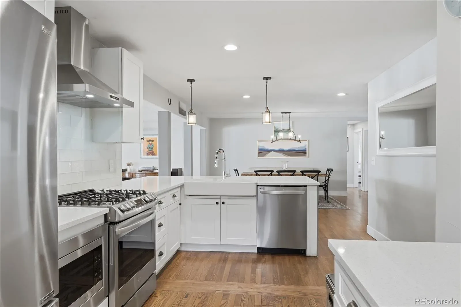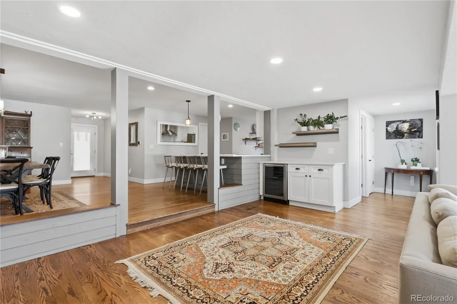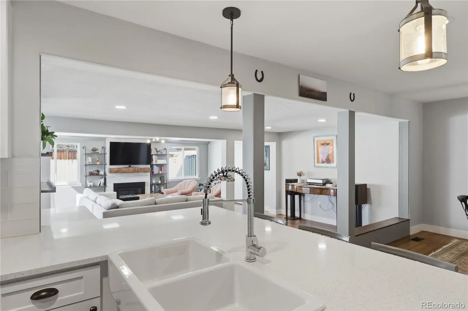 Solidly built in 1953, this 4-bedroom, 2.5-bath brick ranch in Mayfair Park delivers something almost impossible to find at this price: 2,155 square feet all on one floor, with no stairs, no compromises, and a location that puts Lowry Town Center, Boulevard One, and Crestmoor Park trails within easy walking distance.The heart of the home is a beautifully updated kitchen featuring quartz countertops, stainless steel appliances, warm wood accents, and generous white cabinetry — designed for the way people actually cook and entertain. The living room anchors around a gas fireplace with floor-to-ceiling tile and a built-in bar with wine cooler, the kind of space that feels equally right for a quiet Tuesday night or a dinner party for twelve. The primary suite is genuinely generous — two walk-in closets, barn doors, and a fully remodeled 5-piece bath with both a soaking tub and walk-in shower. Three additional bedrooms give you real flexibility: home office, guest room, a nursery that grows into a kids’ room — whatever your life needs right now. HVAC and mechanical systems give you confidence in the bones. Main-floor laundry, a turfed backyard built for low maintenance, a back patio for summer evenings, and a welcoming front deck round out the package. The 2-car attached garage includes a Level 2 EV charger and serious storage. Mayfair Park is a neighborhood people fight to get into — quiet streets, mature trees, and a 10-minute walk to some of Denver’s best dining, coffee, and retail. Cherry Creek and downtown are both under 15 minutes. This is the one-level home in the right zip code that rarely comes available. Professional photos, video, and 3D tour available.