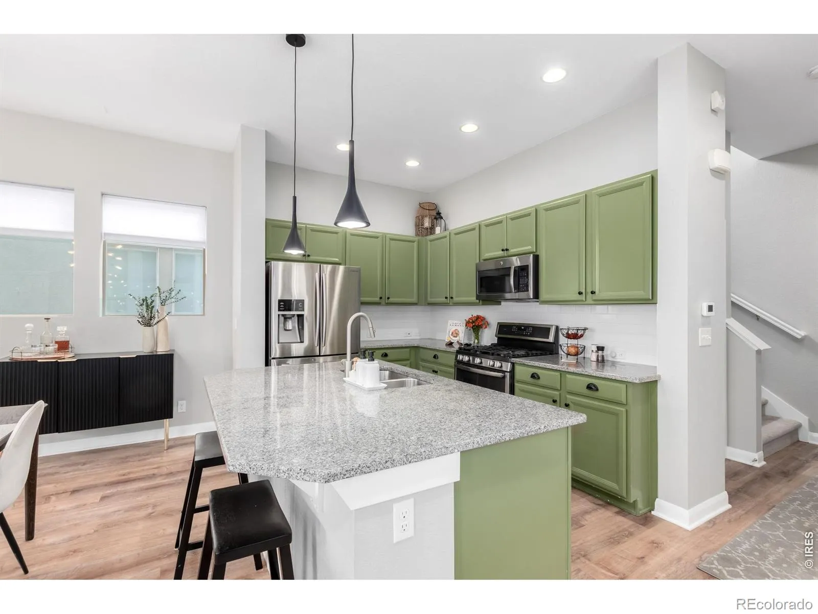 Welcome to this beautiful two-story home in Midtown Denver, where modern style, flexible living space, and everyday convenience come together! From the inviting front porch to the timeless stone-accented exterior, this move-in ready home offers warmth, curb appeal, and thoughtful updates throughout. Inside, you’ll find tall ceilings, abundant natural light, contemporary light fixtures, a neutral palette, and an open-concept layout designed for comfortable daily living and easy entertaining. The kitchen is a standout with stainless steel appliances, granite countertops, subway tile backsplash, ample cabinetry, a large pantry, recessed and pendant lighting, and a center island with breakfast bar seating. Upstairs, three spacious bedrooms provide privacy and comfort, including a primary suite with a walk-in closet and a beautifully remodeled ensuite bath completed in 2024 featuring dual sinks, a soaking tub, and a glass-enclosed shower. The finished basement adds valuable extra living space with a large family room, an additional bedroom, and a 3/4 bathroom-ideal for guests, multigenerational living, a home office, gym, or media room. Outside, enjoy a private yard with a unique in-ground deck perfect for relaxing or entertaining. Additional highlights include solar panels installed in 2025 for energy savings, a 2-car garage with high ceilings, and a Tesla charger. Located in the desirable Midtown community, this home is just minutes from major commuter routes, shopping, dining, parks, schools, and a brewery and restaurant across the street. With walking and biking paths and Clear Creek nearby, this home offers the perfect blend of modern comfort, functional space, and connected Colorado living. Come see it today!