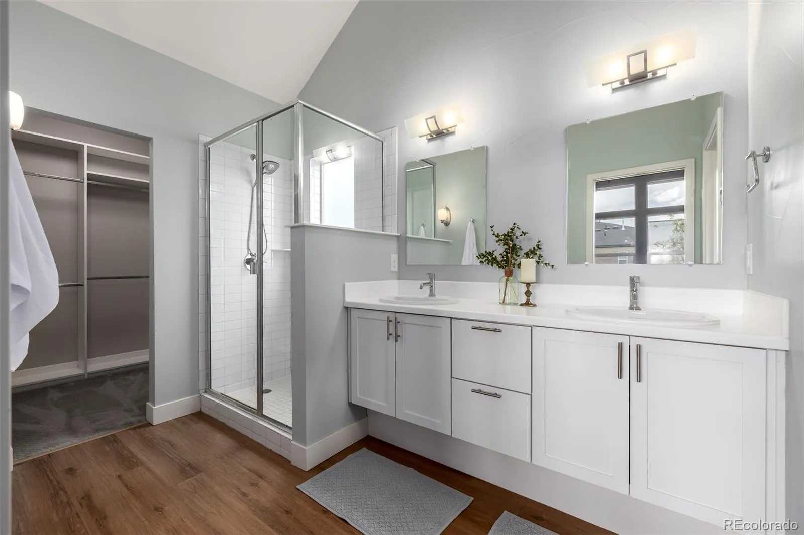 Upstairs, enjoy vaulted ceilings, a versatile loft perfect for a home office or flex space, a convenient laundry room, and generously sized bedrooms. The primary suite offers a relaxing retreat with dual sinks, a sleek glass-enclosed shower, and a walk-in closet.