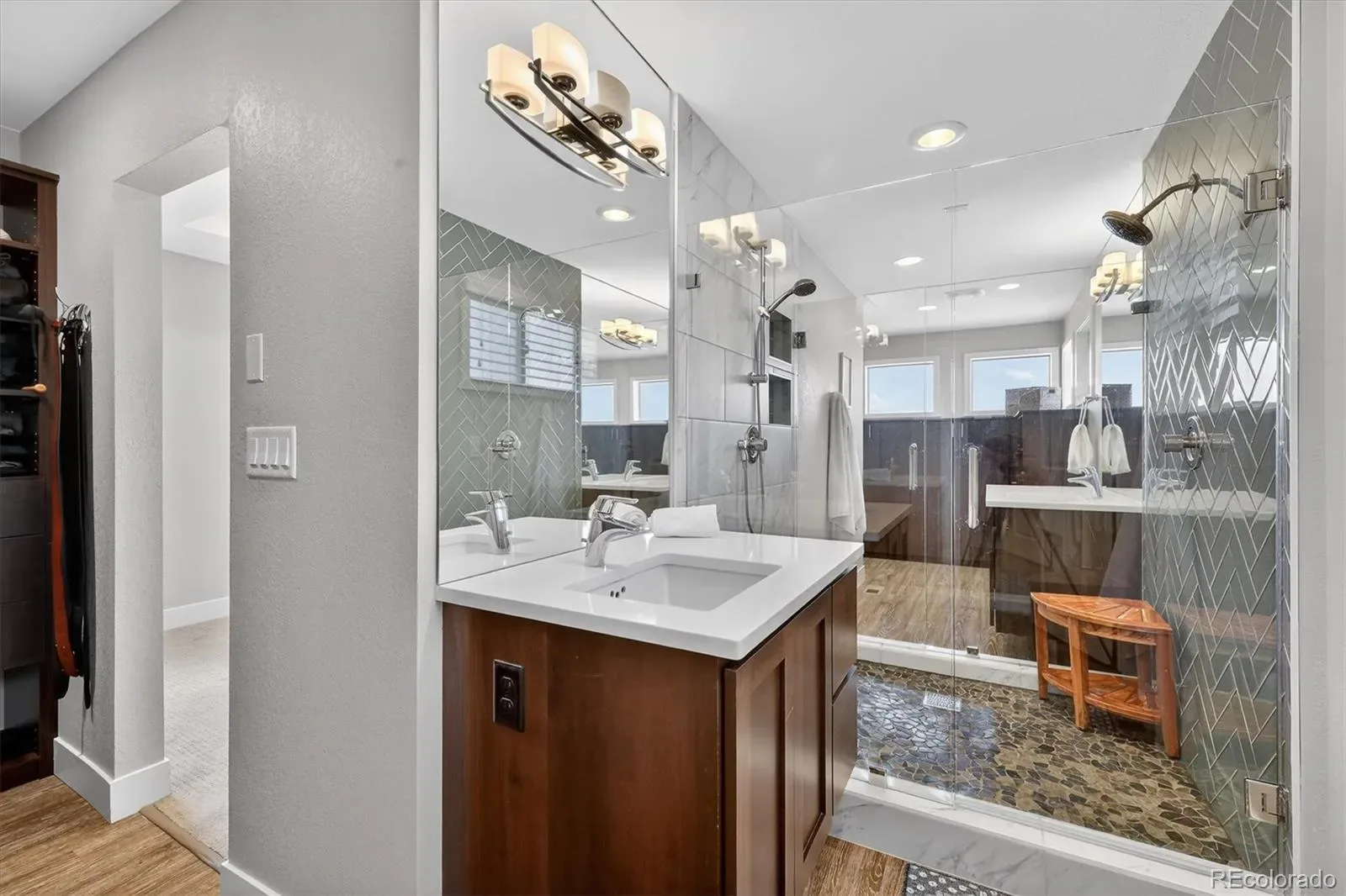 Welcome to this elegant Brookfield Signature 2 in Denver’s coveted Midtown neighborhood. Step inside to an open floor plan bathed in natural light, where rich walnut-toned cabinetry, floating shelves, + premium GE stainless steel appliances set the stage for a chef’s kitchen that is as functional as it is beautiful. The subway tile backsplash, quartz countertops, open shelving, + a gas range make entertaining effortless. A trio of sliding glass doors extends your living space out to the private side deck: a welcoming outdoor space complete with a grill area, custom wood privacy screen, + under lights that make every evening feel like a celebration. A dedicated main floor non-conforming bedroom is the perfect office or suite for guests/extended family. The generous primary bedroom on the upper level features its own conservatory + affords a variety of options to enrich your private retreat. The primary bath strikes the perfect balance of intimacy + privacy, with dual vanities, dual water closets, dual storage solutions, + a spa-like shower with Euro-style doors that bring it all together. An additional upper-level bedroom just down the hall features its own ensuite bath with a tub/shower. A convenient upstairs laundry room with a full-size LG washer + dryer + overhead cabinetry separates the bedrooms, keeping life a little tidier without the hassle of carrying loads up + down the stairs. The unfinished basement, already framed, rough-in with plumbing, + insulated, is a blank canvas for your vision! An oversized two-car garage provides ample room for all your gear. Energy Star Certified home. Tankless water heater. Ring Doorbell. Nest Thermostat. Walk to Trailside Academy K-8, Midtown Montessori preschool, parks, playgrounds, + trails. Unwind with friends at Bruz, one of Colorado’s most beloved dog-friendly craft breweries. Easy access to downtown Denver + the mountains make this the perfect home for Colorado living! *ASK ABOUT LENDER INCENTIVES + FHA ASSUMPTION!