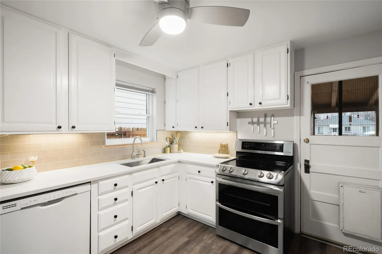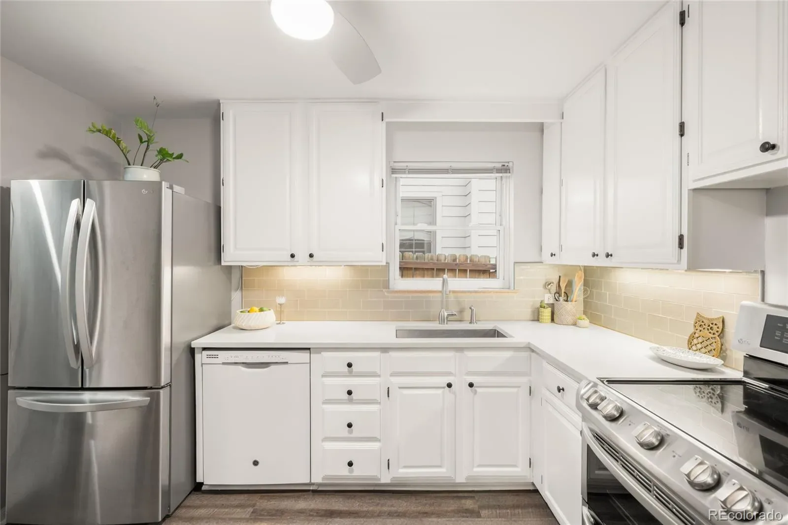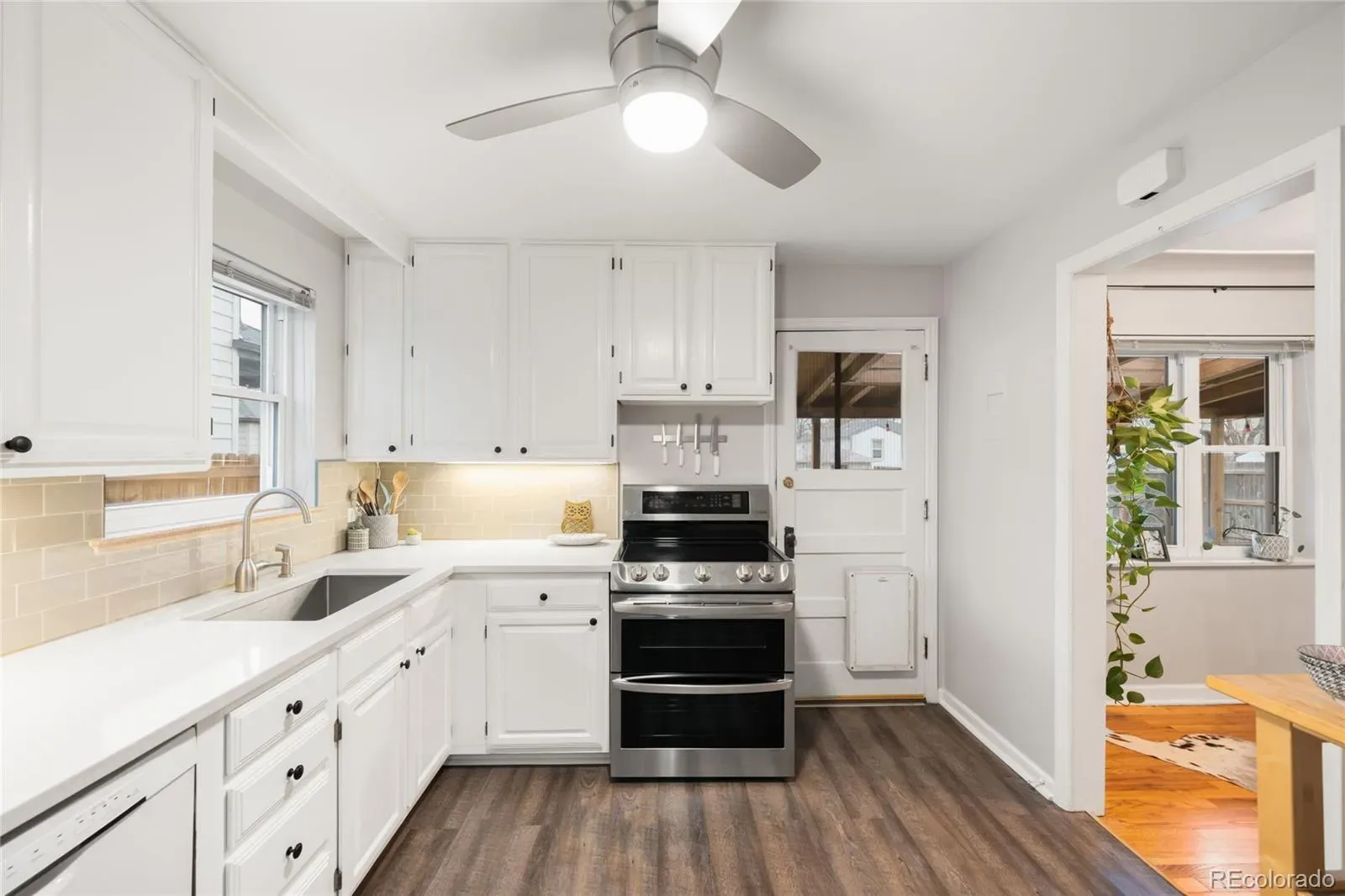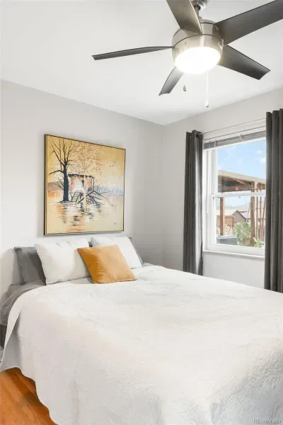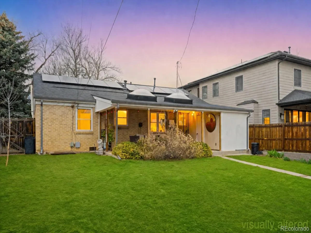 This pristine masterpiece perfectly merges timeless charm and elegant modernity. Steeped in an enviable locale on a spacious lot on a quiet street just steps from Mayfair Park, this location & turnkey residence excites. Charming curb appeal welcomes you to step onto a welcoming, covered front porch and into this fully renovated home. Flooded with natural light and large windows, the living space has excellent livability with hardwood floors and flows seamlessly into a spacious dining area. The connected kitchen was recently refreshed and showcases slab countertops, updated appliances, fresh paint, new backsplash, under counter lighting and easy access to the sprawling back yard. As you step into the back outdoor area of the home, enjoy endless entertaining under a sprawling covered patio, a vast yard and a convenient, covered shed for the storage of all-season tools and toys. Back inside the residence, find two spacious bedrooms and a new full bath showcasing chic tile and designer fixtures. Relish in the convenience of a well-maintained home with an OWNED solar system, a one-car attached garage, almost 500ft of patio space, a new roof, newer HVAC and A/C, updated sewer, fresh paint and close proximity to many parks, shops and restaurants. Don’t miss the neighborhood boutiques 2 blocks away on 10th & Jersey and Denver’s favorite amenities at your fingertips. This opportunity will not last long.