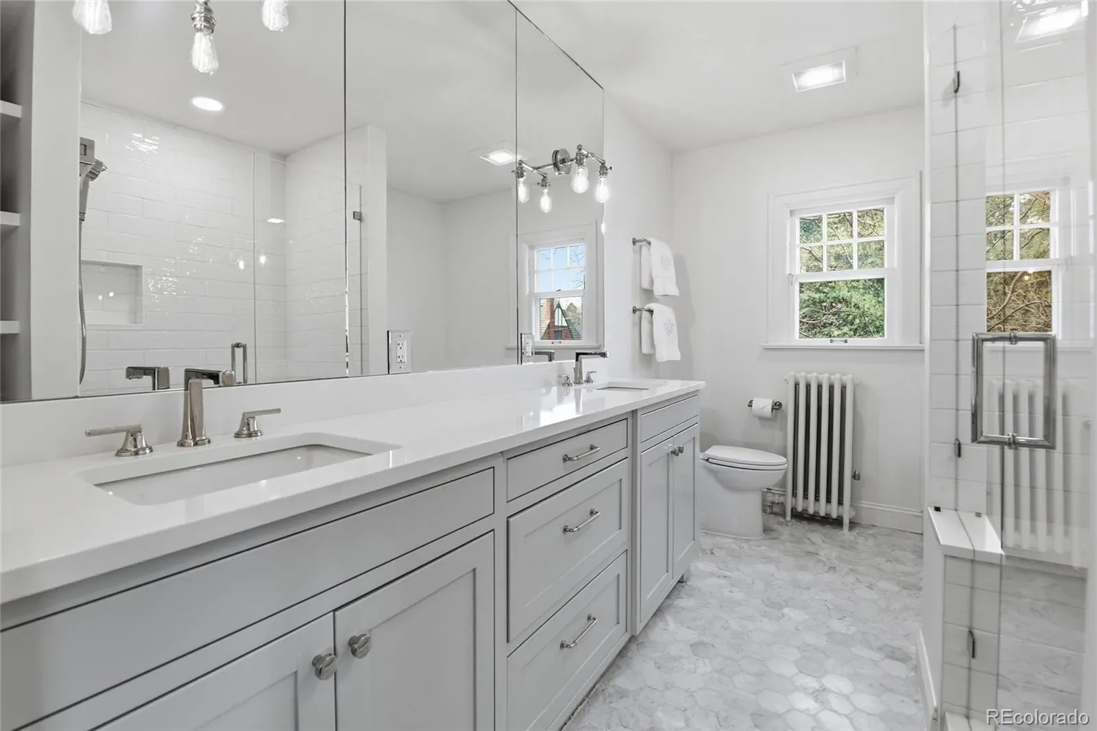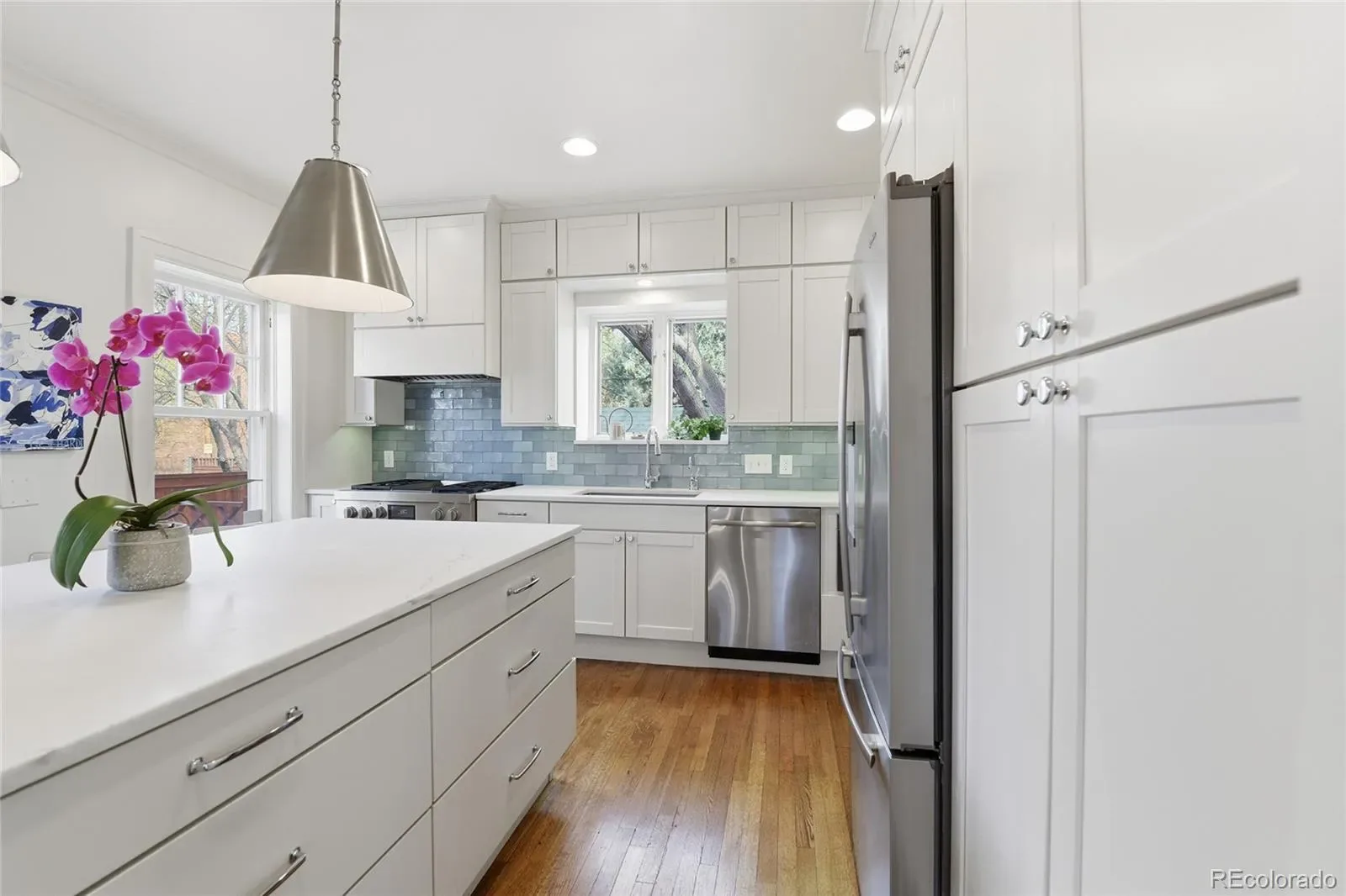 Perfectly positioned in the heart of historic Park Hill, 1960 Leyden offers an unbeatable blend of timeless charm and modern convenience. Just 10 minutes from Downtown Denver and approximately 25 minutes to Denver International Airport, this coveted location places you moments from beloved neighborhood dining including Esters, Park Hill Sushi Co., and Bistro Vendôme. The vibrant energy of nearby Central Park with its shops, parks, and community events is a bonus. Everyday conveniences are effortless with King Soopers, Sprouts, and Spinelli’s Market just minutes away. Inside, the home has been thoughtfully reimagined with a stunning chef’s kitchen featuring high end JennAir appliances, striking leathered stone countertops, and beautifully crafted new cabinetry that elevates both form and function. The primary bathroom serves as a spa-like retreat, complete with white marble floors and a luxurious soaking tub designed for quiet moments of relaxation. This five piece bath will be your haven within the home to relax and recharge. Oak floors welcome you to the updated living room with coved ceilings, design friendly fireplace and new lighting. Extending the living space outdoors, a large covered patio creates the perfect setting for year round lounging or al fresco dining, inviting gatherings that flow effortlessly from indoors to out. Whether hosting lively summer dinners or enjoying quiet mornings with coffee, this outdoor space becomes a natural extension of the home’s warmth and livability. This home has touches of original charm as well that has been preserved through the years, like the tile in the upstairs hall bathroom from the 1930’s. The backyard is lush and inviting with mature landscaping including perennials, a crabapple tree, redbud, and a large ash tree. Located on a quiet block where Leyden does not run through 17th, this location offers added peace and privacy. This is exactly what home should be!