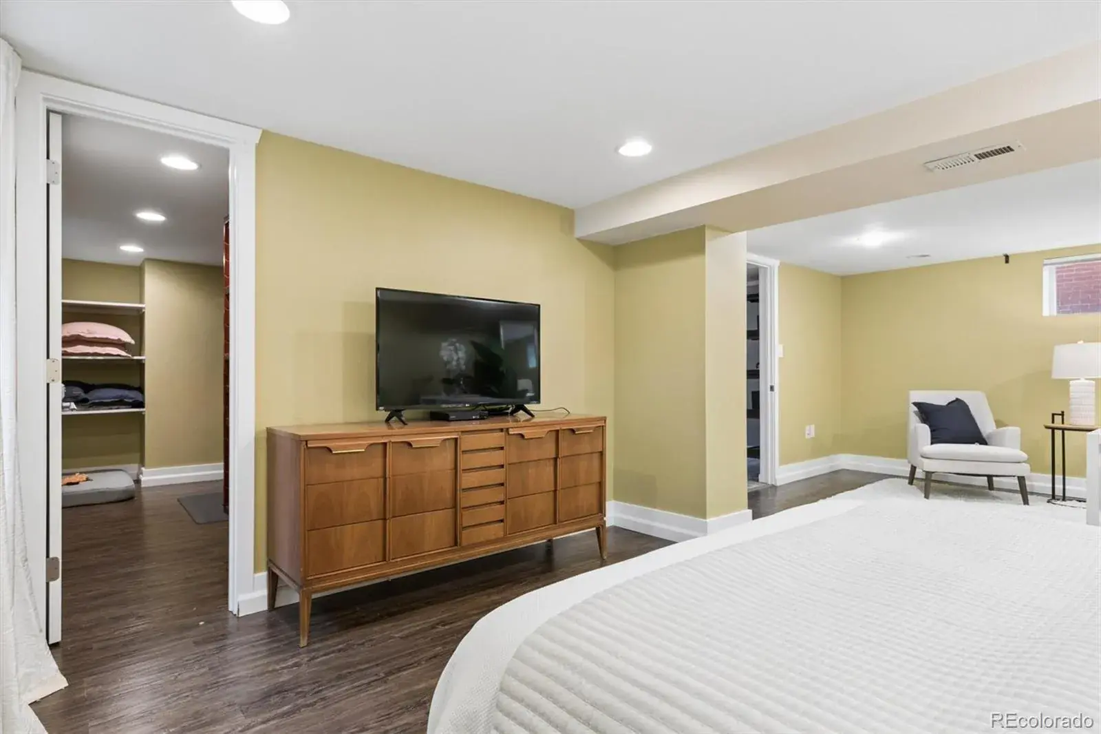 The south-facing kitchen is filled with natural light year-round and offers crisp white cabinetry, expansive countertops, and generous workspace. Two comfortable bedrooms and a full bath complete the main level. The beautifully finished, sunny lower level expands the living space, featuring a spacious primary retreat with an egress window, a large walk-in closet, and a luxurious full bathroom. An additional bonus room provides flexibility for a home office, fitness space, or creative studio. The home is enhanced by both a kitchen water filtration system and a whole-house water filter. Step outside to enjoy the large, private backyard with a patio perfect for summer evenings and outdoor gatherings. The two-car detached garage with charming barn doors opens to the yard for added convenience. Relax on the welcoming front porch and enjoy the peaceful neighborhood setting. Ideally located just moments from the vibrant shops and restaurants of Old South Pearl Street and South Broadway — this is truly a Platt Park treasure!