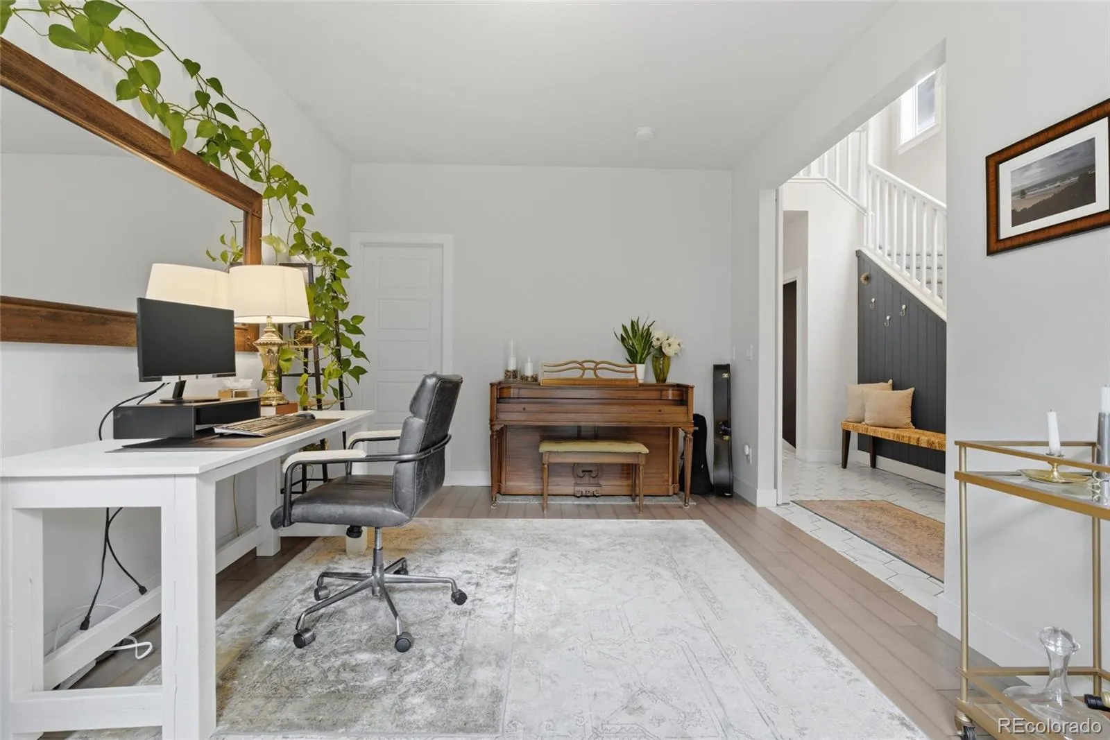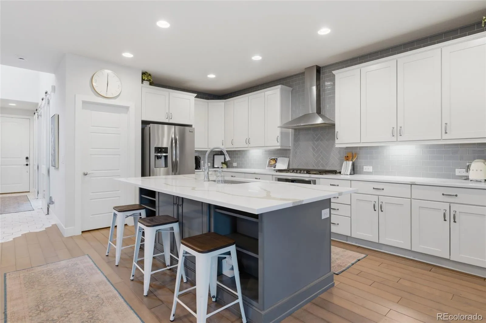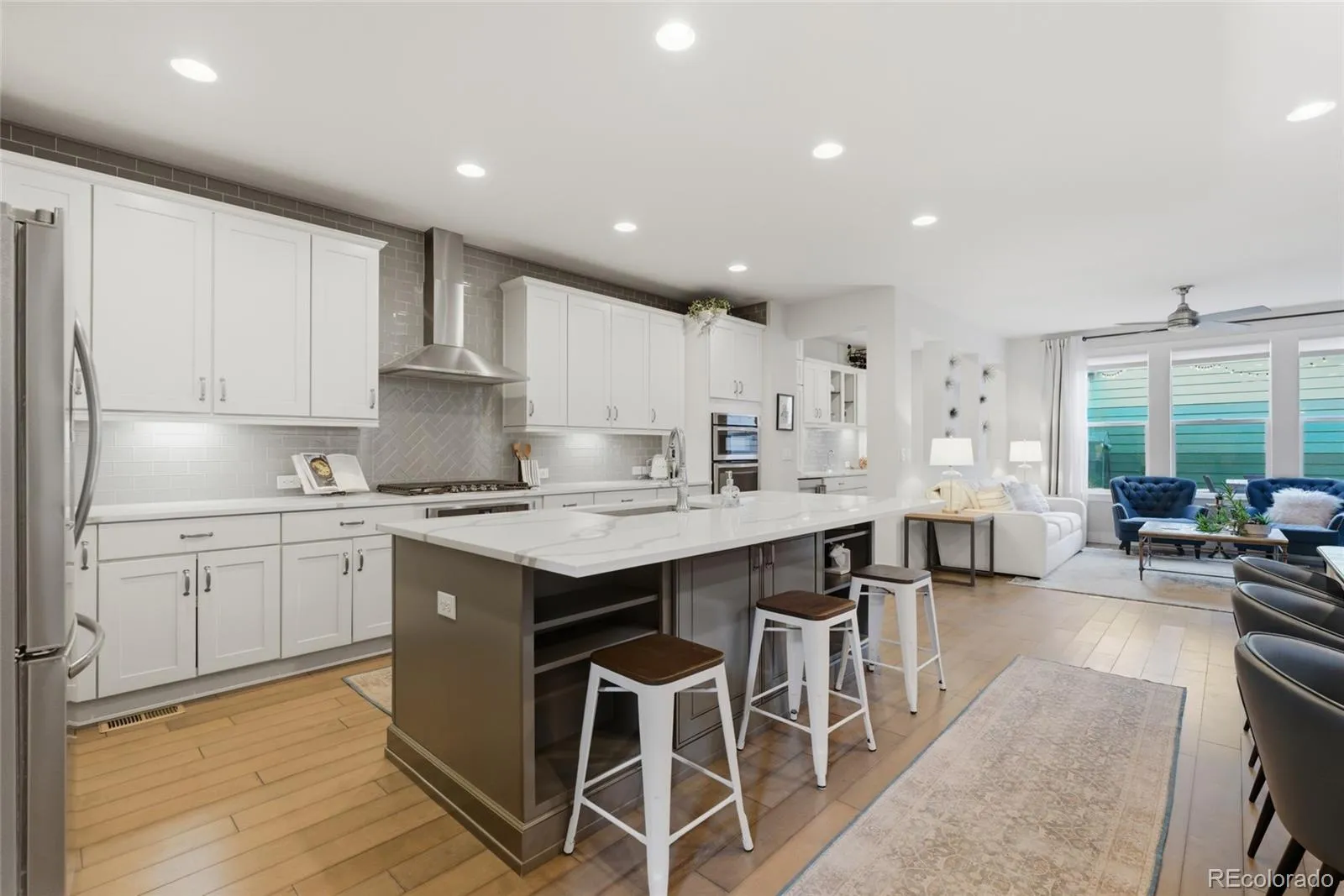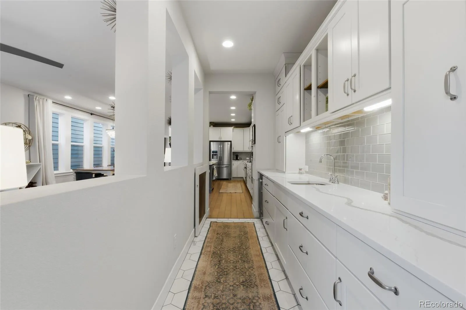 Bright, open main level with a light-filled office framed by French doors — ideal for work-from-home. The updated, modern kitchen is perfect for cooking and entertaining, with sleek finishes plus a versatile side butler bar that functions as a wine bar, coffee prep area, or additional service station.