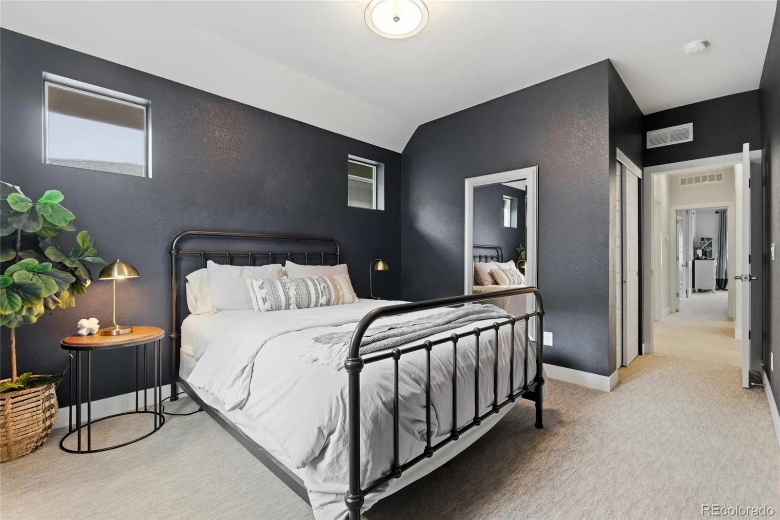 The primary suite is large and bright, featuring a generous bathroom and a walk-in closet. There are also two upper-level bedrooms and a convenient laundry room positioned next to the bedrooms.