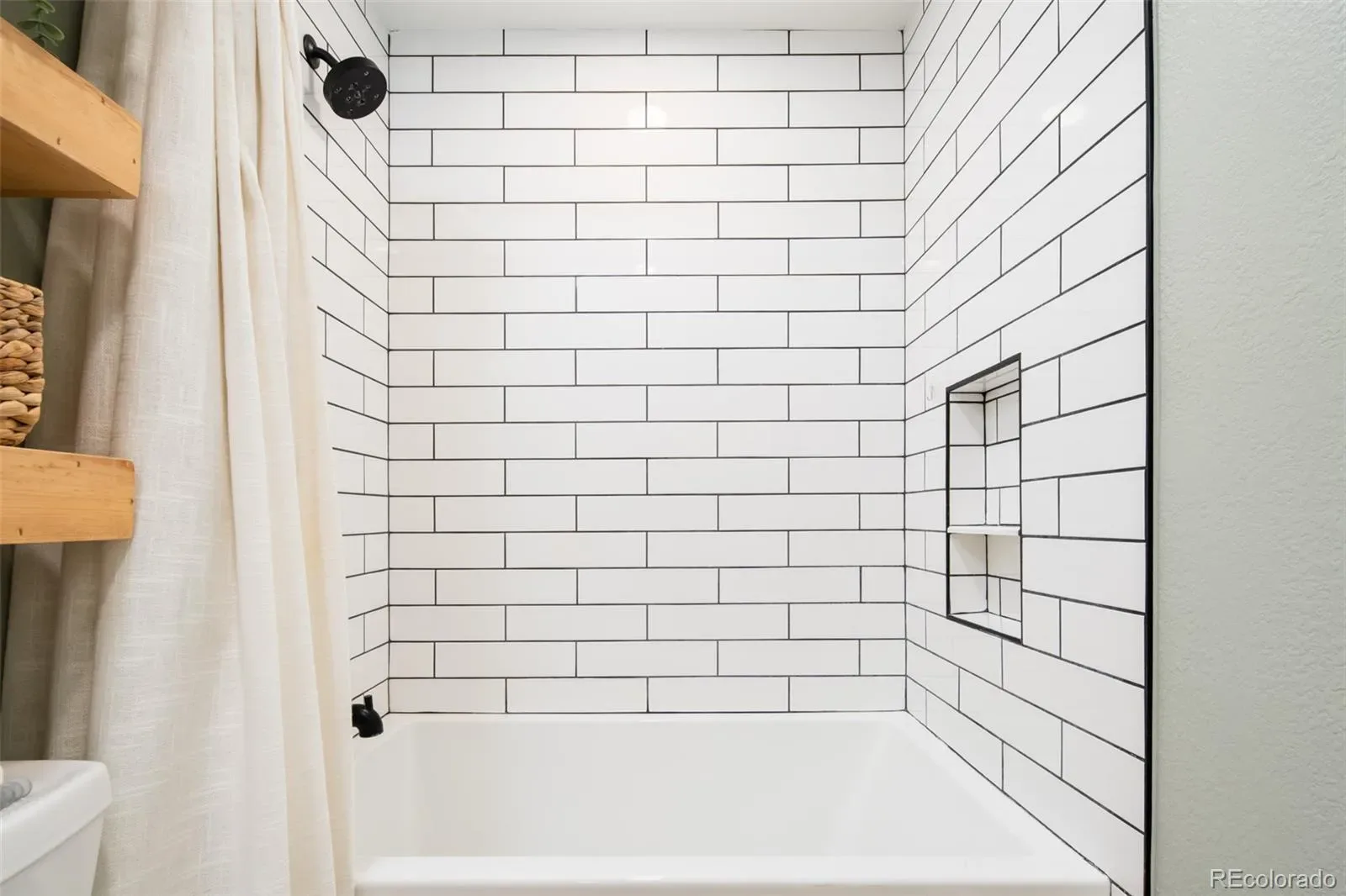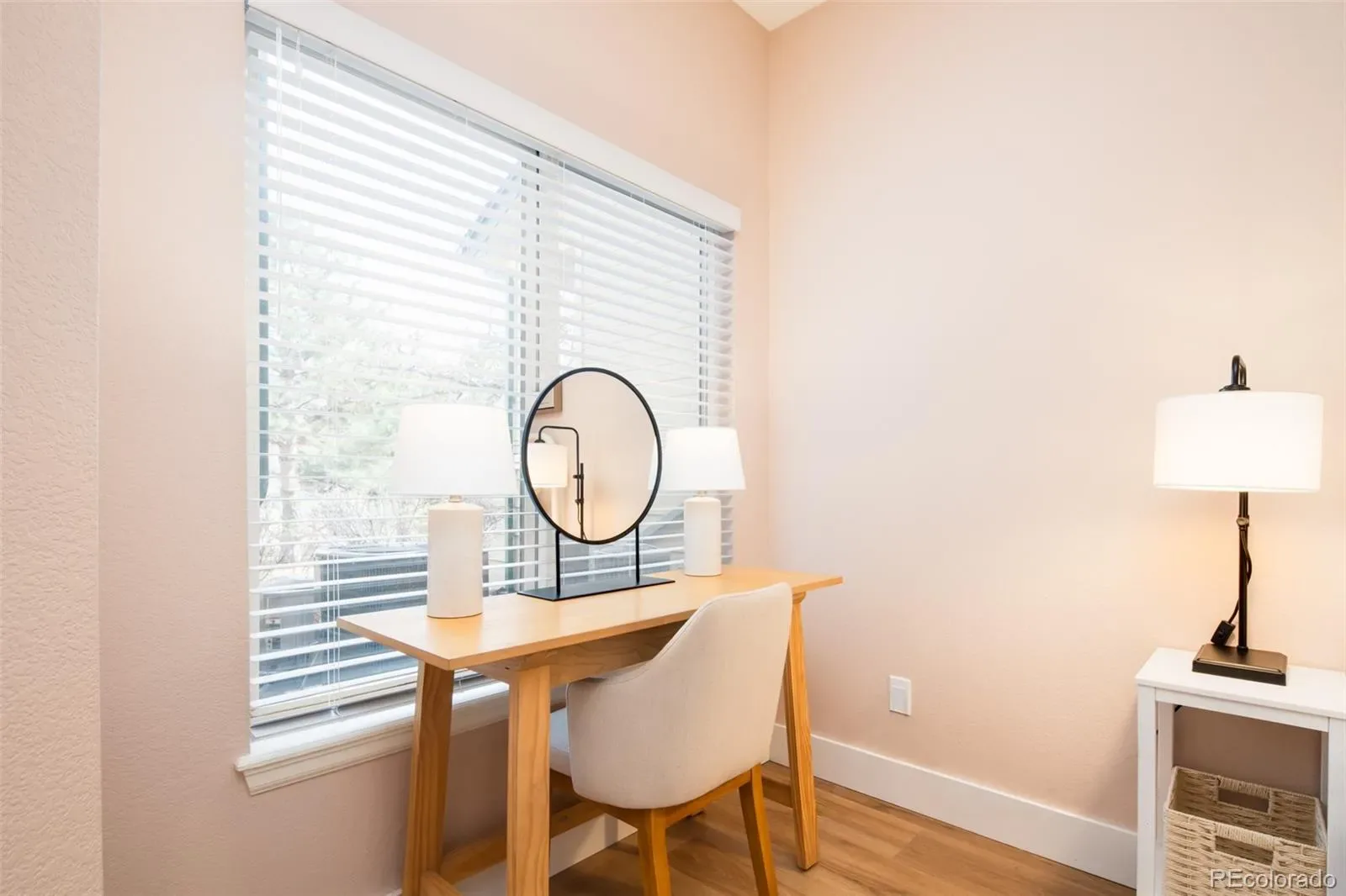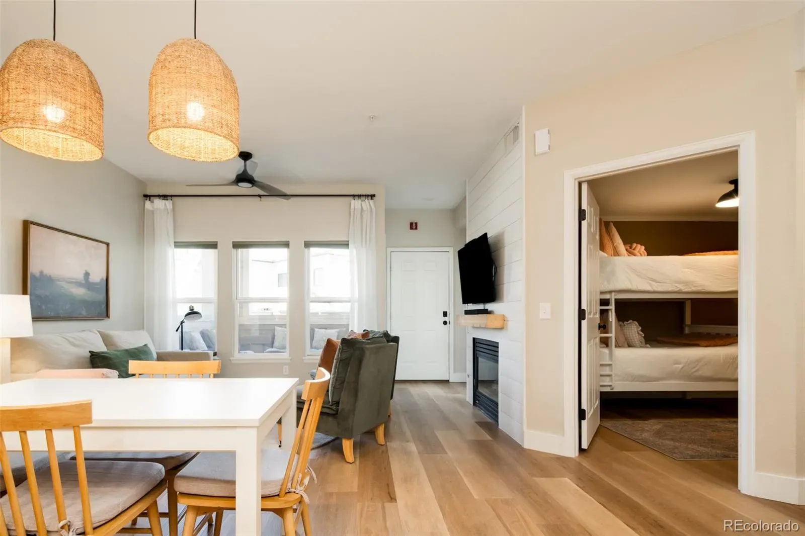 Modern comfort meets sophisticated style within this completely renovated home in Southeast Denver’s River Rock Condominiums. Freshly painted and adorned with elegant finishes, luxury vinyl flooring traverses throughout the inviting open floor plan extended outdoors by a rare oversized and covered patio for optimal relaxation. Flooded by natural light pouring in through a series of windows, the living room basks in a cozy ambience accentuated by a gas fireplace, while the adjacent dining room is perfectly situated near the beautifully updated kitchen with quartz countertops and new stainless-steel appliances. Situated off the main living area is a secondary nonconforming bedroom and a brief hallway unfolding to reveal a chic full-bath featuring a befitting double-vanity and the primary bedroom boasting a generous walk-in closet. Adding to the home’s satisfaction is a concealed laundry closet, complete with a brand-new washer and dryer. This distinguished unit also includes a deeded single car garage to which the seller has added remote access capability for utmost convenience. The gated community, featuring a pool, clubhouse and other HOA amenities and services, bridges suburban comfort with city living, as well as access to the nearby High Line Canal Trail for mountain daydreams and endless outdoor adventures.