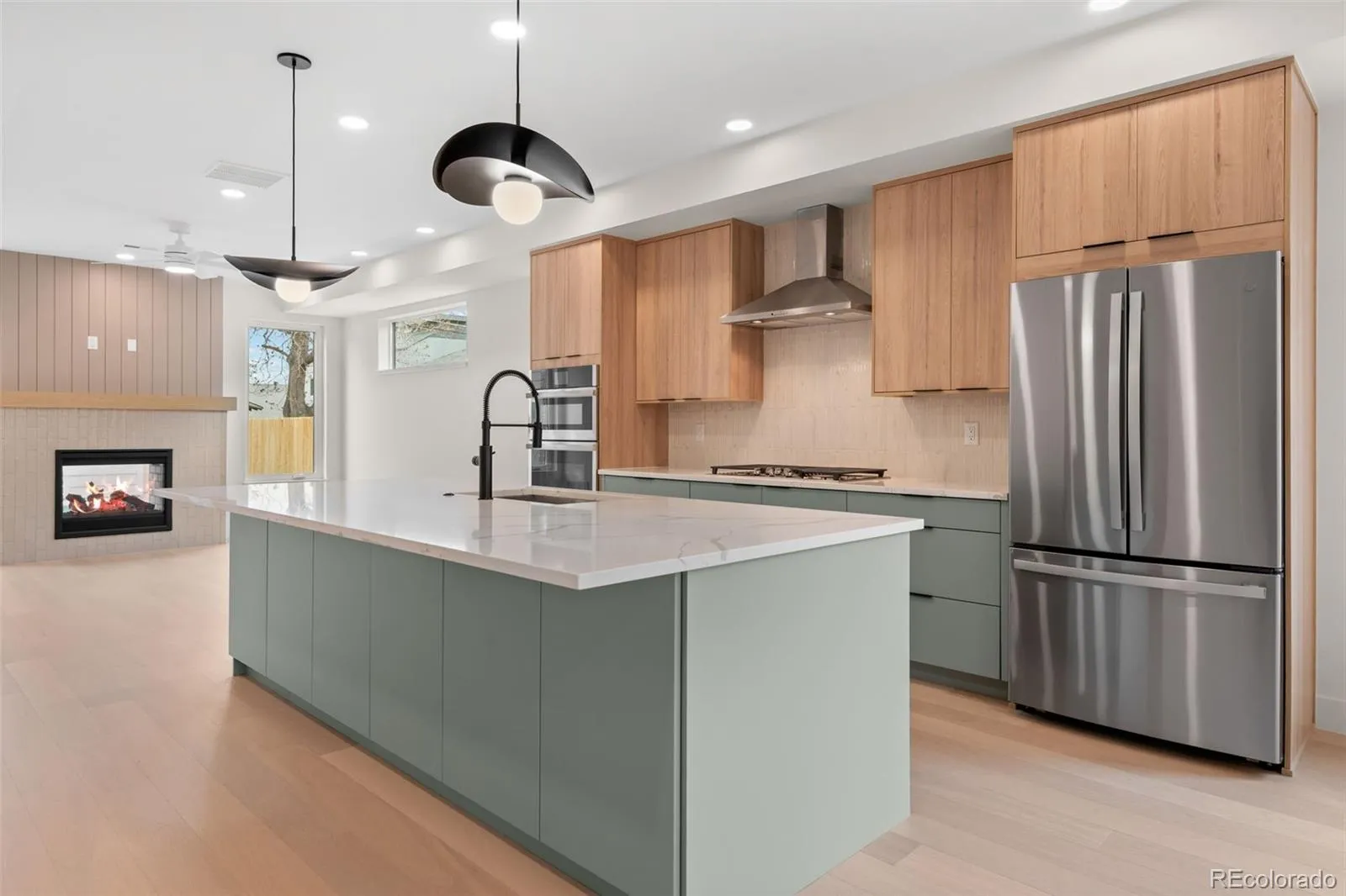 2135 South Sherman Street captures a timeless mid-century modern vibe with a fresh new construction twist, blending clean lines, warm textures, and thoughtfully curated finishes throughout. Brazilian engineered oak hardwood floors and designer lighting set the tone, while expansive windows fill the open-concept layout with natural light. The main floor study offers a stylish and functional work-from-home space, and a discreet mudroom off the rear entry creates an ideal drop zone without interrupting the home’s sleek design. The kitchen is a true showpiece, featuring GE Profile appliances, quartz countertops, Delta fixtures, and a large eat-at island with storage on both sides—perfectly balancing form and function. The living space is anchored by a striking indoor/outdoor fireplace, enhancing the seamless indoor-outdoor flow and mid-mod aesthetic. Upstairs, the second level hosts a spacious and serene primary suite with a spa-inspired bathroom, complete with medicine cabinet mirrors for added storage, a two-sided linen closet, a large walk-in shower with a quartz bench seat and niche, and a custom walk-in closet. Two additional well-sized bedrooms are filled with natural light and share a beautifully finished full bath with luxury tile. The third-floor loft offers a versatile retreat ideal for entertaining or relaxing, complete with rooftop access to a west-facing Trex deck—perfect for enjoying Colorado sunsets. Outside, the private backyard features new sod, a sprinkler system, and a two-way fireplace for year-round enjoyment, while the two-car detached garage completes this thoughtfully designed, design-forward home. Check out the virtual tour here: https://listings.creativeedgemedia.com/sites/elvwynvw/unbranded