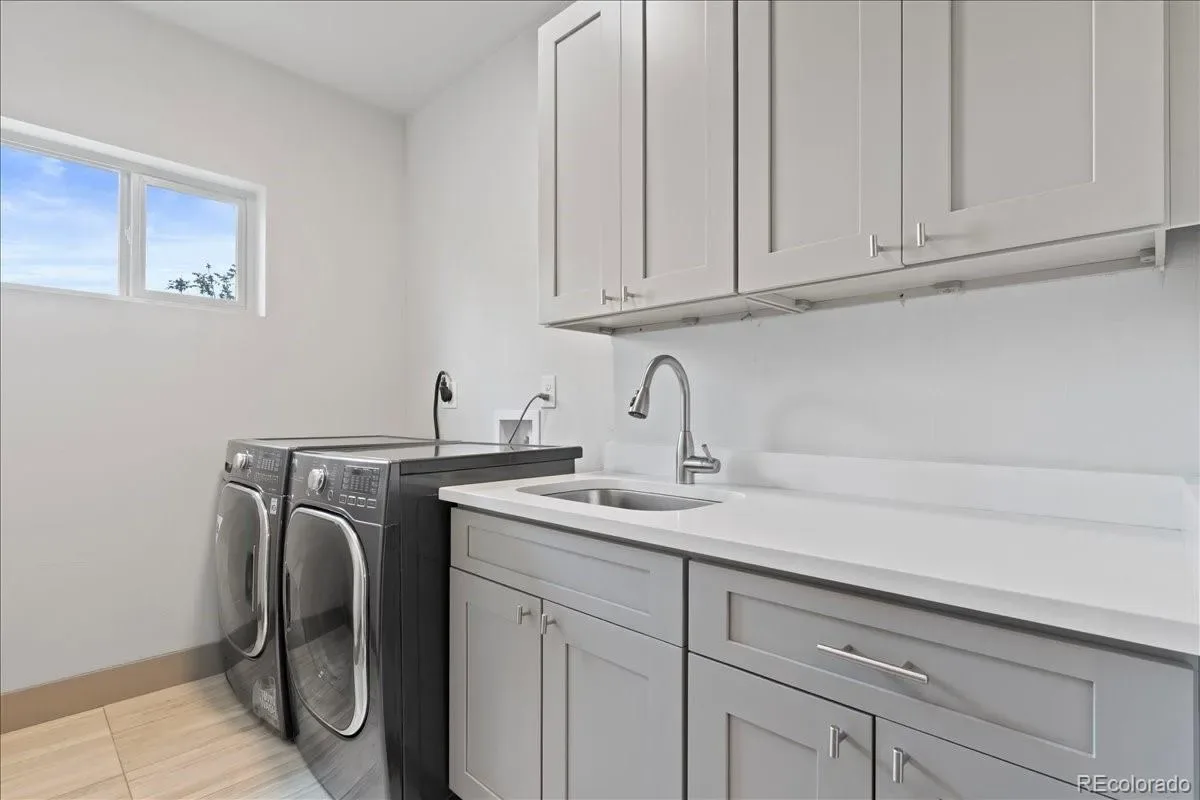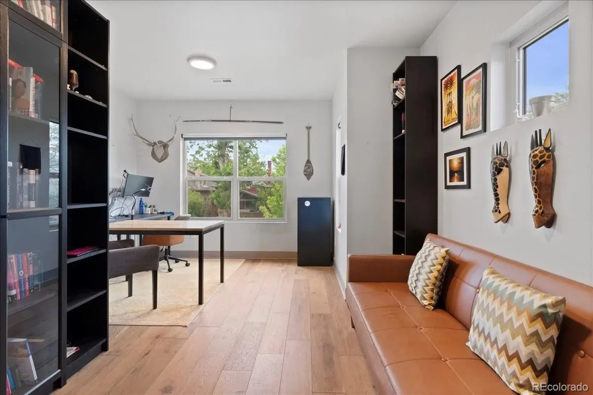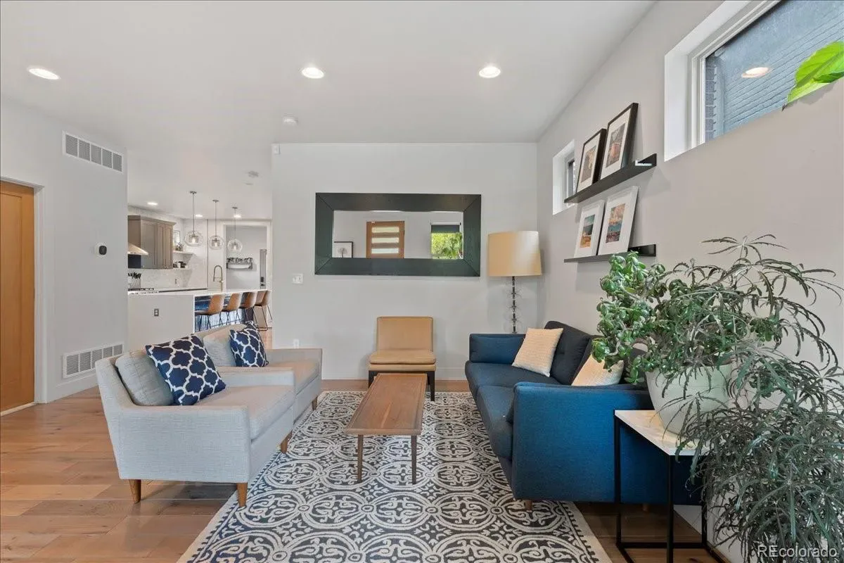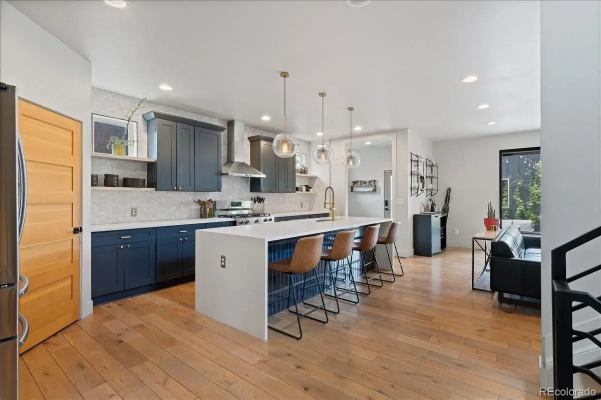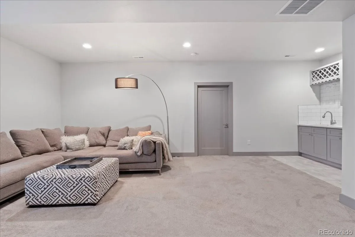 Located in one of Denver’s most picturesque and walkable neighborhoods, this stylish 4,000+ square foot, recently-built home offers the perfect blend of contemporary luxury with timeless character. You are greeted by a profesionally-landscaped/fenced yard and a large front porch with classic porch swing. The main floor balances open-concept space living with distinct rooms, ideal for everything from formal entertaining to casual gatherings. There is a cozy sitting room, dining room with antique-mirrored bar and a large informal family room adjacent to the dreamy kitchen which is anchored by a massive island. Kitchen features includes a walk-in pantry and 36-inch range. The family room opens to the back patio via panoramic door for true indoor-outdoor living. The mud room is ideal for coming in from the oversized two-car garage which is equipped with an electric car charger. The back yard has been custom-designed with dedicated spaces for al fresco dining, fireside lounging, watching outdoor movies or gardening. Upstairs, the luxurious primary suite is a true retreat, offering a seating area with gas fireplace, vaulted ceilings, a massive walk-in closet, large bathroom with soaking tub and separate water closet. Two additional bedrooms, hall bath, and large laundry room with sink complete the upper level. The finished basement goes beyond expectations with tall ceilings, two more bedrooms with egress, bathroom, storage and a family room with a bar. The solar system saves big money on electric bills while two HVAC systems keep the home comfortable year-round. This location cannot be beat,-just blocks to the bars and restaurants of Five Points and short walk to Rino, Downtown, Uptown.