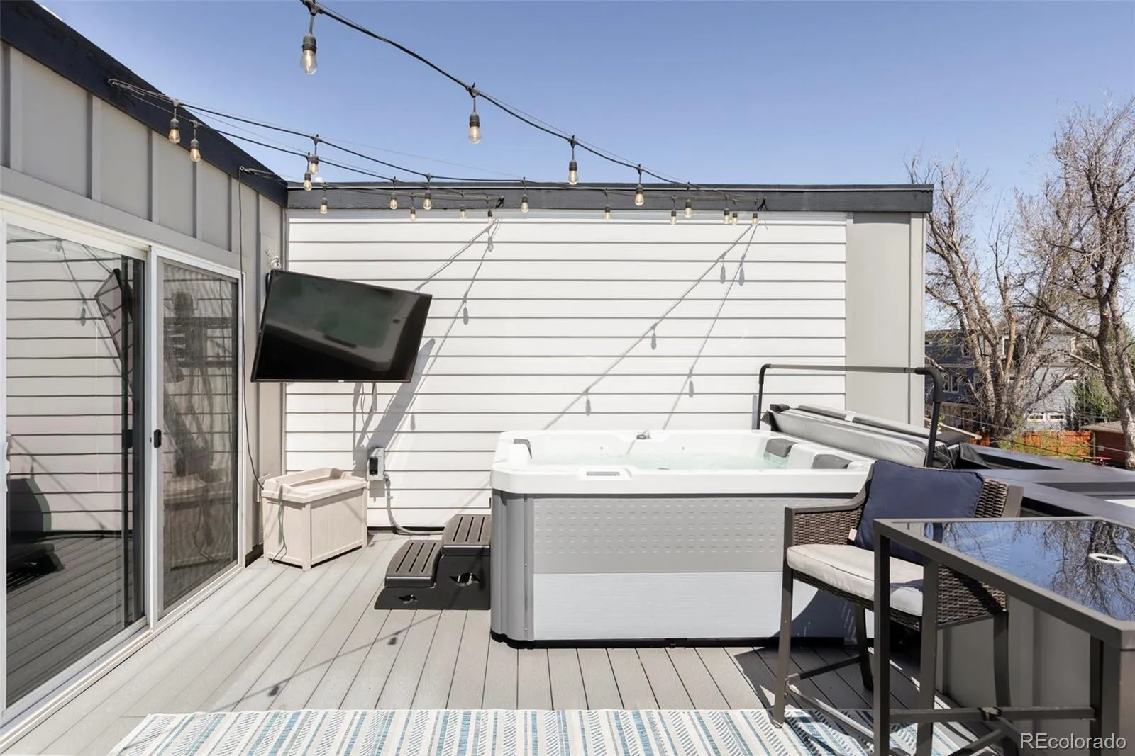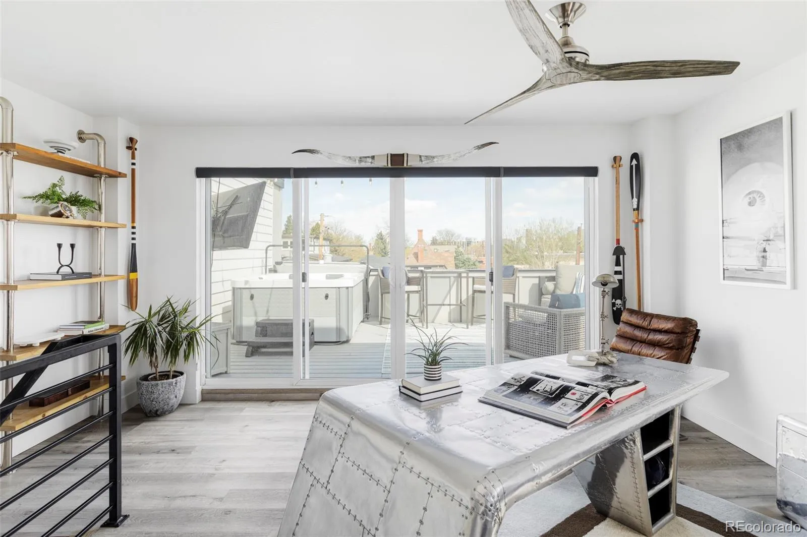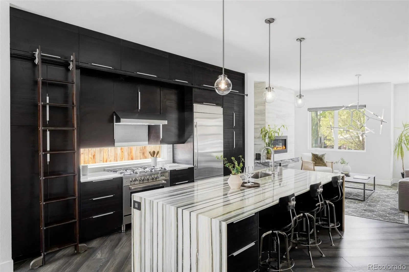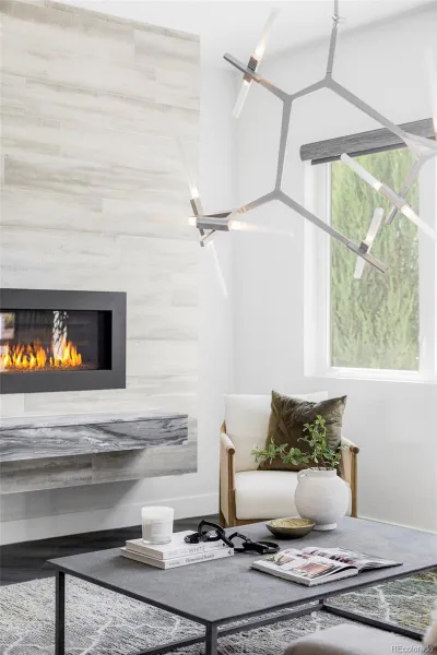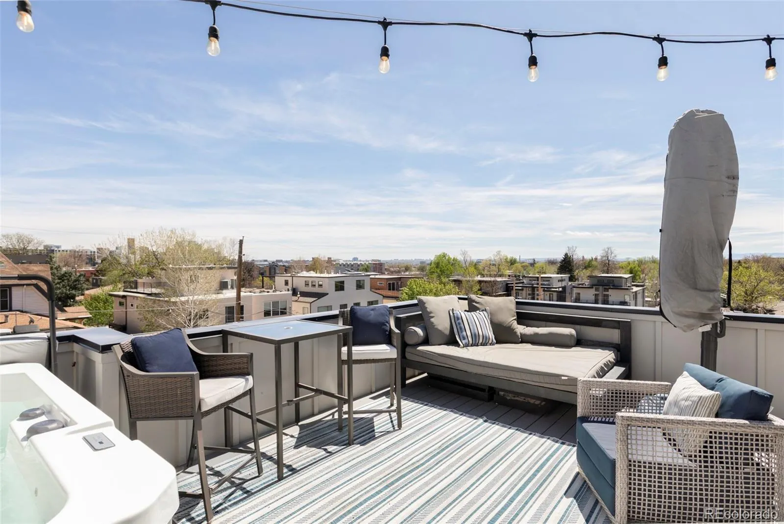 Located in one of Denver’s most popular neighborhoods, this stunning urban contemporary home seamlessly blends modern design with exceptional functionality, offering four spacious bedrooms and five beautifully appointed bathrooms. The thoughtfully designed main level is ideal for both entertaining and everyday living, featuring inviting living and family rooms—each with its own fireplace—flowing effortlessly to a private backyard patio, perfect for indoor-outdoor living. The open-concept layout creates a welcoming atmosphere, highlighted by a generous dining area and a convenient breakfast bar that anchors the heart of the home. Upstairs, the luxurious primary suite serves as a true retreat, complete with dual walk-in closets and a spa-inspired five-piece bath. Secondary bedroom with adjoining bathroom for kids or guests. The third-floor loft adds incredible versatility, featuring a sleek wet bar and access to a rooftop deck—an ideal setting to unwind in the brand-new hot tub while taking in sweeping city and mountain views. The finished basement further expands the home’s livability with a spacious family room, an additional wet bar, a bedroom, and a bathroom—perfect for guests or multi-generational living. Just a short distance to Sloan’s Lake and very close to many shops & restaurants. Some of Denver’s finest dining options are just a few blocks away. Offering a refined blend of sophistication, comfort, and elevated urban style, this home delivers an exceptional living experience!