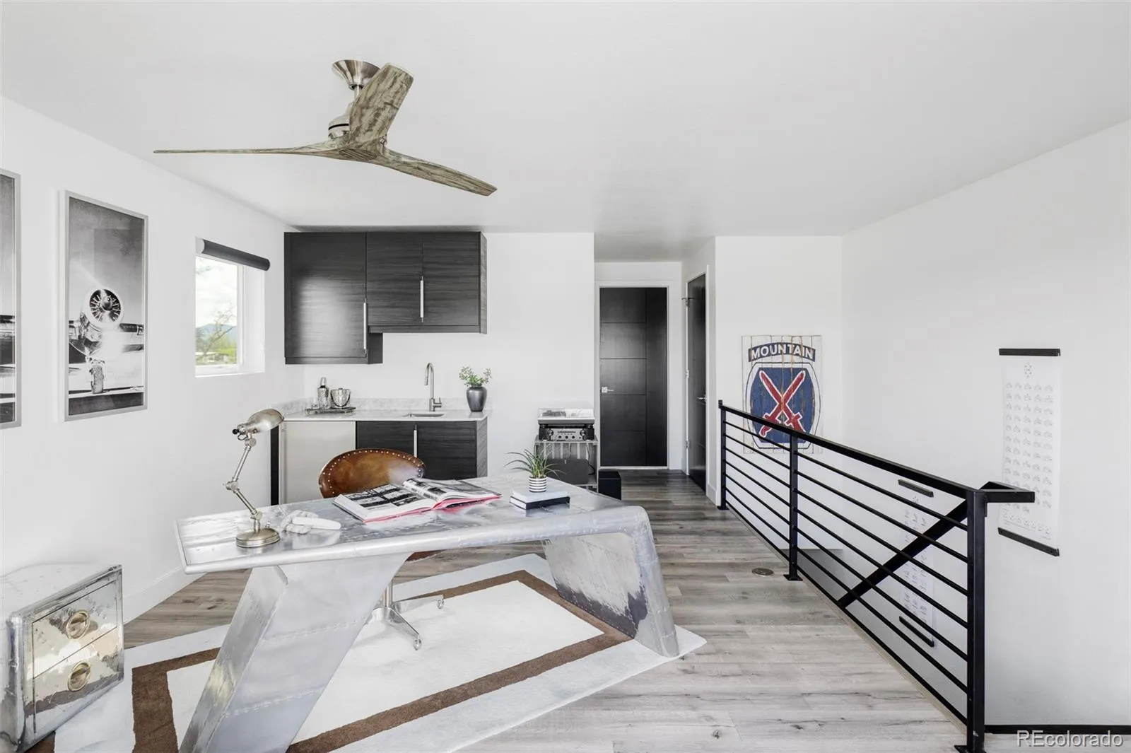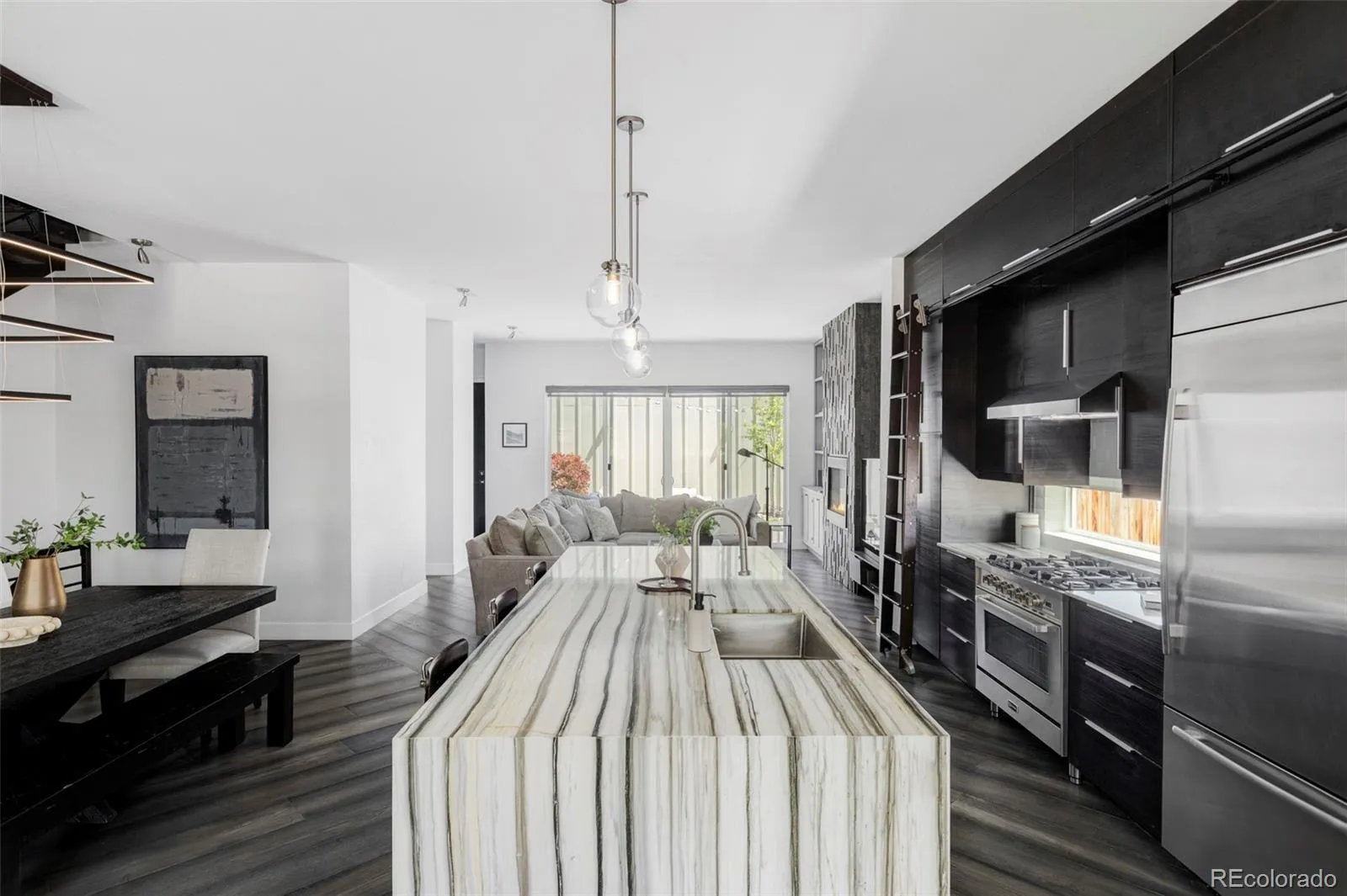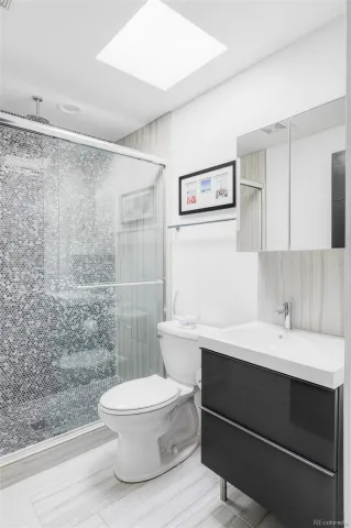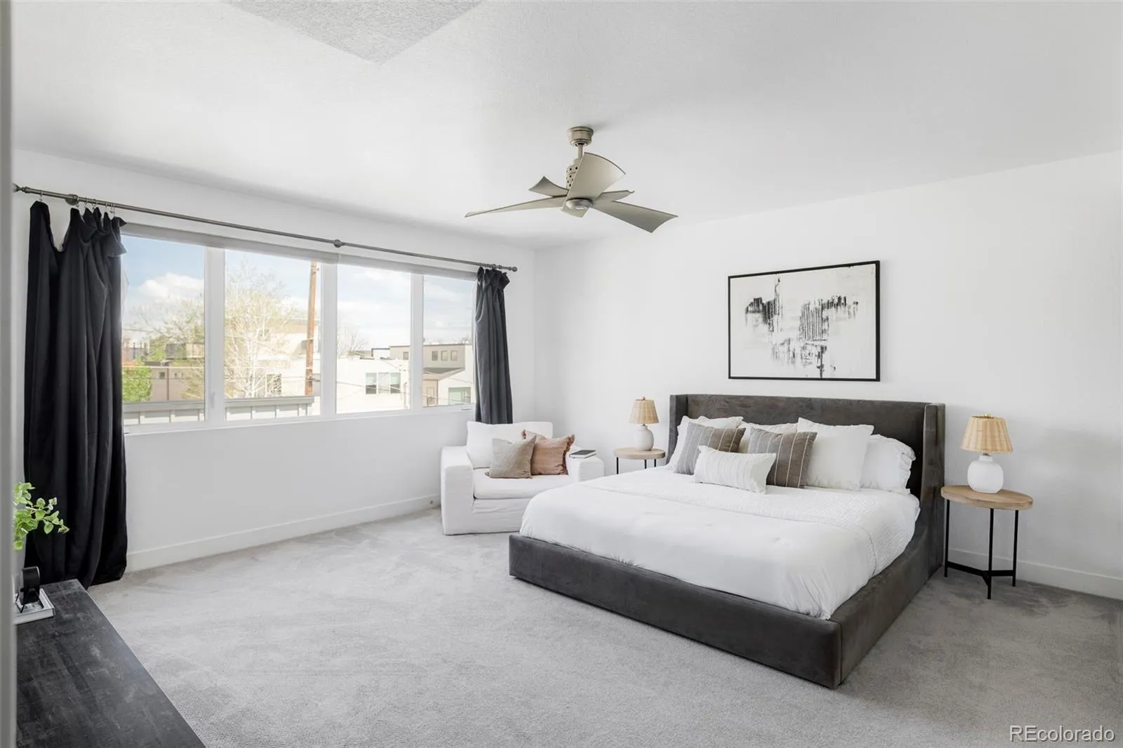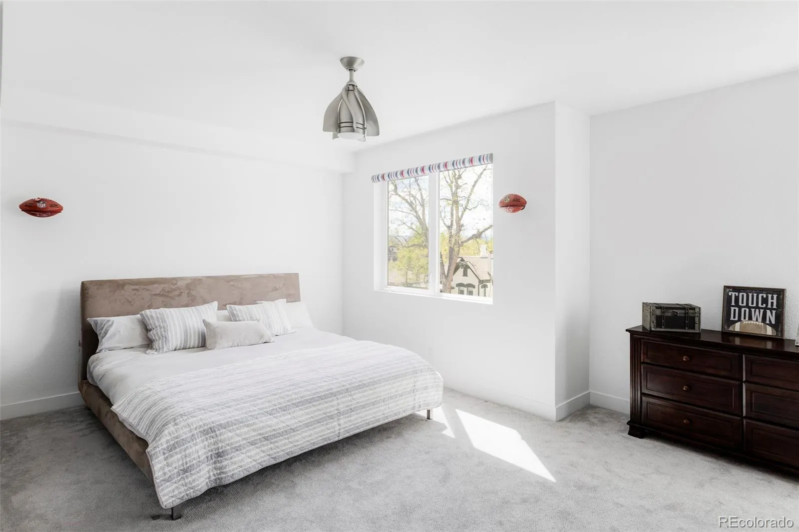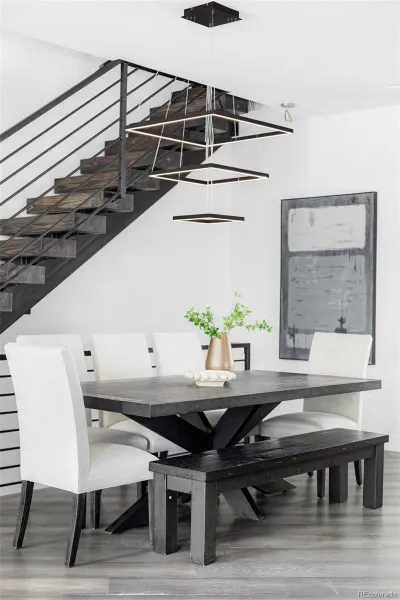 Located in one of Denver’s most popular neighborhoods, this stunning urban contemporary home seamlessly blends modern design with exceptional functionality, offering four spacious bedrooms and five beautifully appointed bathrooms. The thoughtfully designed main level is ideal for both entertaining and everyday living, featuring inviting living and family rooms—each with its own fireplace—flowing effortlessly to a private backyard patio, perfect for indoor-outdoor living. The open-concept layout creates a welcoming atmosphere, highlighted by a generous dining area and a convenient breakfast bar that anchors the heart of the home. Upstairs, the luxurious primary suite serves as a true retreat, complete with dual walk-in closets and a spa-inspired five-piece bath. Secondary bedroom with adjoining bathroom for kids or guests. The third-floor loft adds incredible versatility, featuring a sleek wet bar and access to a rooftop deck—an ideal setting to unwind in the brand-new hot tub while taking in sweeping city and mountain views. The finished basement further expands the home’s livability with a spacious family room, an additional wet bar, a bedroom, and a bathroom—perfect for guests or multi-generational living. Just a short distance to Sloan’s Lake and very close to many shops & restaurants. Some of Denver’s finest dining options are just a few blocks away. Offering a refined blend of sophistication, comfort, and elevated urban style, this home delivers an exceptional living experience!