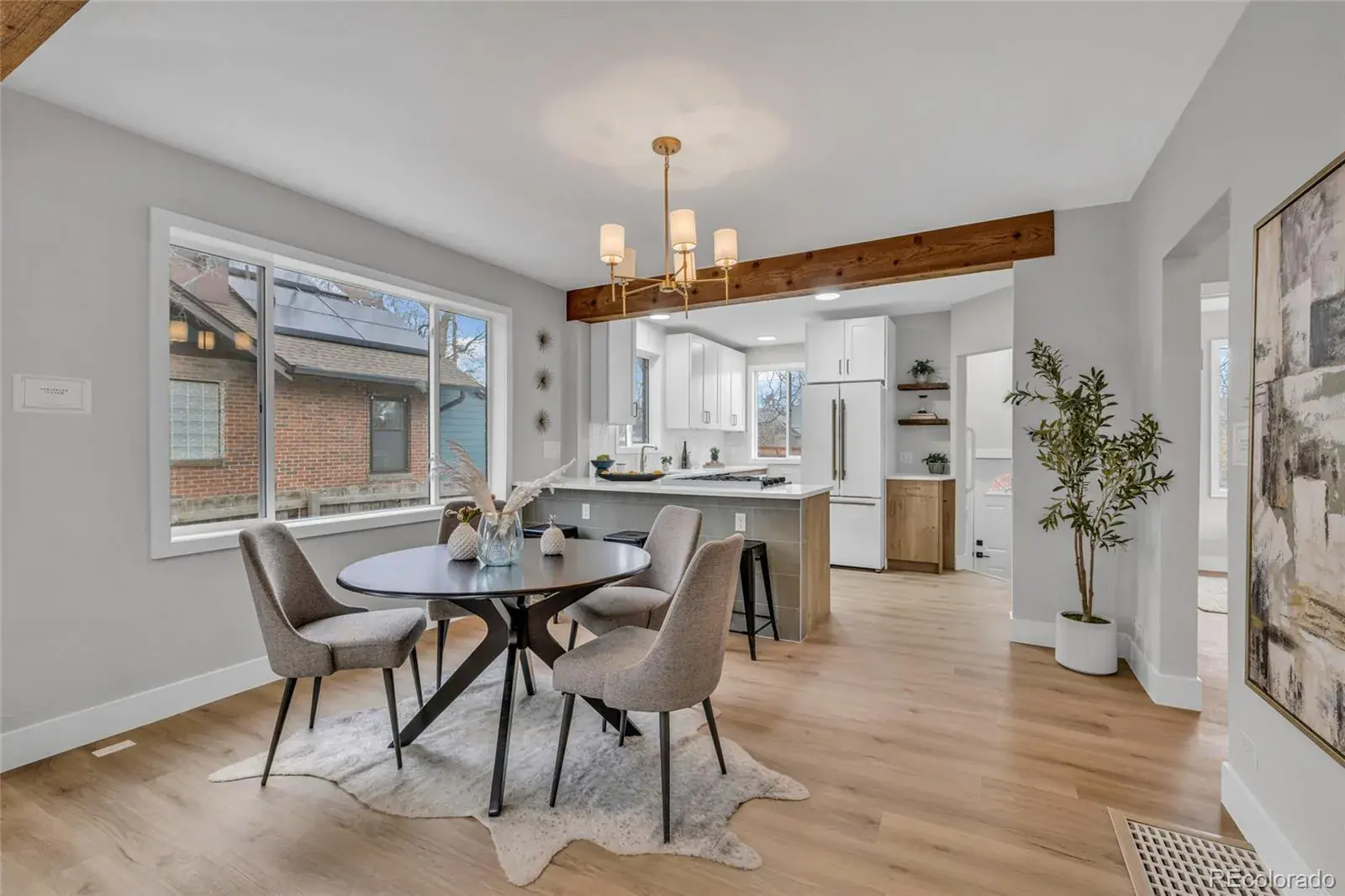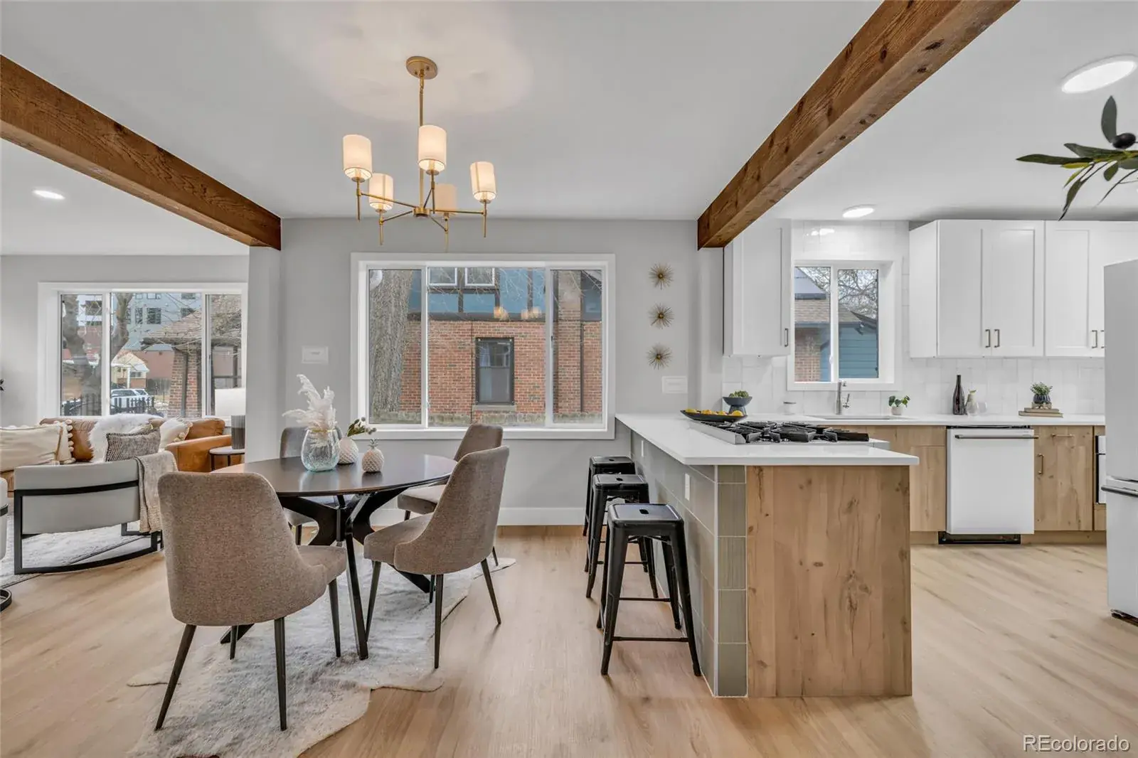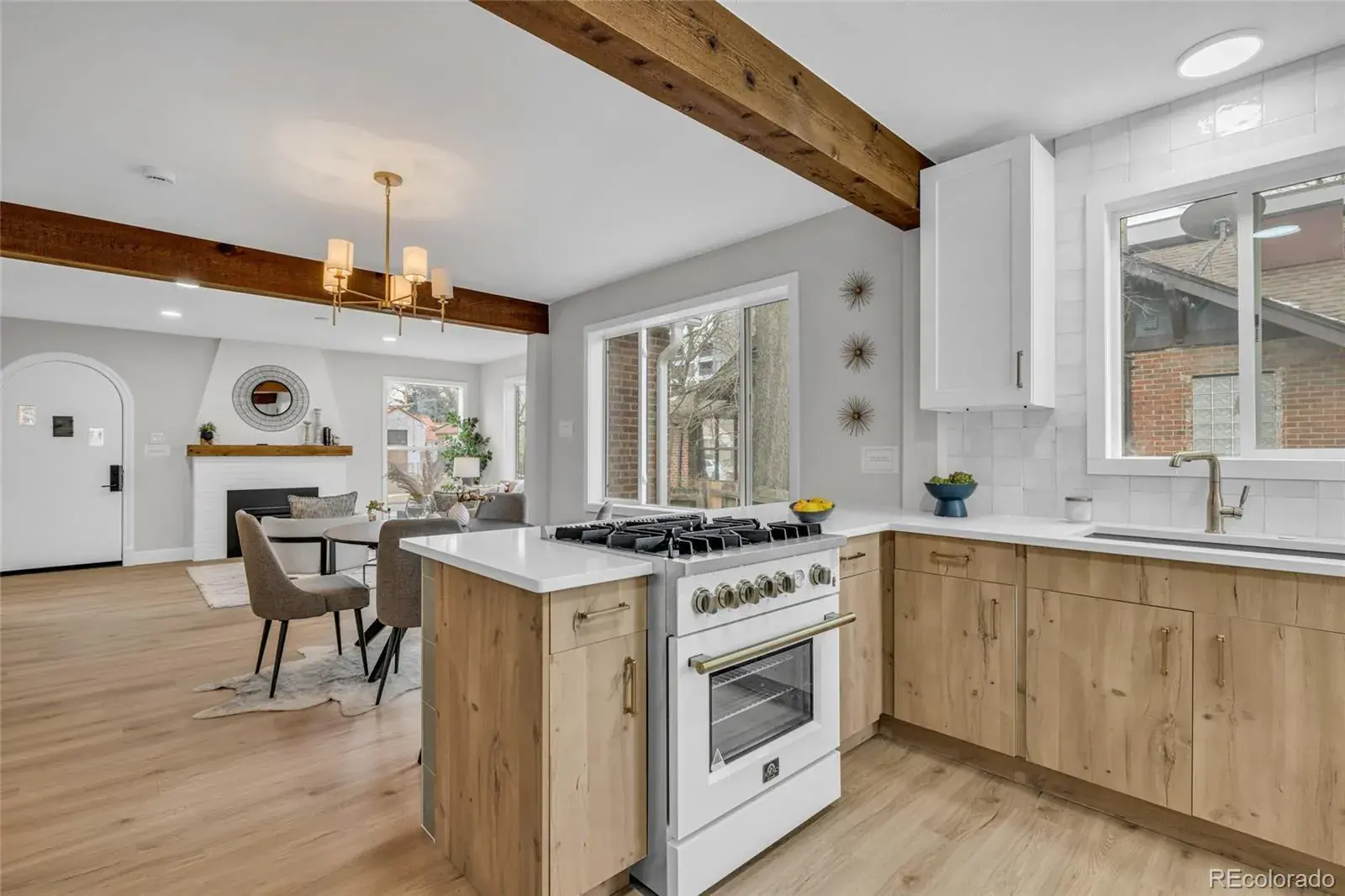 Welcome home to this fully remodeled storybook Tudor home, in the desirable South Park Hill neighborhood. This beautiful home sits on a charming, tree-lined street just steps from local restaurants, parks, museums, schools, and neighborhood favorites. As you walk through the front door, a welcoming fireplace and custom wood beams set the tone for the spacious living room, which flows seamlessly into an open dining area. The beautifully remodeled kitchen includes custom soft close cabinets, new quartz countertops and stunning luxury appliances.