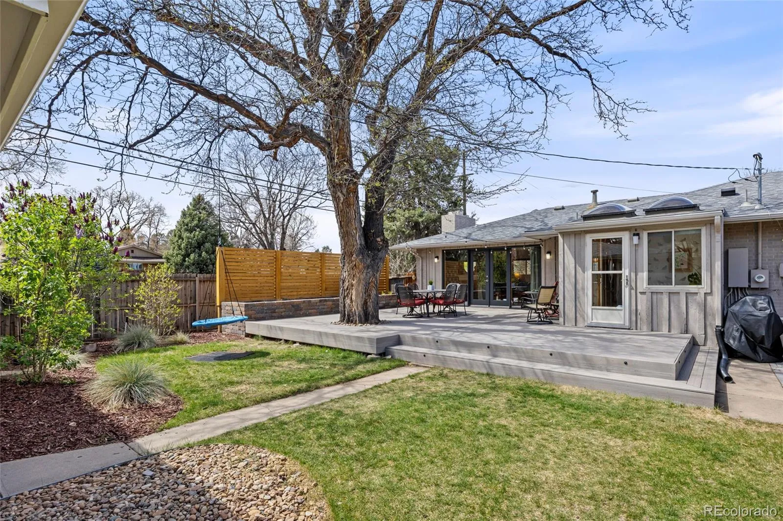 This home is a must see! A truly rare opportunity to own a mid-century ranch set on a private, quarter-acre lot in one of the area’s most coveted neighborhoods—where opportunities like this are limited. This turnkey residence blends timeless character with today’s modern-day comforts—thoughtfully updated to preserve its charm while offering the conveniences of contemporary living. Every detail has been curated for comfort, functionality, & everyday enjoyment. With nearly 300 additional main floor square feet compared to similar models, the home offers enhanced livability and flexibility throughout. Beautifully appointed with solid hardwood floors, wool carpet in both the upstairs bedrooms and basement, and double-pane windows with tamper protection. The gourmet kitchen anchors the home, complemented by three main-floor bedrooms, including a spacious primary suite with a walk-in closet. The inviting, fully finished basement features a comfortable living area, non-conforming bedroom (or office), and guest suite. An oversized laundry room adds everyday convenience with ample storage and generous counter space. The garage is generously sized, easily accommodating two vehicles while still offering additional room for storage or workspace, and features built-in cabinetry. Major system upgrades provide peace of mind, including new A/C, and a reconfigured furnace for improved efficiency and performance. Designed for seamless indoor-outdoor living, the living room, kitchen, and mudroom open to the backyard and an expansive raised Trex-style patio with privacy screen—offering exceptional space to entertain, relax, or further personalize the outdoor setting. The yard also features raised garden beds, perfect for those who enjoy gardening or cultivating their own outdoor retreat. All of this, just a 5 minute walk to the High Line Canal Trail or the Happy Canyon Shopping Center. A home with true heart, in a neighborhood that consistently holds strong demand.