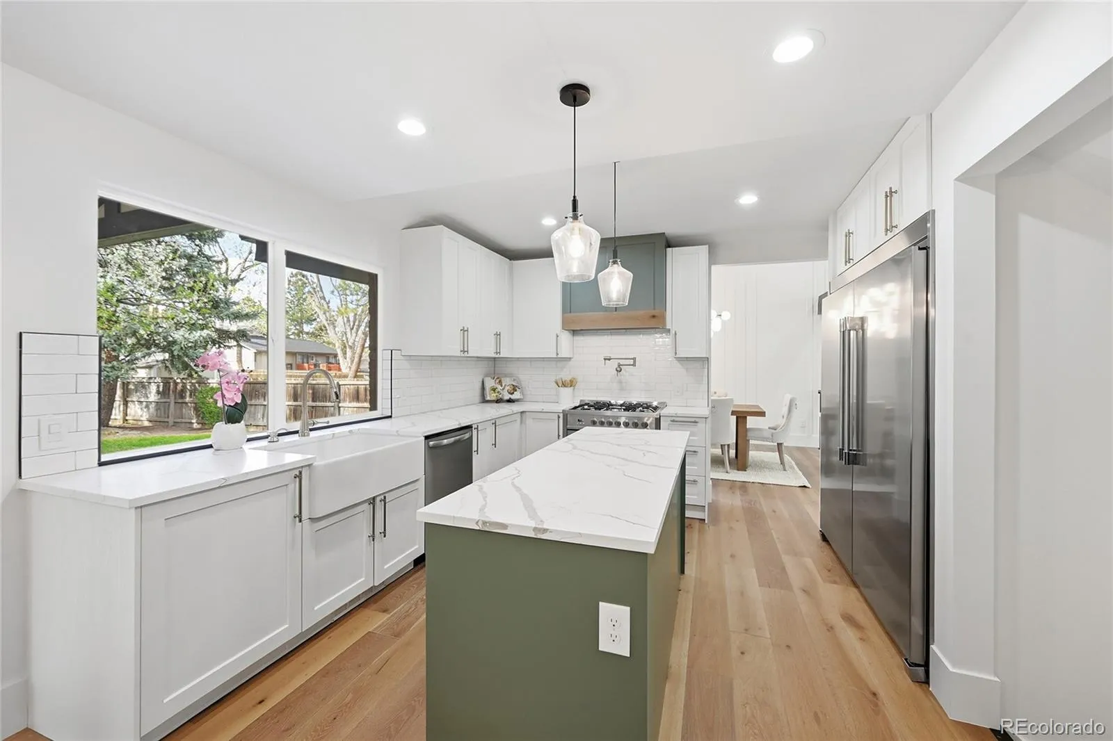 The kitchen is thoughtfully designed for both daily living and entertaining, with a functional layout that connects naturally to the rest of the home. Nearby, a well proportioned dining area offers an elegant setting for gathering.