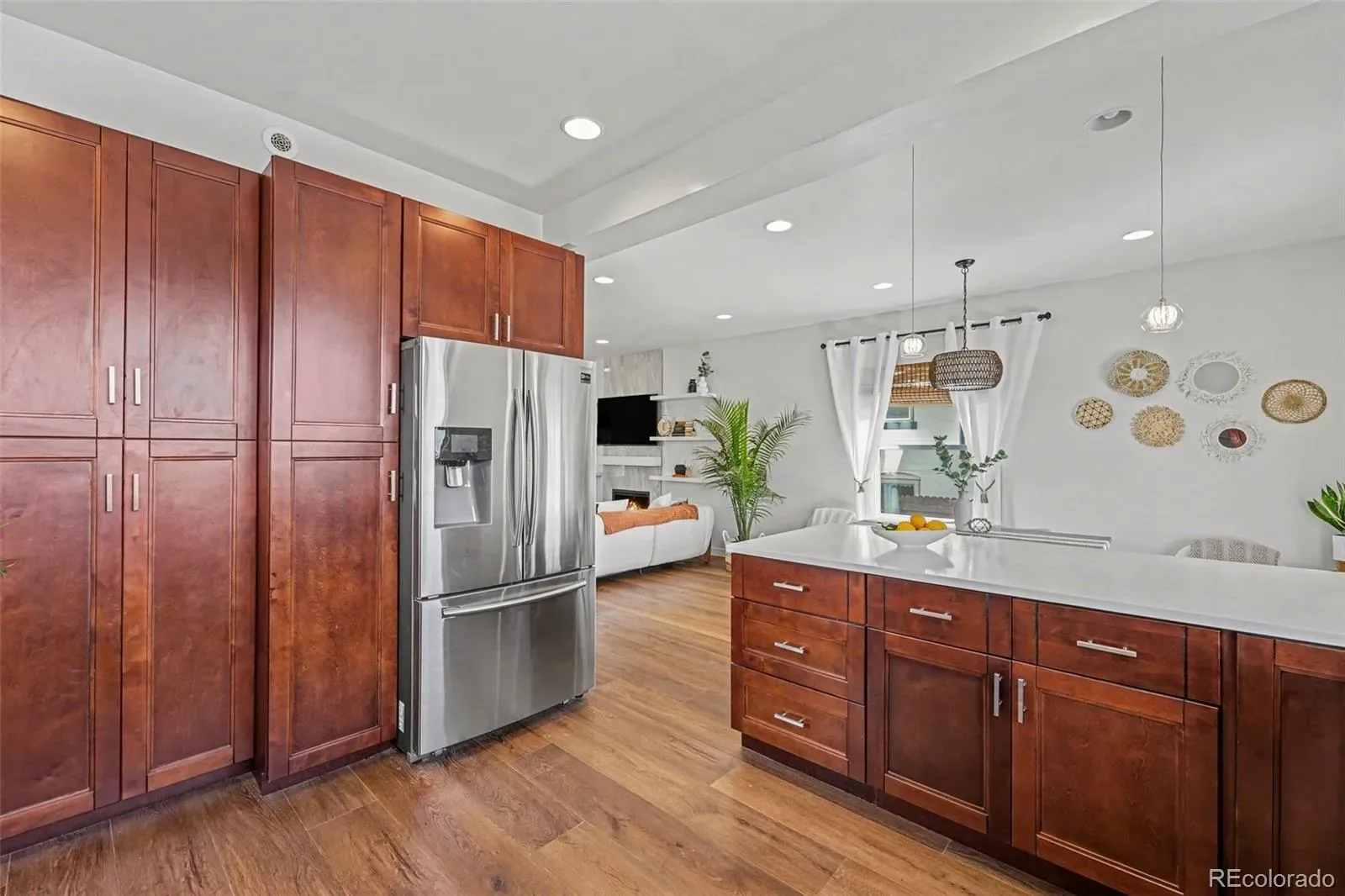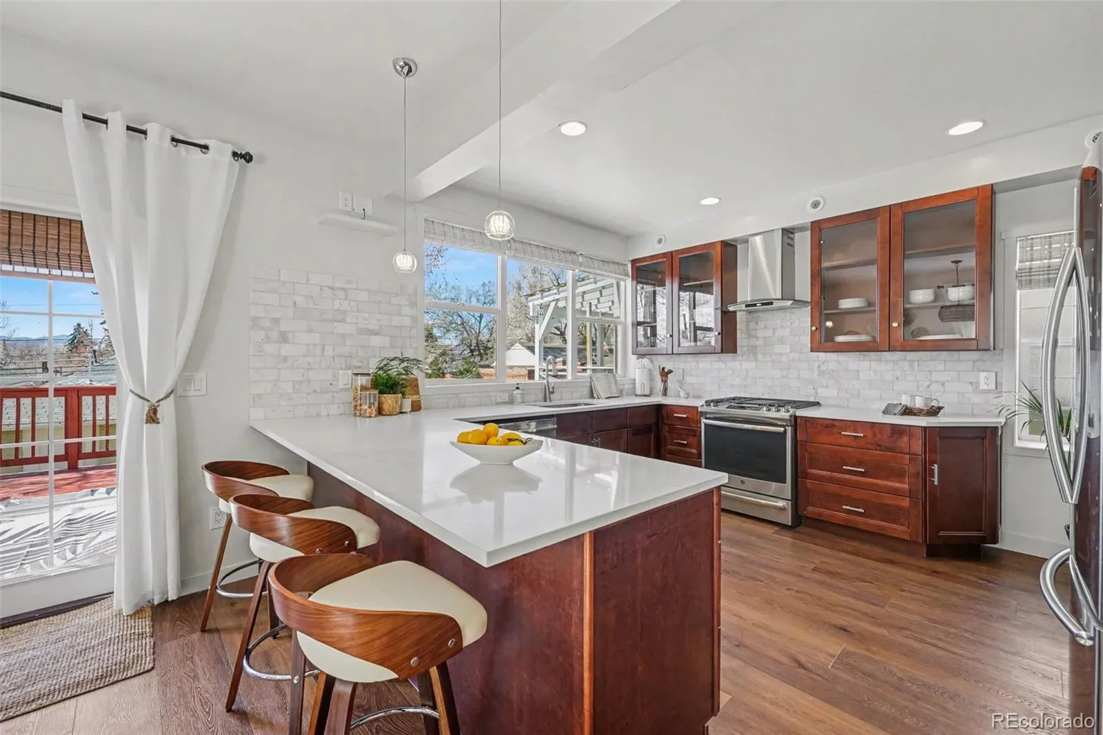 Designed with both comfort and entertaining in mind, the open-concept layout flows effortlessly from the dining area into a beautifully updated kitchen featuring quartz countertops, stainless steel appliances, a gas range/oven, sleek wood cabinetry, and engineered hardwood floors throughout. A stylish ½ bath completes the main level. Enjoy year-round comfort with radiant heated floors powered by a high-efficiency boiler, dual A/C systems with DX cooling, and zoned thermostats for personalized comfort. A brand-new 2026 roof with impact-resistant shingles and double paned windows add peace of mind.