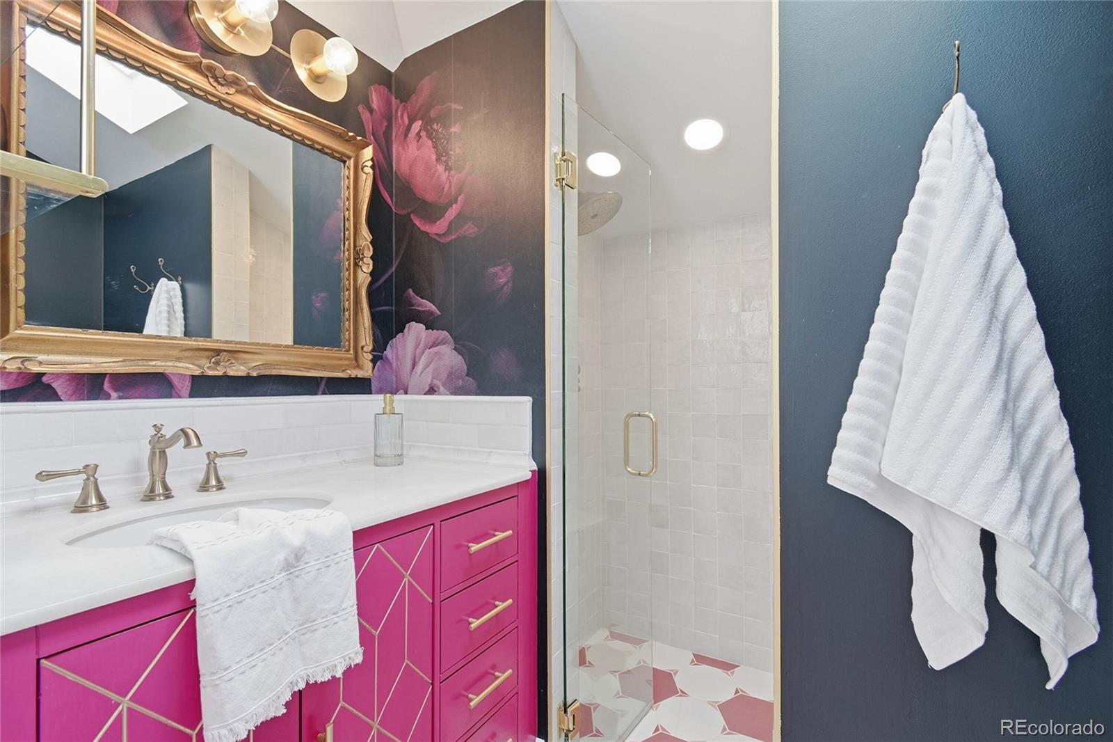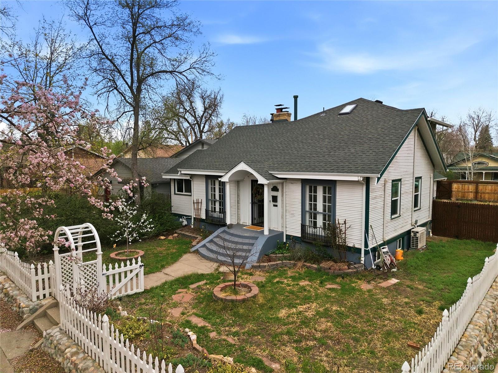 Color and character abound in this fully-renovated Platte Park cottage. The white picket-fenced yard sets a charming tone as you step inside. Enter into a bright living room with a lovely wallpaper feature, original wood-burning fireplace and built-in shelves flanking the dining room entrance. The fully-remodeled kitchen is bright and beautiful with stunning green cabinetry and top-of-the-line white GE Cafe appliances, quartz countertops, stylish tile backsplash and brilliant art deco lighting. Peek into the above-the-sink cabinet to find a cute and convenient European-inspired dish drying rack. The main floor has two bedrooms, one with a gorgeous wallpaper feature and one that doubles as an office with french doors overlooking Downing Street. Step inside a jewel-toned, fully-renovated main floor bathroom with a deep soaking tub set in an exquisite green zellige-tiled alcove – simply stunning! This is no basic renovation; everything in this home was hand-sourced and showcases either vintage or custom details such as rich paint colors, unique sinks, vintage mirrors and custom tile. Thoughtful details are sprinkled throughout and refinished, original hardwood floors add to the historic charm. The primary suite upstairs has a lovely window-seat and a breathtaking en suite 3/4 bath with a walk-in closet and extended storage area. The basement family room has a wood-burning fireplace and doubles as a dance studio with mirrors and bars. The basement bedroom is non-conforming, but is spacious and has a stylish 1/4 bath attached. There is room and a floor drain for adding a shower. The whole home has been upgraded in unseen ways as well – new PEX plumbing, radon mitigation, sump pump, minisplit ACs in the bedrooms, new main sewer line btw house/garage. The 2 car garage has an EV charger and the spacious backyard has room for anything you please. The cherry on top is the sweet backyard Finnish-style sauna. If you love color and charm this jewel-box of a home is the one!