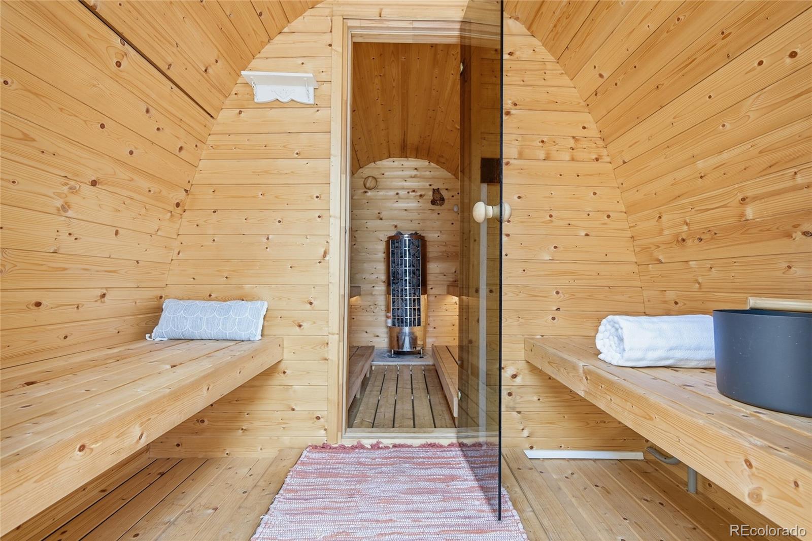 Built-in Features, Ceiling Fan(s), High Ceilings, Primary Suite, Quartz Counters, Radon Mitigation System, Sauna, Vaulted Ceiling(s), Walk-In Closet(s)