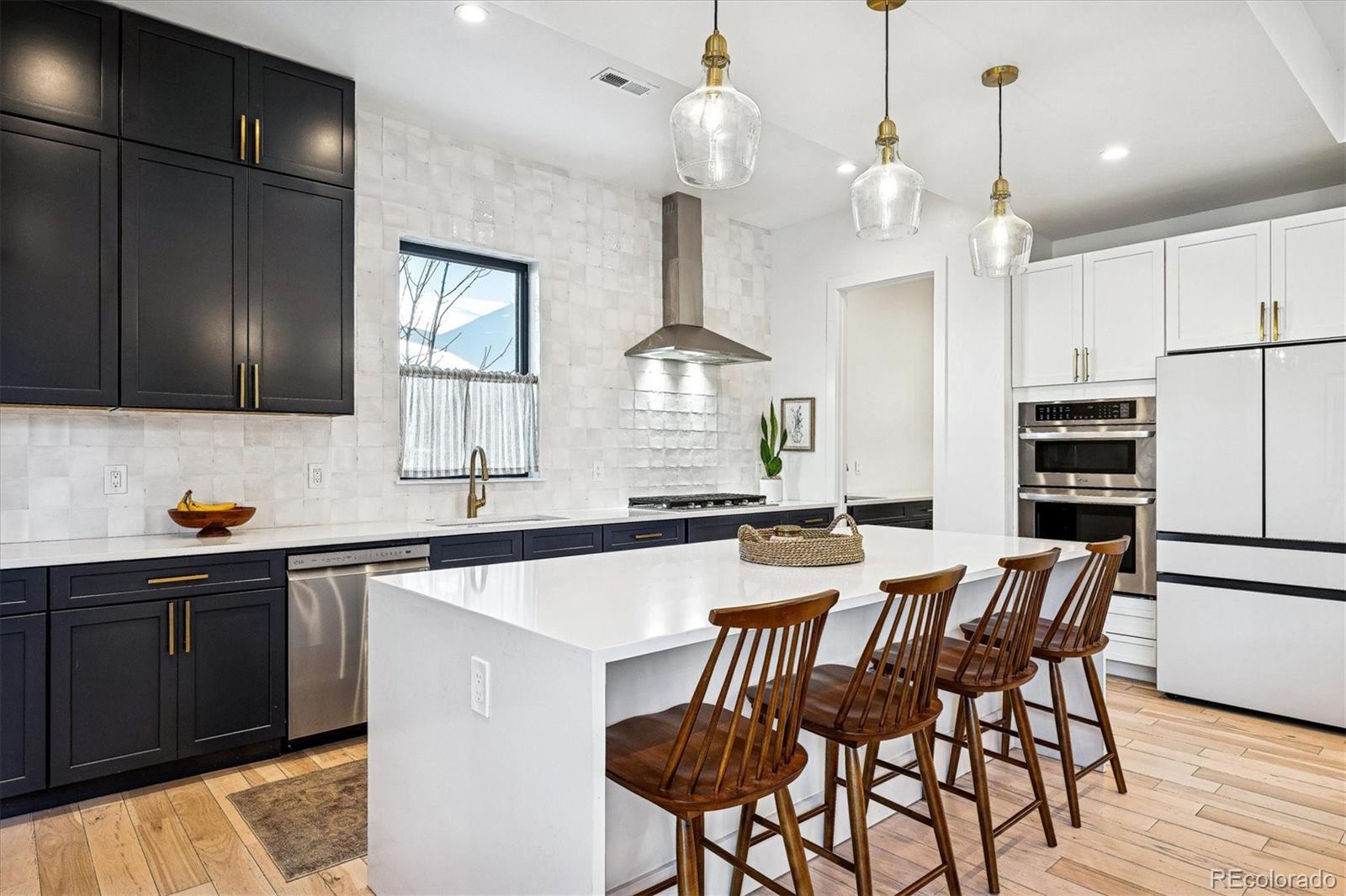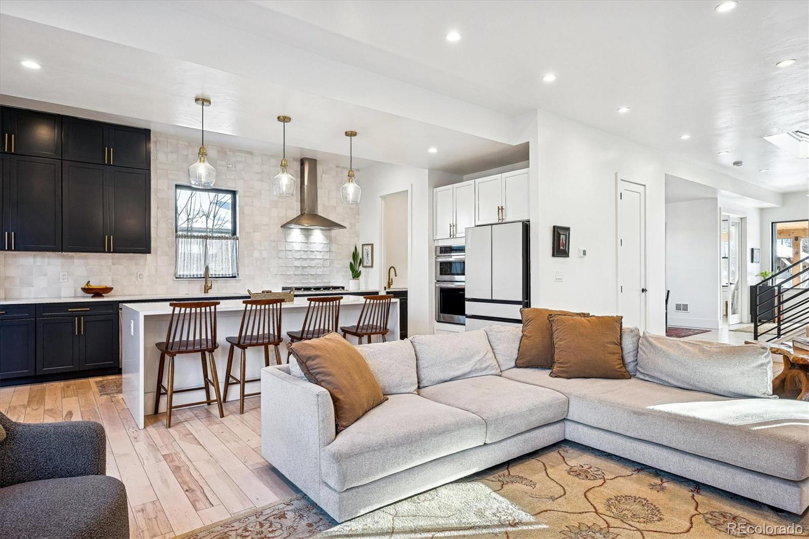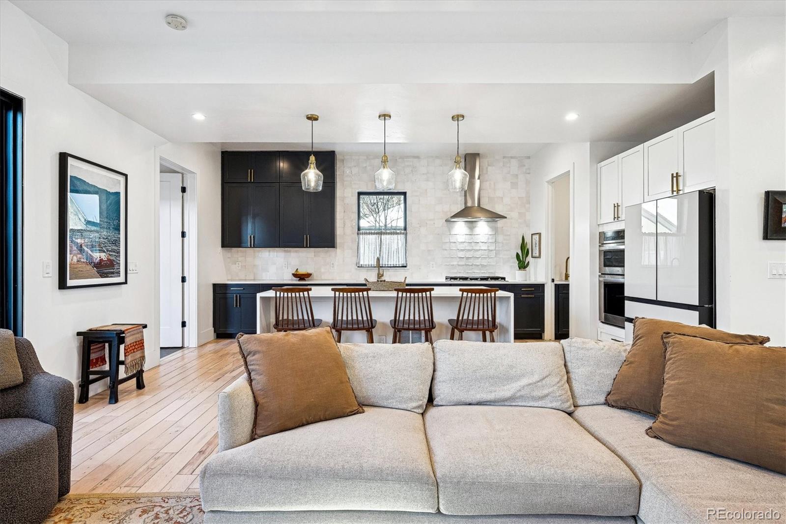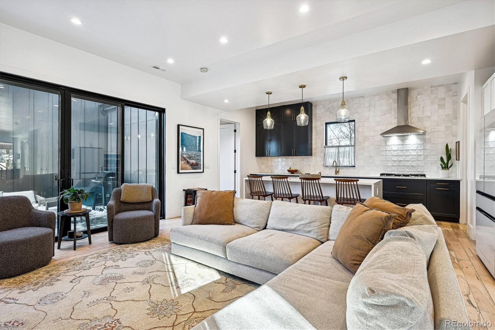 Contemporary living in highly sought-after Lower Sunnyside with true multi-generational and income opportunities. The striking black-on-black exterior and covered south-facing front porch create a bold first impression, framed by mature trees. Inside, 10′ ceilings and wide-plank hickory flooring set the tone for an inviting, modern layout. The gourmet kitchen features a waterfall island, gas range, walk-in butler’s pantry, and opens seamlessly to the dining area and living room with a gas fireplace. A main-floor study with French doors can easily serve as a fifth bedroom, while a double sliding door leads to the patio for effortless indoor-outdoor flow. One of the rare standout features is the attached 3-car garage — an exceptional find in Denver that provides ample space for vehicles, gear, and storage. Upstairs, the primary suite offers vaulted ceilings, a spa-style bath, freestanding soaking tub, oversized shower, and generous walk-in closet. Three additional bedrooms — including one with its own private en suite — all include walk-in closets. A full laundry room completes the upper level. The real value bonus is the lock-off lower level, fully furnished and designed as a private ADU with its own entrance. With 9′ ceilings, a full kitchen, family room, two bedrooms, two bathrooms, and separate laundry, it offers incredible flexibility: rent it out for passive income, host long-term guests, or enjoy a comfortable multi-generational living setup. Perfectly positioned with easy access to everywhere you want to go — just minutes to downtown Denver, a straight shot to Boulder, and quick connectivity to I-70 for mountain getaways — all while being a short walk or bike ride to LoHi, the Highlands, and Tennyson Street for dining, coffee, shopping, and everyday convenience.