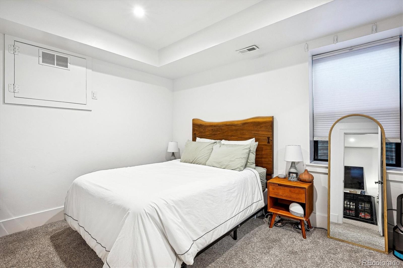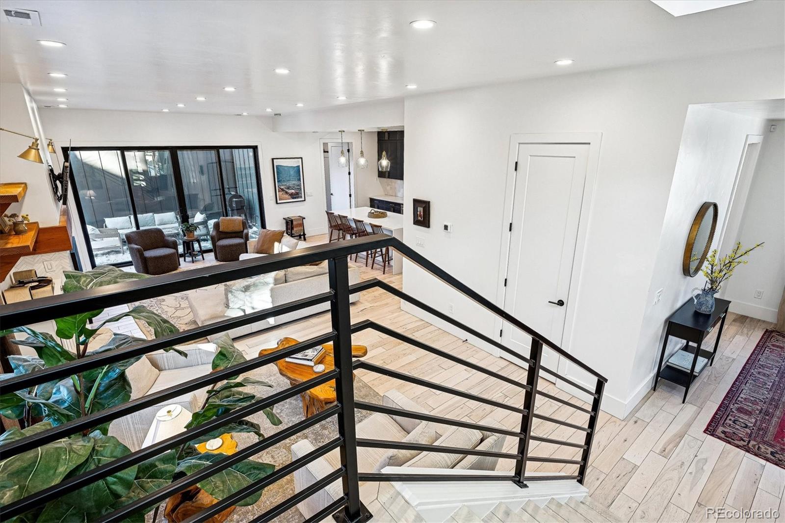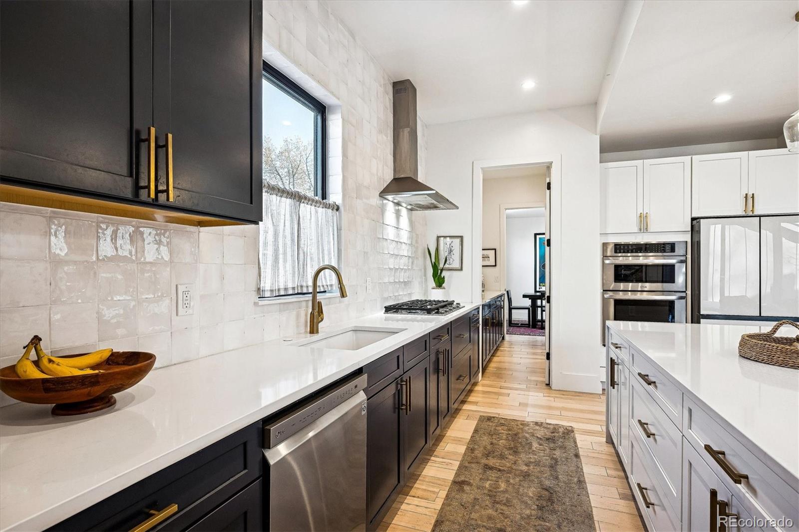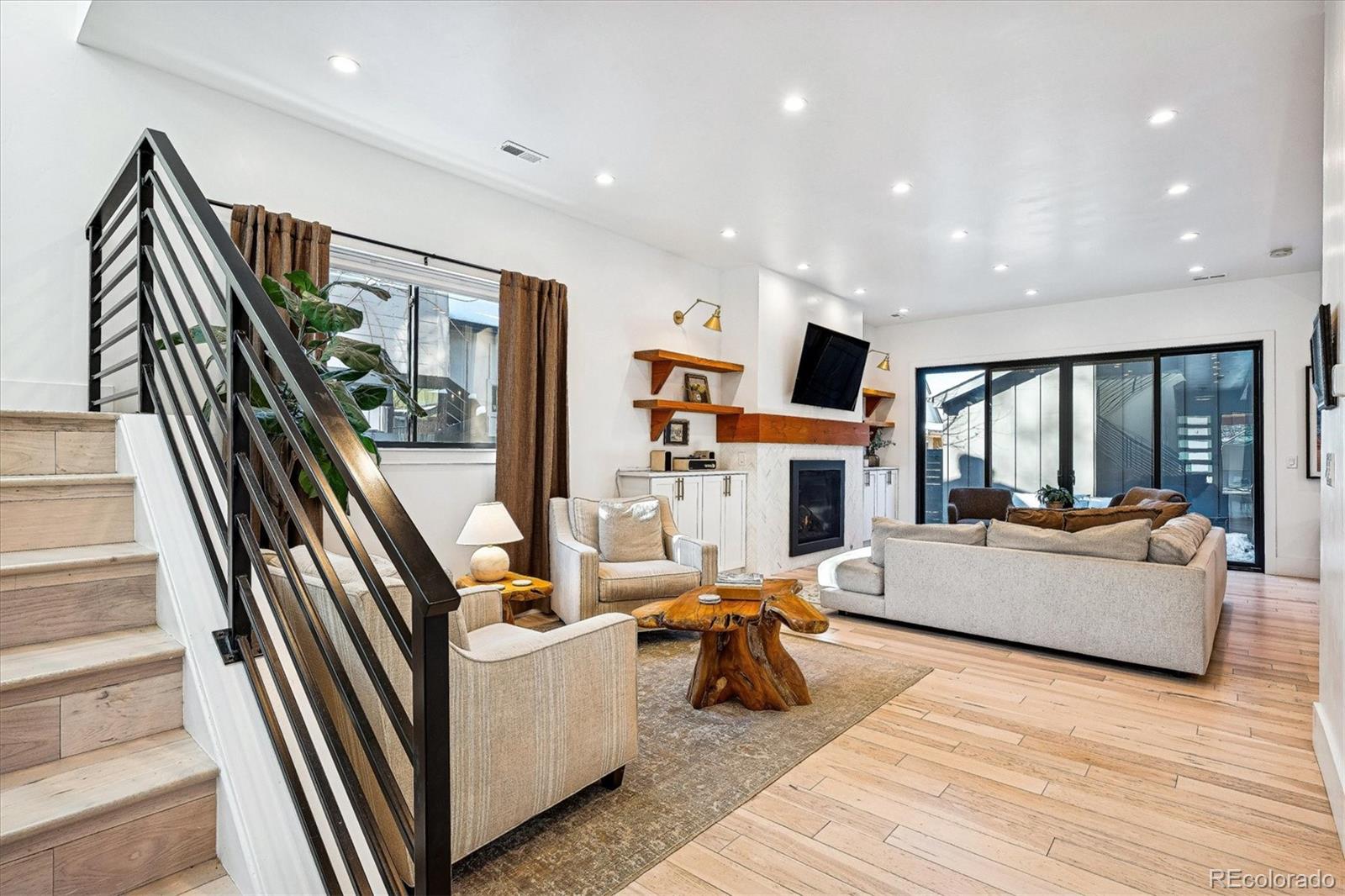 Contemporary living in highly sought-after Lower Sunnyside with true multi-generational and income opportunities. The striking black-on-black exterior and covered south-facing front porch create a bold first impression, framed by mature trees. Inside, 10′ ceilings and wide-plank hickory flooring set the tone for an inviting, modern layout. The gourmet kitchen features a waterfall island, gas range, walk-in butler’s pantry, and opens seamlessly to the dining area and living room with a gas fireplace. A main-floor study with French doors can easily serve as a fifth bedroom, while a double sliding door leads to the patio for effortless indoor-outdoor flow. One of the rare standout features is the attached 3-car garage — an exceptional find in Denver that provides ample space for vehicles, gear, and storage. Upstairs, the primary suite offers vaulted ceilings, a spa-style bath, freestanding soaking tub, oversized shower, and generous walk-in closet. Three additional bedrooms — including one with its own private en suite — all include walk-in closets. A full laundry room completes the upper level. The real value bonus is the lock-off lower level, fully furnished and designed as a private ADU with its own entrance. With 9′ ceilings, a full kitchen, family room, two bedrooms, two bathrooms, and separate laundry, it offers incredible flexibility: rent it out for passive income, host long-term guests, or enjoy a comfortable multi-generational living setup. Perfectly positioned with easy access to everywhere you want to go — just minutes to downtown Denver, a straight shot to Boulder, and quick connectivity to I-70 for mountain getaways — all while being a short walk or bike ride to LoHi, the Highlands, and Tennyson Street for dining, coffee, shopping, and everyday convenience.