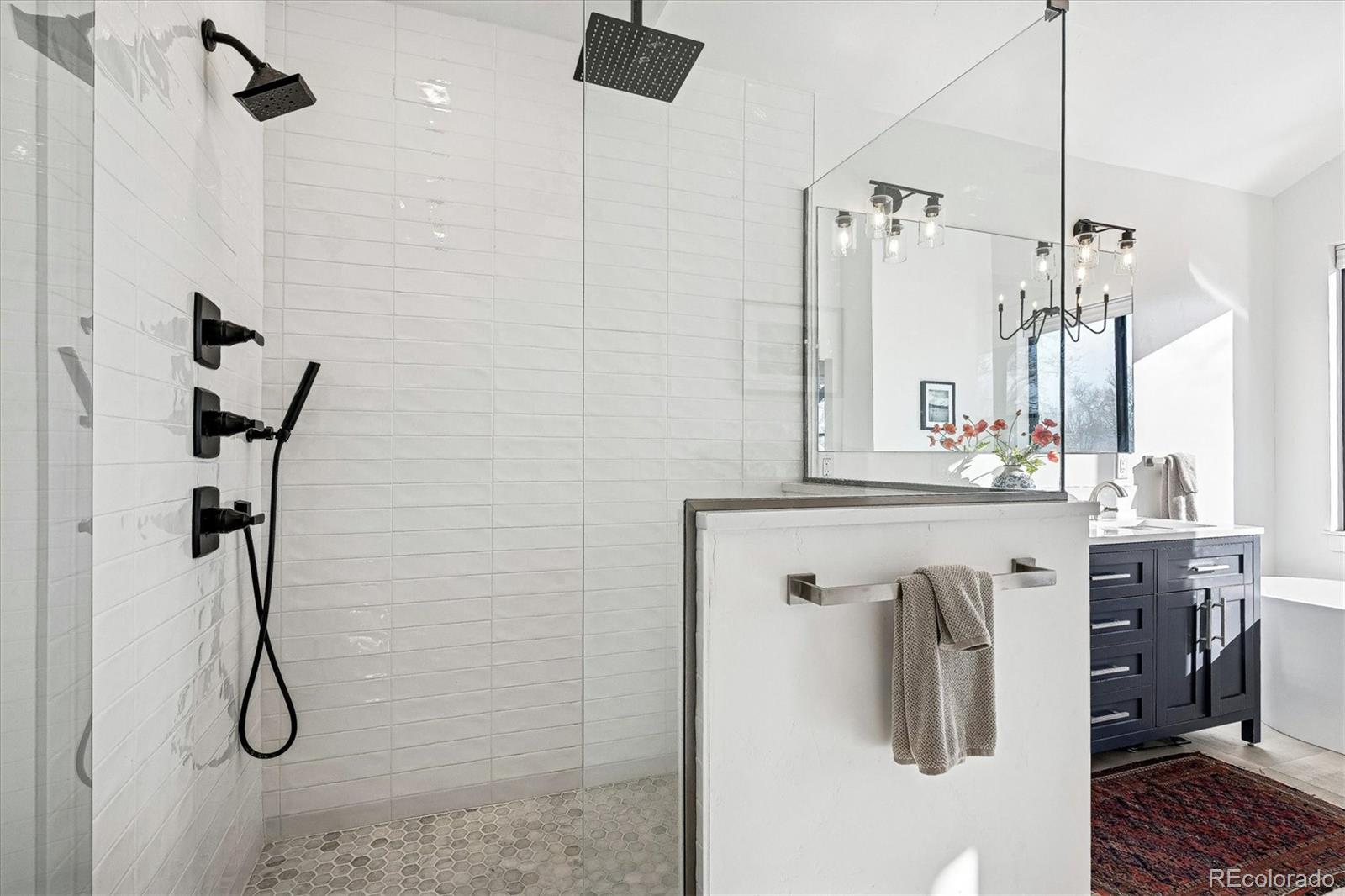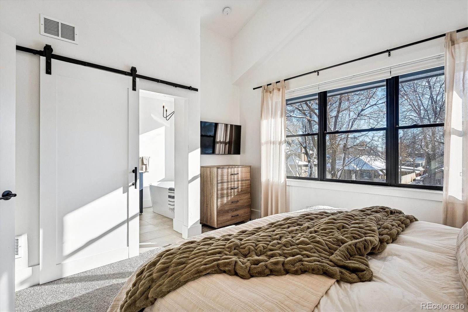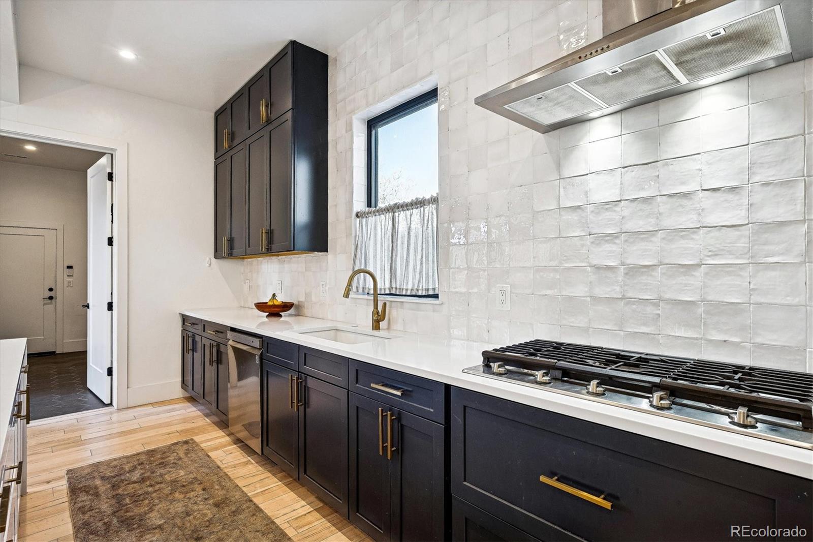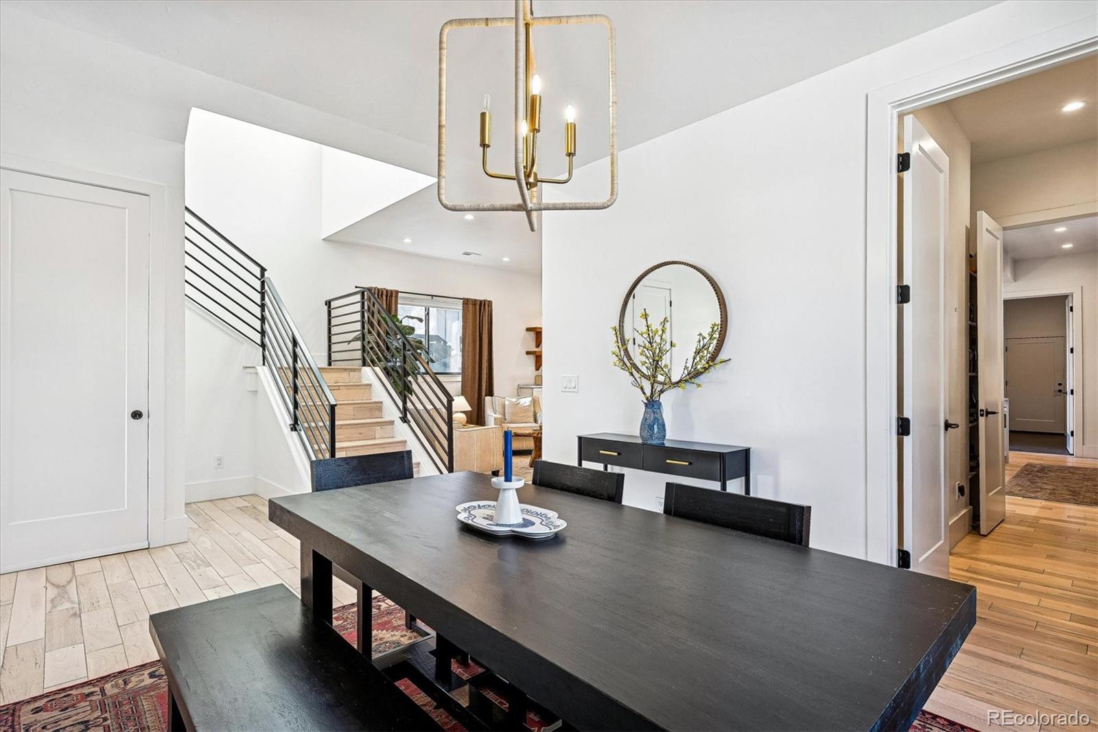 Contemporary living in highly sought-after Lower Sunnyside with true multi-generational and income opportunities. The striking black-on-black exterior and covered south-facing front porch create a bold first impression, framed by mature trees. Inside, 10′ ceilings and wide-plank hickory flooring set the tone for an inviting, modern layout. The gourmet kitchen features a waterfall island, gas range, walk-in butler’s pantry, and opens seamlessly to the dining area and living room with a gas fireplace. A main-floor study with French doors can easily serve as a fifth bedroom, while a double sliding door leads to the patio for effortless indoor-outdoor flow. One of the rare standout features is the attached 3-car garage — an exceptional find in Denver that provides ample space for vehicles, gear, and storage. Upstairs, the primary suite offers vaulted ceilings, a spa-style bath, freestanding soaking tub, oversized shower, and generous walk-in closet. Three additional bedrooms — including one with its own private en suite — all include walk-in closets. A full laundry room completes the upper level. The real value bonus is the lock-off lower level, fully furnished and designed as a private ADU with its own entrance. With 9′ ceilings, a full kitchen, family room, two bedrooms, two bathrooms, and separate laundry, it offers incredible flexibility: rent it out for passive income, host long-term guests, or enjoy a comfortable multi-generational living setup. Perfectly positioned with easy access to everywhere you want to go — just minutes to downtown Denver, a straight shot to Boulder, and quick connectivity to I-70 for mountain getaways — all while being a short walk or bike ride to LoHi, the Highlands, and Tennyson Street for dining, coffee, shopping, and everyday convenience.
