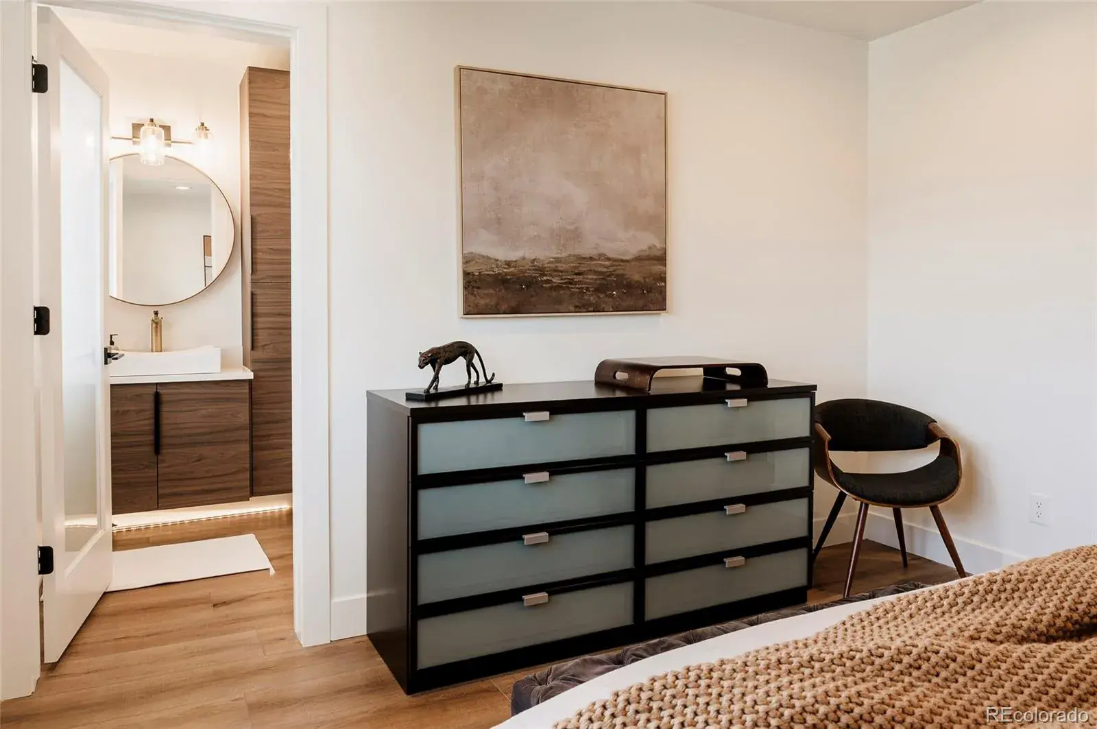 Offering 2,624 sq ft above grade and 3,584 finished sq ft total, this home blends modern architecture with incredible indoor-outdoor living. The stunning chef’s kitchen features a hidden walk-in pantry, massive 13’ island, flat-panel cabinetry, a 36” Thermador gas range with hood, and quartz countertops with dramatic waterfall edges. An overhead glass garage door floods the living space with natural light and opens seamlessly to a custom stained, stamped, and sealed concrete patio complete with an outdoor kitchen, creating the ultimate entertaining space. A hidden dog run adds convenience for pet owners.
