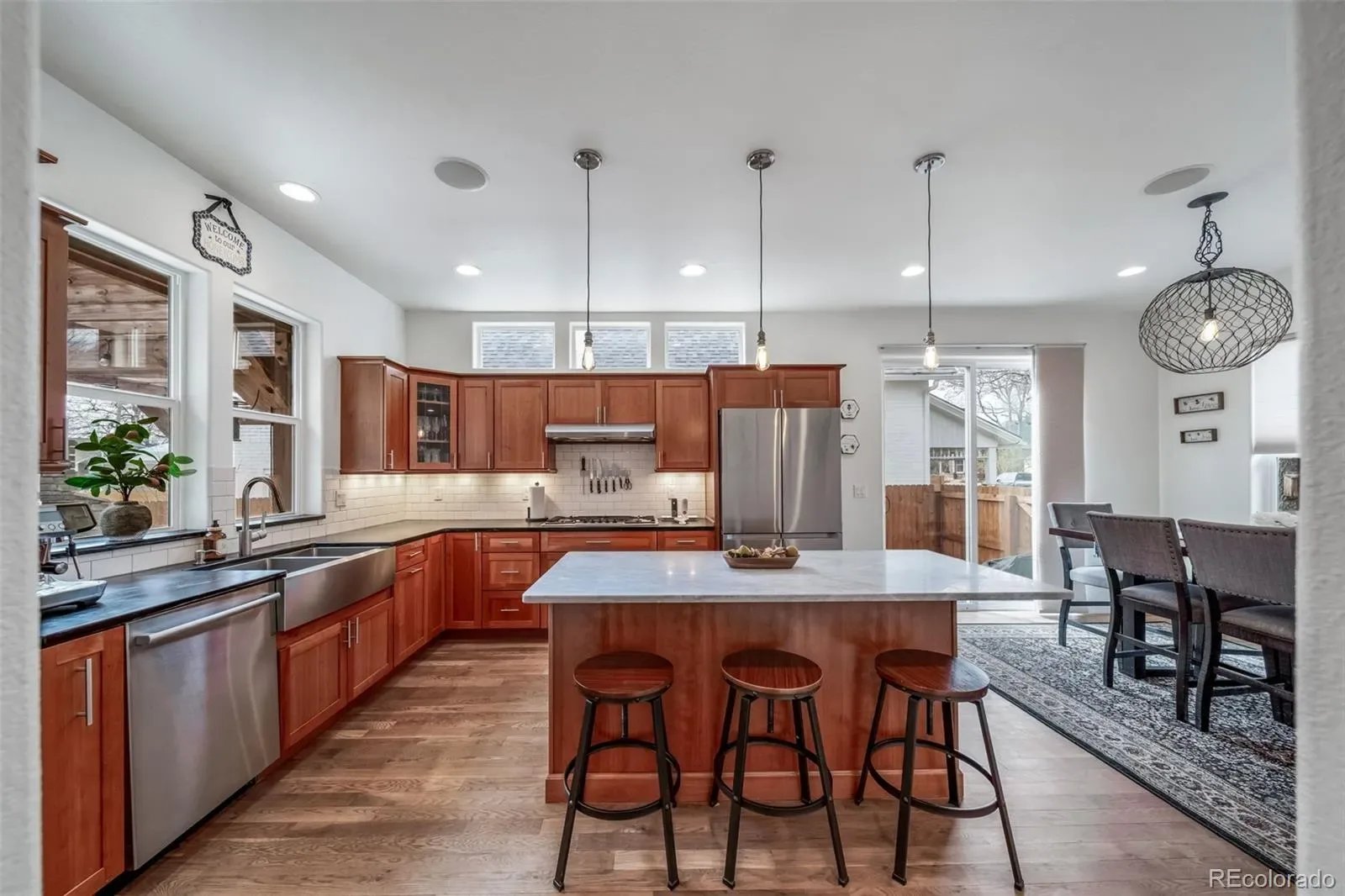This beautifully updated historic home in Sunnyside gives you quick access to Denver, it is steps from Chaffee Park, a coffee shop, restaurants and minutes from I70 and I25. You will love the kitchen, with abundant custom cabinets plus a pantry, marble and soapstone counters & high-end appliances including multiple burner gas stove, double ovens, wine cooler and refrigerator. Enjoy the natural light, the exposed brick & the sunroom. The primary bedroom has a gorgeous custom ensuite master bath with steam shower, double sink, and walk-in closet. You can see the city and for miles when you enjoy the large 2nd story deck. The basement apartment has exterior and interior entrances and a proven short term rental history giving you the ability to offset costs, have private “in-law” space or use as your own personal space. The sellers plan to leave the furniture in the AirBNB if the buyers would like those. The back patio gives you that cozy Colorado feel with the outdoor wood fireplace & hot tub. There is space inside the fence to park your RV and 2 cars in addition to the two car garage! The basement bedroom is non-conforming.