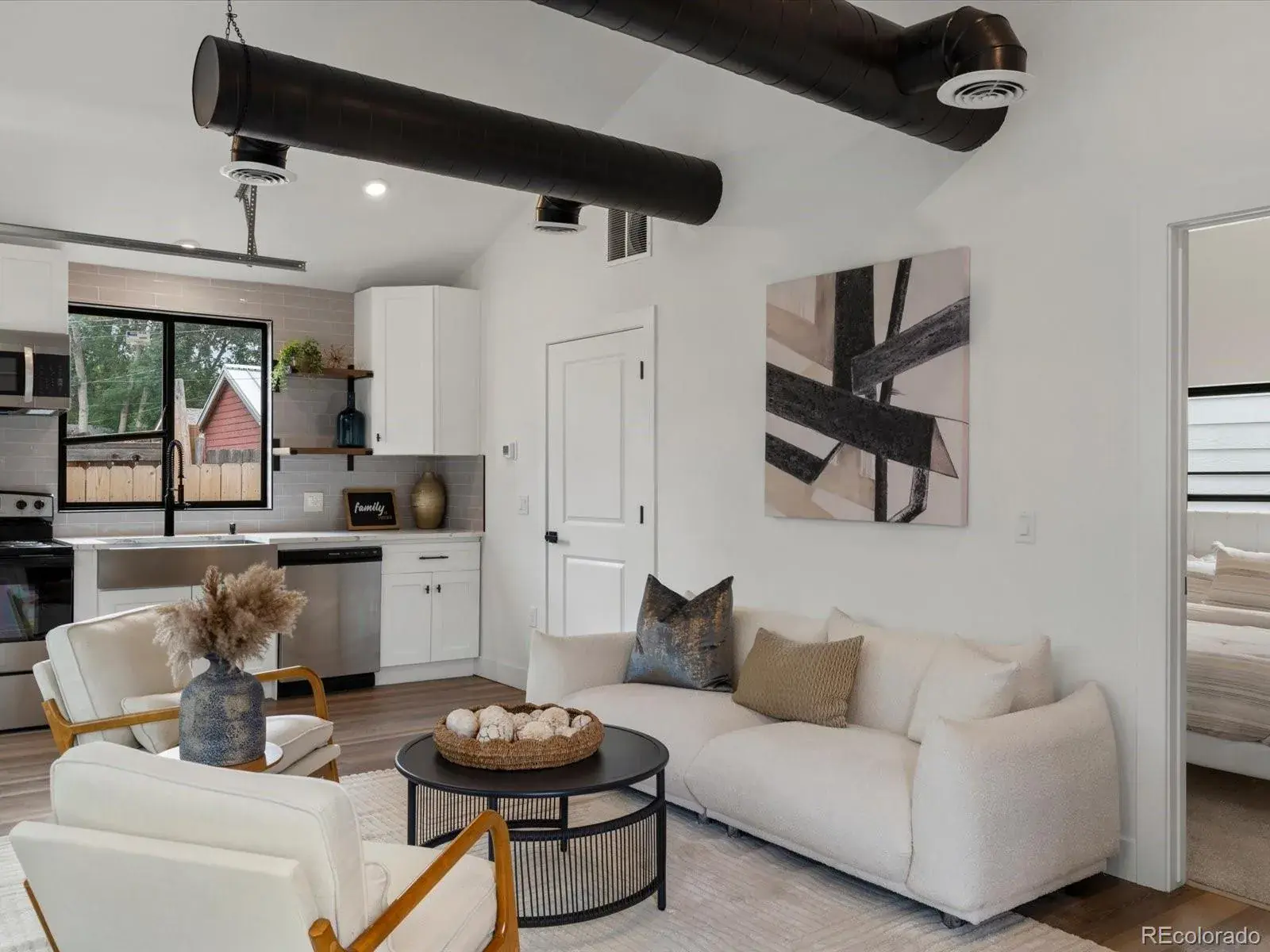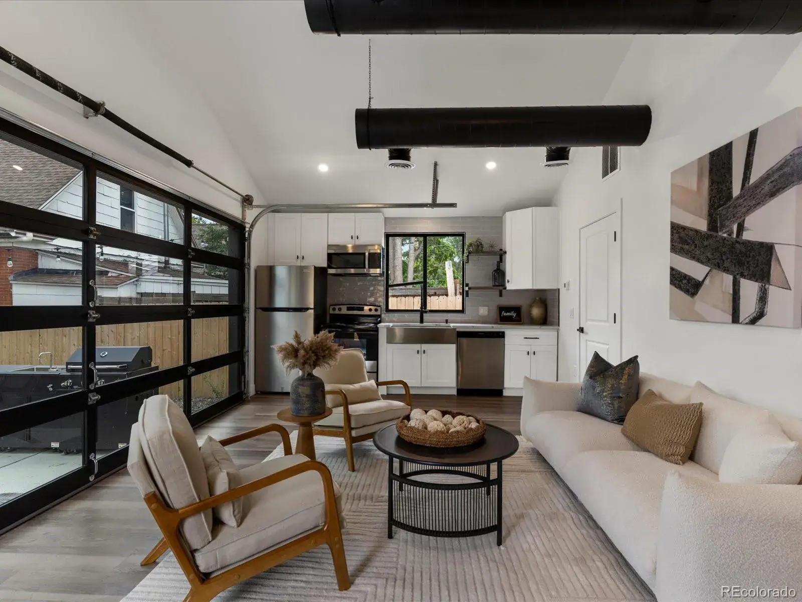 The detached ADU adds exceptional flexibility with a spacious bedroom, a kitchen with essential appliances, a comfortable living area that functions as an entertaining hub for the backyard/main home, and a dedicated bathroom, ideal for overnight guests or day-of hosting.