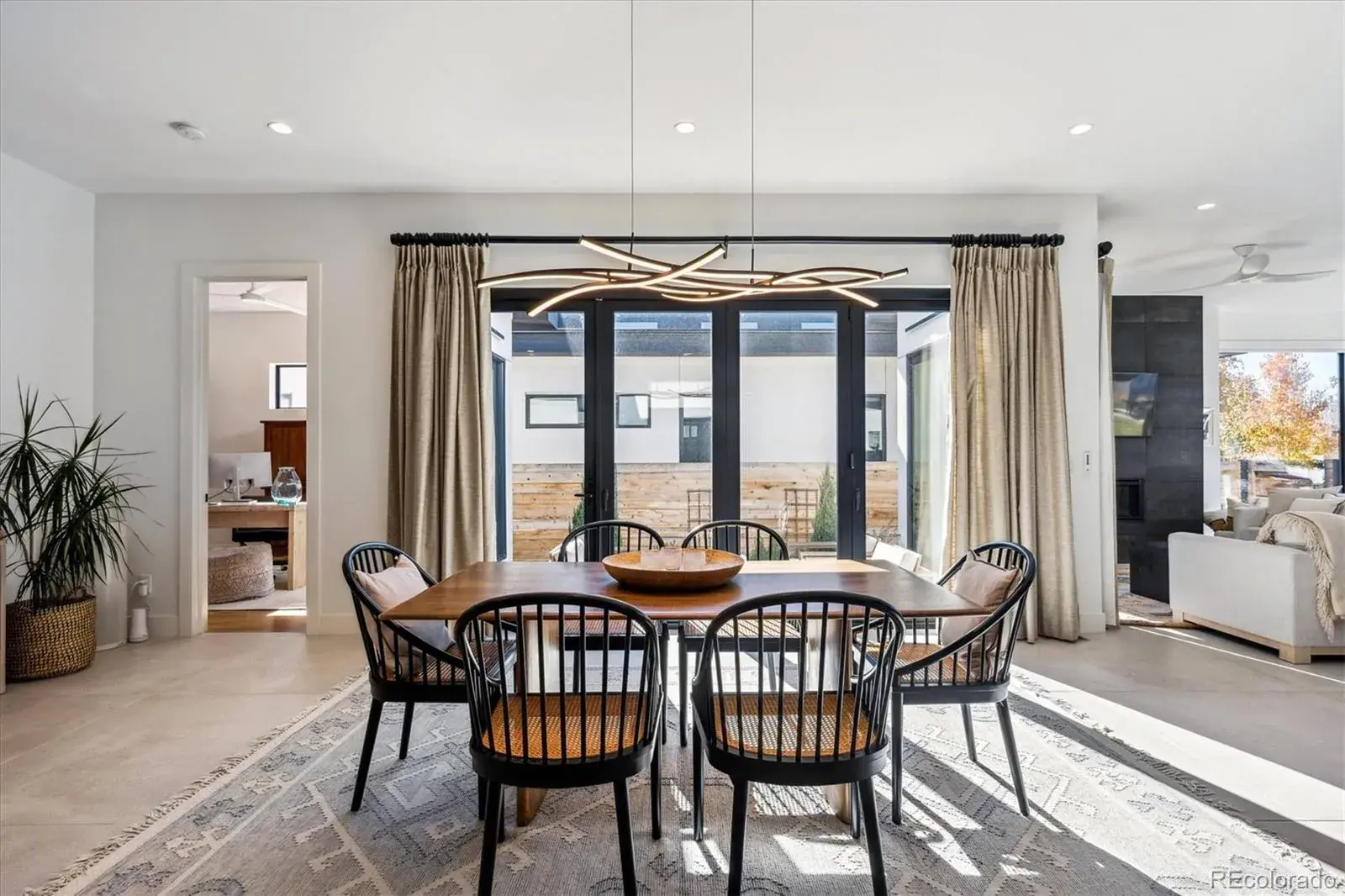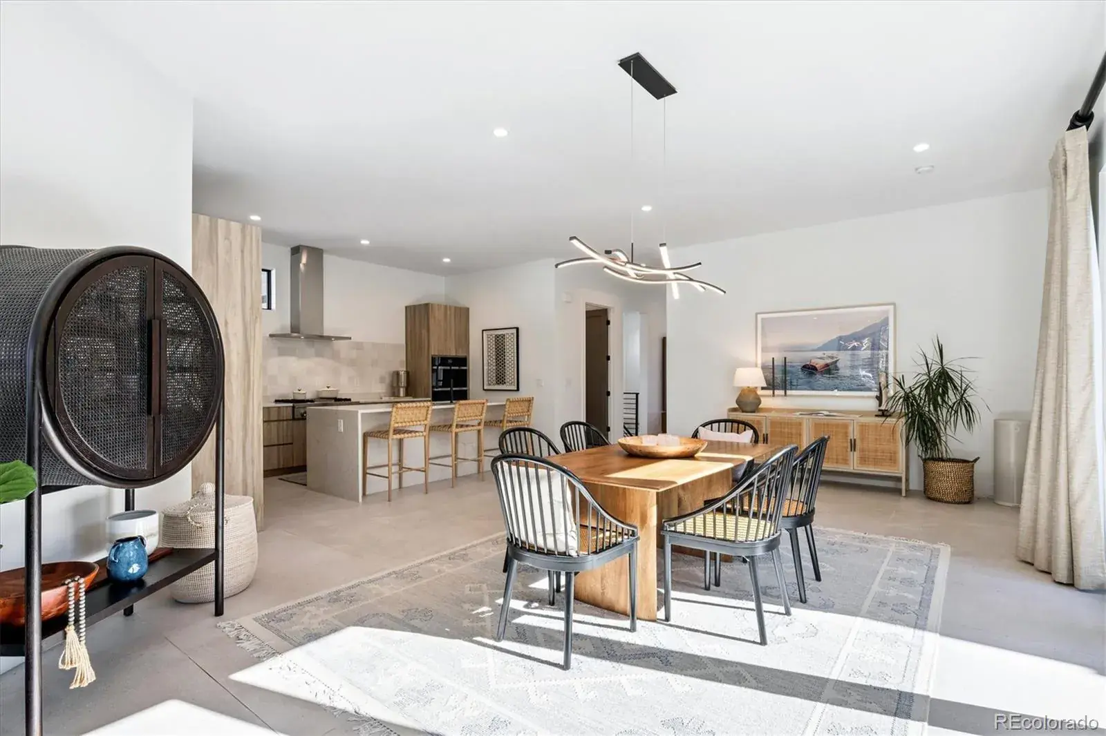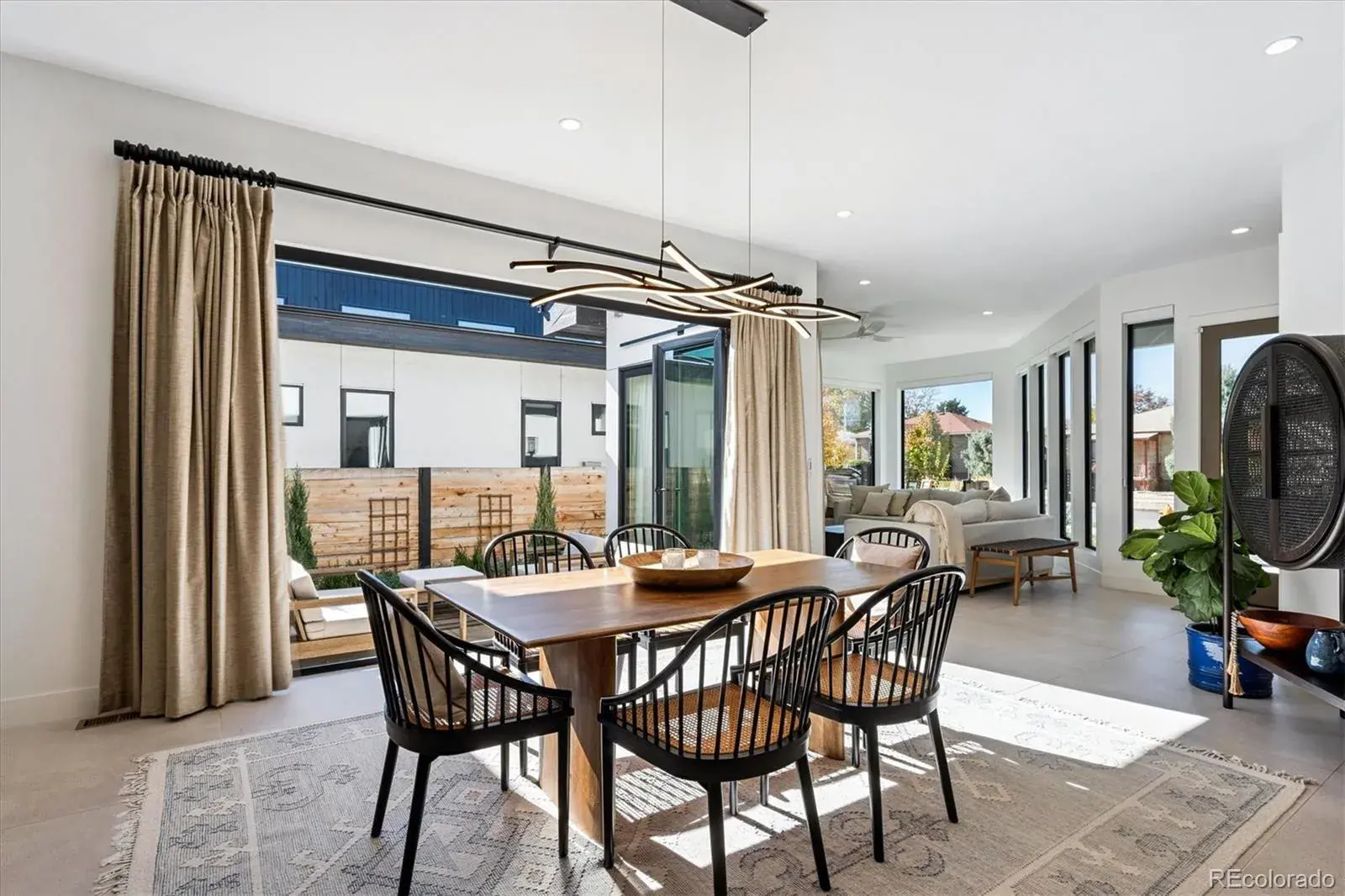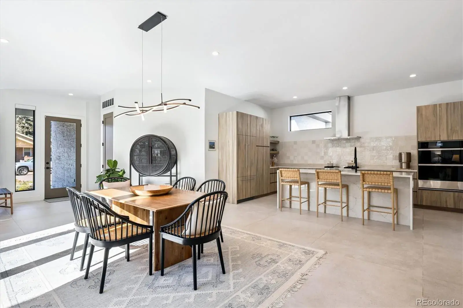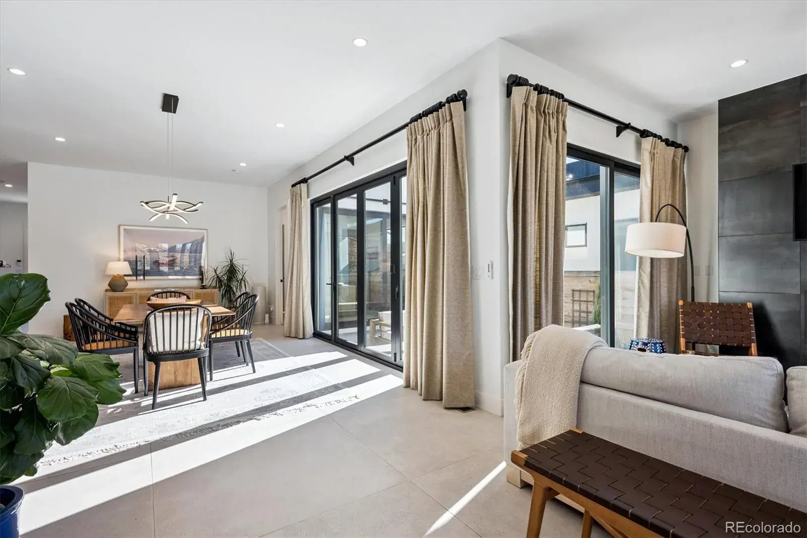 *$15,000 Lender Concession Offered For Rate Buy Down and/or Closing! Stunning Mid-Century Modern masterpiece in the heart of Sunnyside, offering ranch-style living at its finest. Filled with natural light from expansive windows, this home showcases an open floor plan designed for effortless everyday living and elegant entertaining. Accordion-style doors create a seamless transition for indoor-outdoor living, leading to a private terrace perfect for relaxing or hosting guests. Designer finishes abound, featuring high-end Porcelanosa tile and thoughtfully curated details throughout. At the heart of the home, the chef’s kitchen impresses with quartz countertops, a waterfall island, Dacor French Door refrigerator, JennAir range top and oven/microwave combo, custom tile backsplash, and upgraded lighting selections—ideal for both cooking and entertaining. The main level includes a luxurious primary suite with walk-in closet and spa-inspired bath complete with standalone tub, dual vanities, and walk-in shower. Two additional bedrooms share a Jack-and-Jill bath, while an exquisite powder room showcases designer wallpaper. Custom curtains in select rooms, Hunter Douglas Roman shades in all bedrooms, and remote-control shades in the primary suite and living room add both function and sophistication, complemented by a whole-house Honeywell steam humidifier. The fully finished basement extends the living space with an expansive recreation room, wet bar with refrigerator and dishwasher, three additional bedrooms, full bath, second laundry hookup, and plush wool carpeting—just another of the home’s many upgrades. Outside, enjoy a professionally designed and landscaped backyard with a custom garden box, perfect for outdoor dining and relaxation. Completing this exceptional property is a detached three-car garage. Ideally located just steps from Rocky Mountain Lake Park and Berkeley Lake Park, and near Tennyson Street, the Highlands, and downtown Denver.