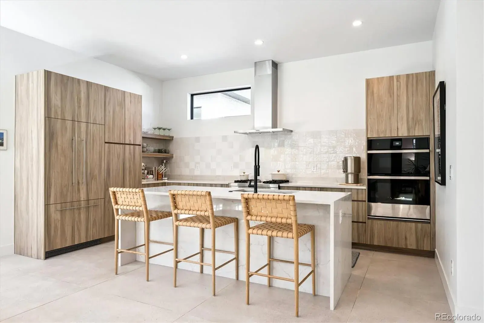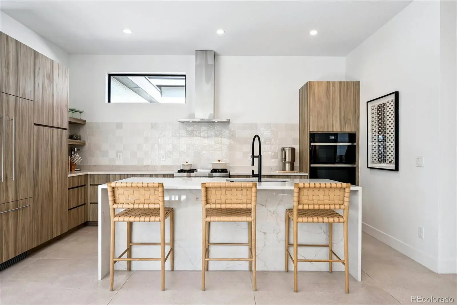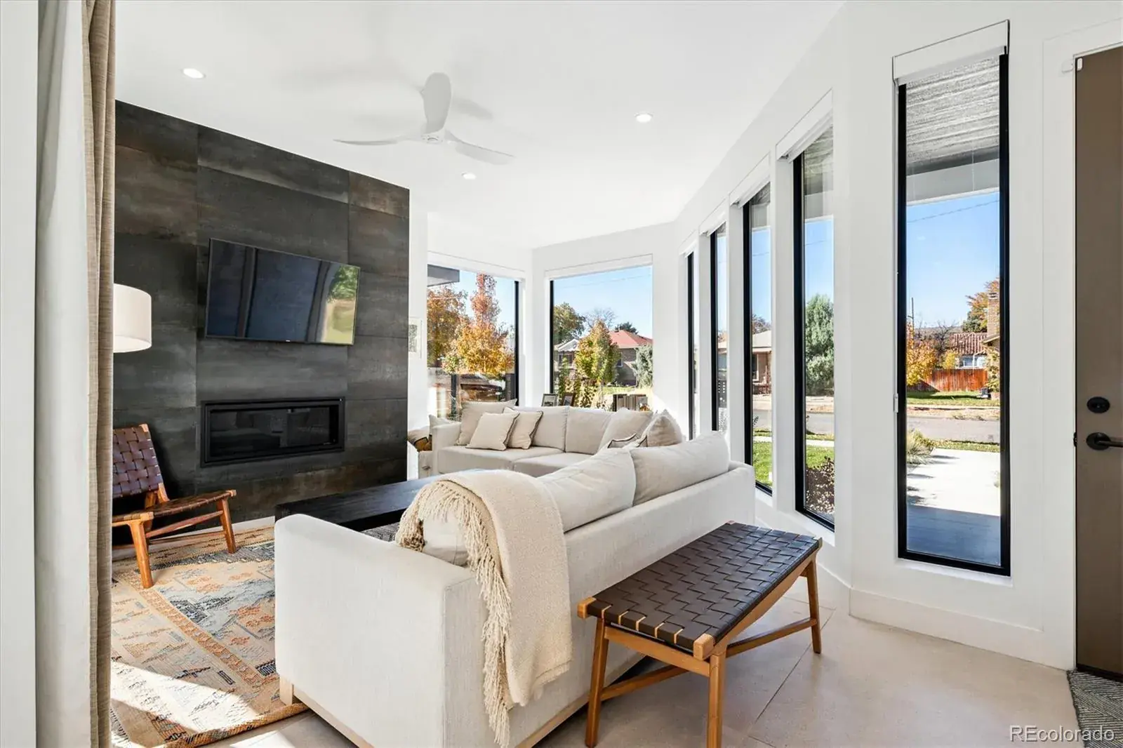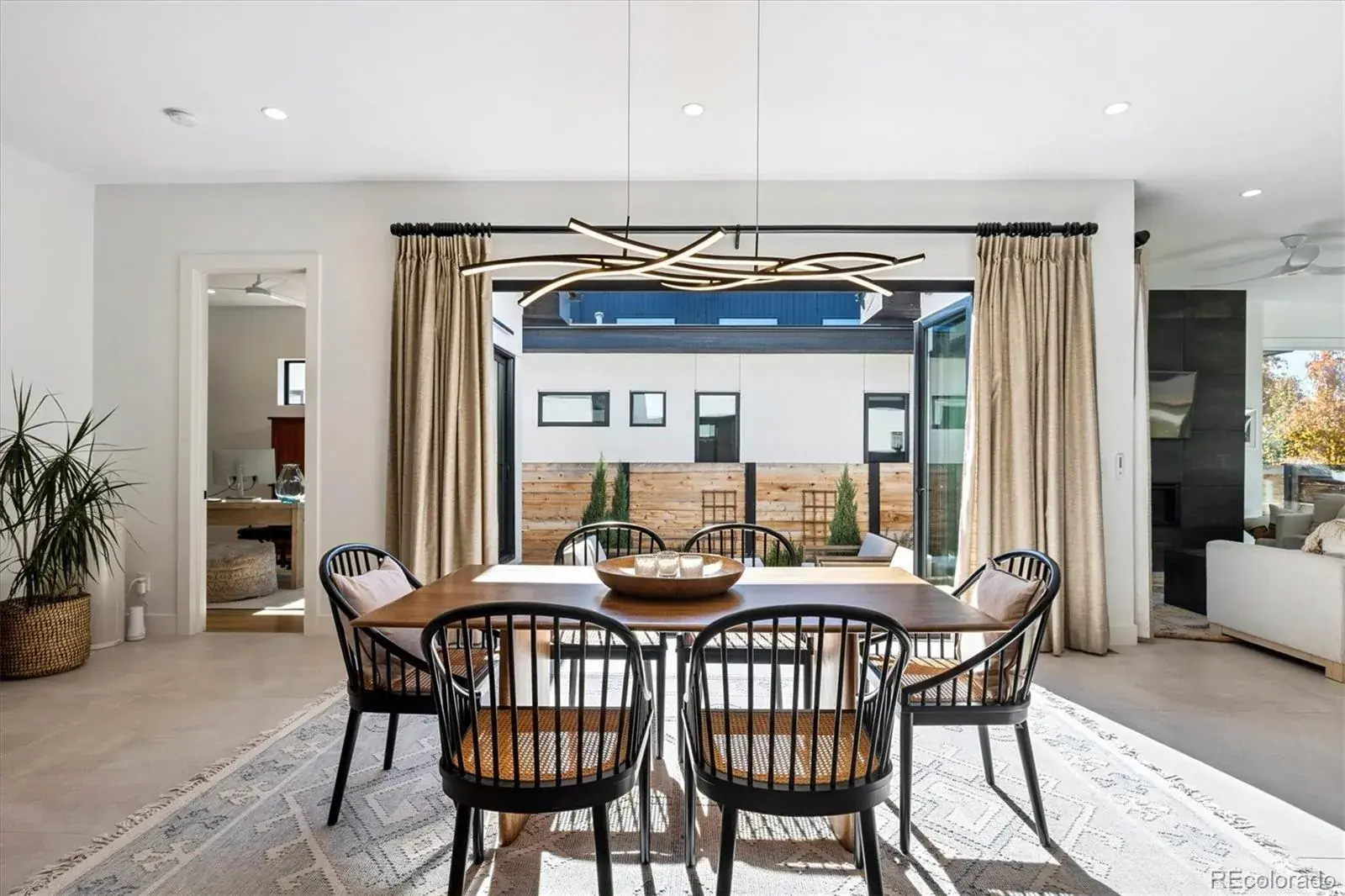 *$15,000 Lender Concession Offered For Rate Buy Down and/or Closing! Stunning Mid-Century Modern masterpiece in the heart of Sunnyside, offering ranch-style living at its finest. Filled with natural light from expansive windows, this home showcases an open floor plan designed for effortless everyday living and elegant entertaining. Accordion-style doors create a seamless transition for indoor-outdoor living, leading to a private terrace perfect for relaxing or hosting guests. Designer finishes abound, featuring high-end Porcelanosa tile and thoughtfully curated details throughout. At the heart of the home, the chef’s kitchen impresses with quartz countertops, a waterfall island, Dacor French Door refrigerator, JennAir range top and oven/microwave combo, custom tile backsplash, and upgraded lighting selections—ideal for both cooking and entertaining. The main level includes a luxurious primary suite with walk-in closet and spa-inspired bath complete with standalone tub, dual vanities, and walk-in shower. Two additional bedrooms share a Jack-and-Jill bath, while an exquisite powder room showcases designer wallpaper. Custom curtains in select rooms, Hunter Douglas Roman shades in all bedrooms, and remote-control shades in the primary suite and living room add both function and sophistication, complemented by a whole-house Honeywell steam humidifier. The fully finished basement extends the living space with an expansive recreation room, wet bar with refrigerator and dishwasher, three additional bedrooms, full bath, second laundry hookup, and plush wool carpeting—just another of the home’s many upgrades. Outside, enjoy a professionally designed and landscaped backyard with a custom garden box, perfect for outdoor dining and relaxation. Completing this exceptional property is a detached three-car garage. Ideally located just steps from Rocky Mountain Lake Park and Berkeley Lake Park, and near Tennyson Street, the Highlands, and downtown Denver.