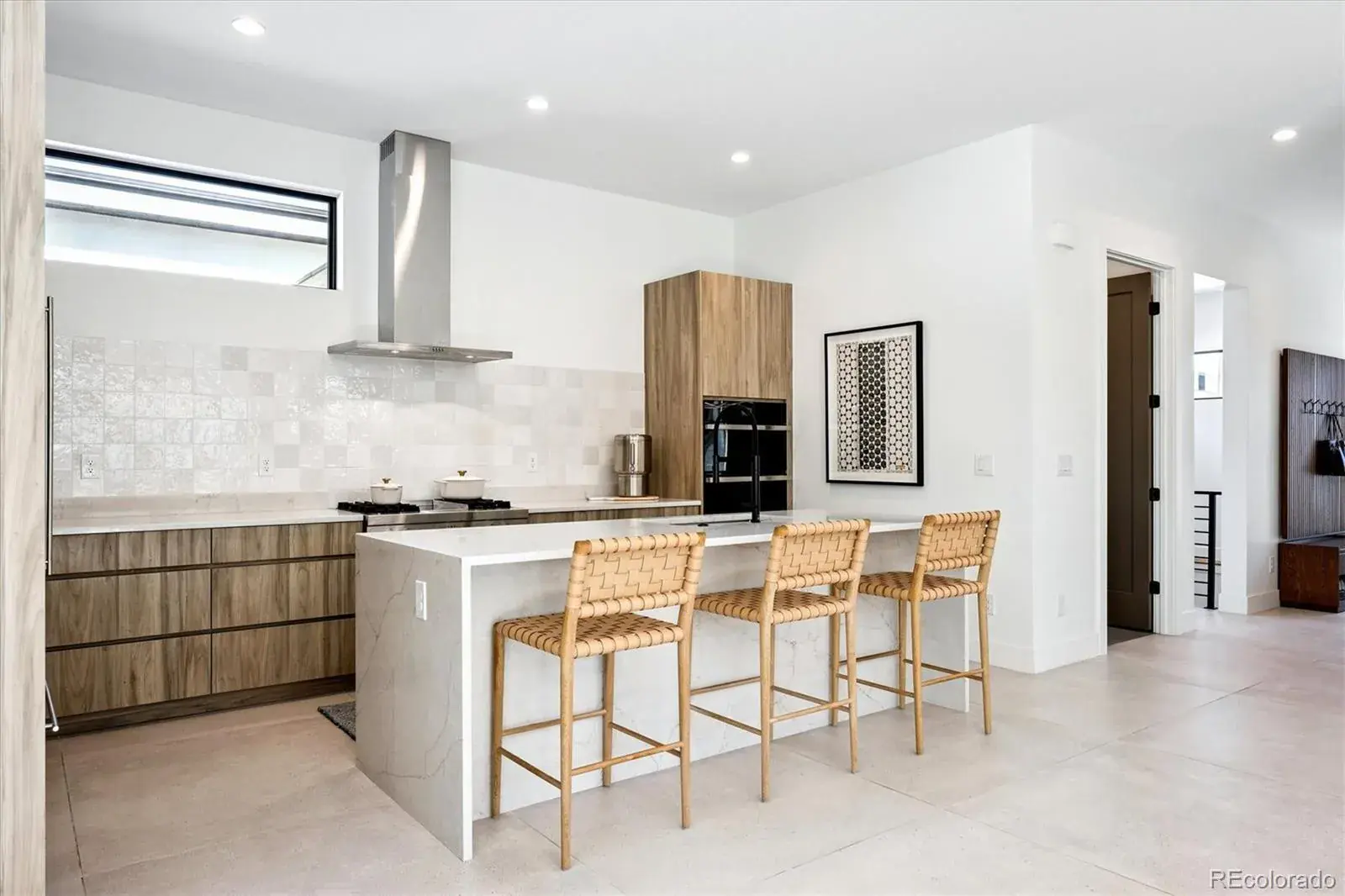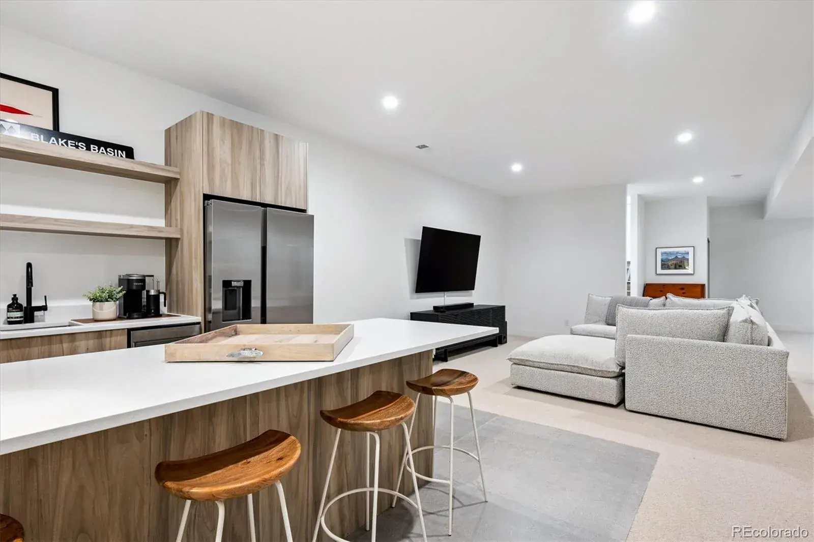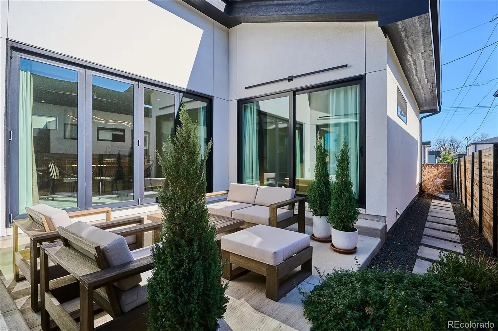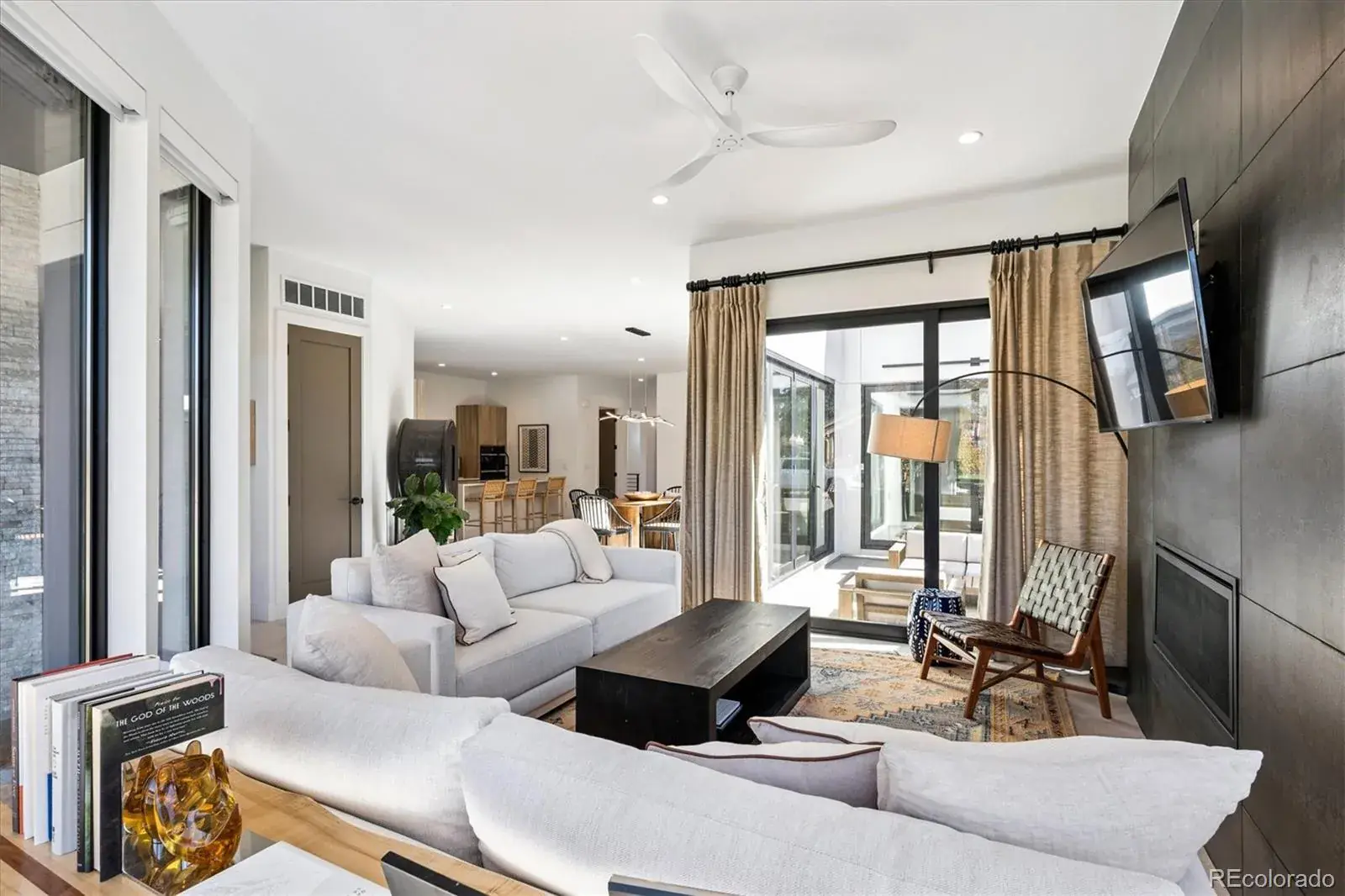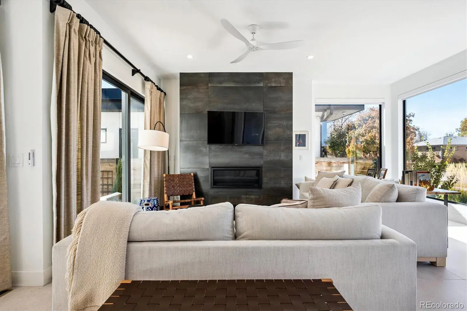 *$15,000 Lender Concession Offered For Rate Buy Down and/or Closing! Stunning Mid-Century Modern masterpiece in the heart of Sunnyside, offering ranch-style living at its finest. Filled with natural light from expansive windows, this home showcases an open floor plan designed for effortless everyday living and elegant entertaining. Accordion-style doors create a seamless transition for indoor-outdoor living, leading to a private terrace perfect for relaxing or hosting guests. Designer finishes abound, featuring high-end Porcelanosa tile and thoughtfully curated details throughout. At the heart of the home, the chef’s kitchen impresses with quartz countertops, a waterfall island, Dacor French Door refrigerator, JennAir range top and oven/microwave combo, custom tile backsplash, and upgraded lighting selections—ideal for both cooking and entertaining. The main level includes a luxurious primary suite with walk-in closet and spa-inspired bath complete with standalone tub, dual vanities, and walk-in shower. Two additional bedrooms share a Jack-and-Jill bath, while an exquisite powder room showcases designer wallpaper. Custom curtains in select rooms, Hunter Douglas Roman shades in all bedrooms, and remote-control shades in the primary suite and living room add both function and sophistication, complemented by a whole-house Honeywell steam humidifier. The fully finished basement extends the living space with an expansive recreation room, wet bar with refrigerator and dishwasher, three additional bedrooms, full bath, second laundry hookup, and plush wool carpeting—just another of the home’s many upgrades. Outside, enjoy a professionally designed and landscaped backyard with a custom garden box, perfect for outdoor dining and relaxation. Completing this exceptional property is a detached three-car garage. Ideally located just steps from Rocky Mountain Lake Park and Berkeley Lake Park, and near Tennyson Street, the Highlands, and downtown Denver.
