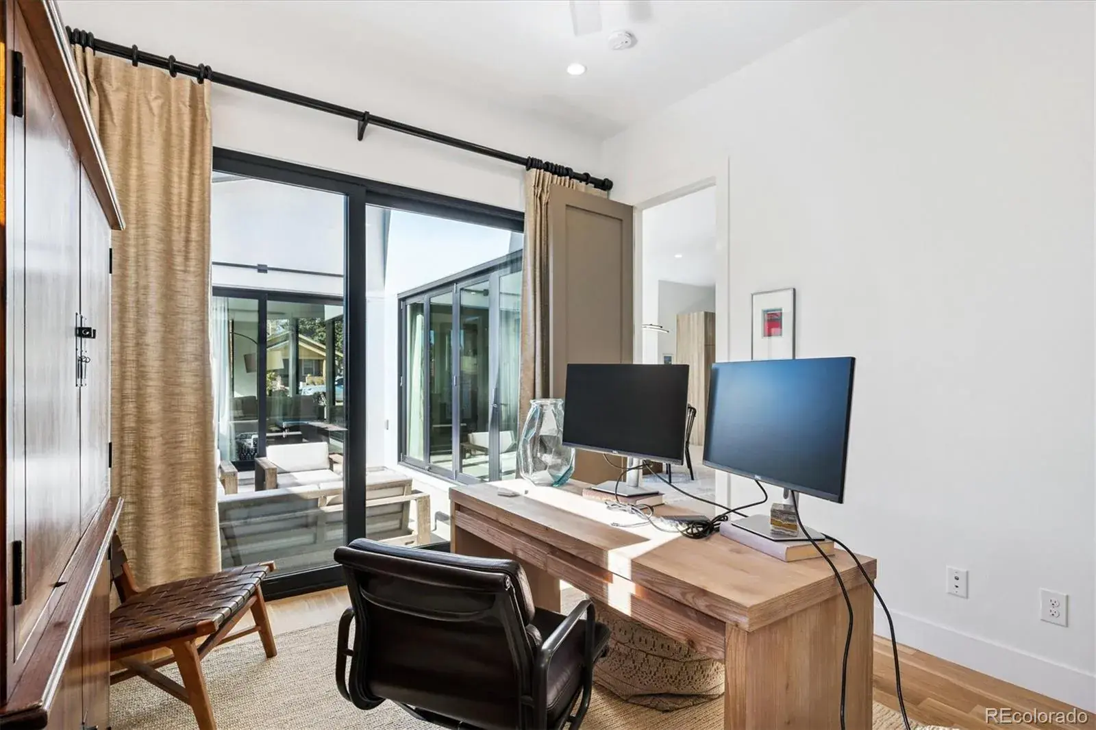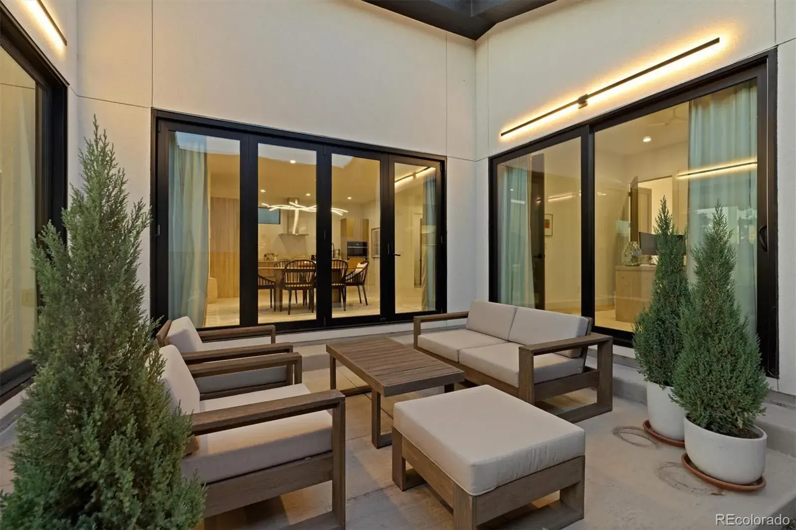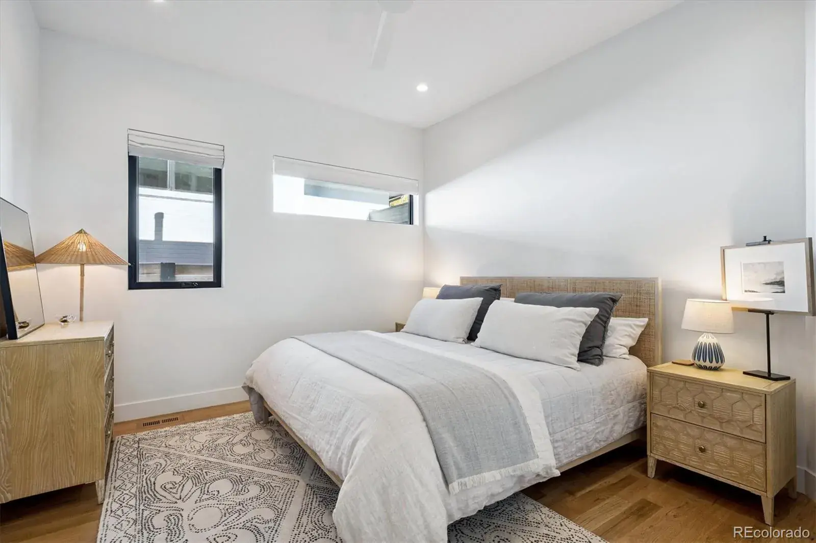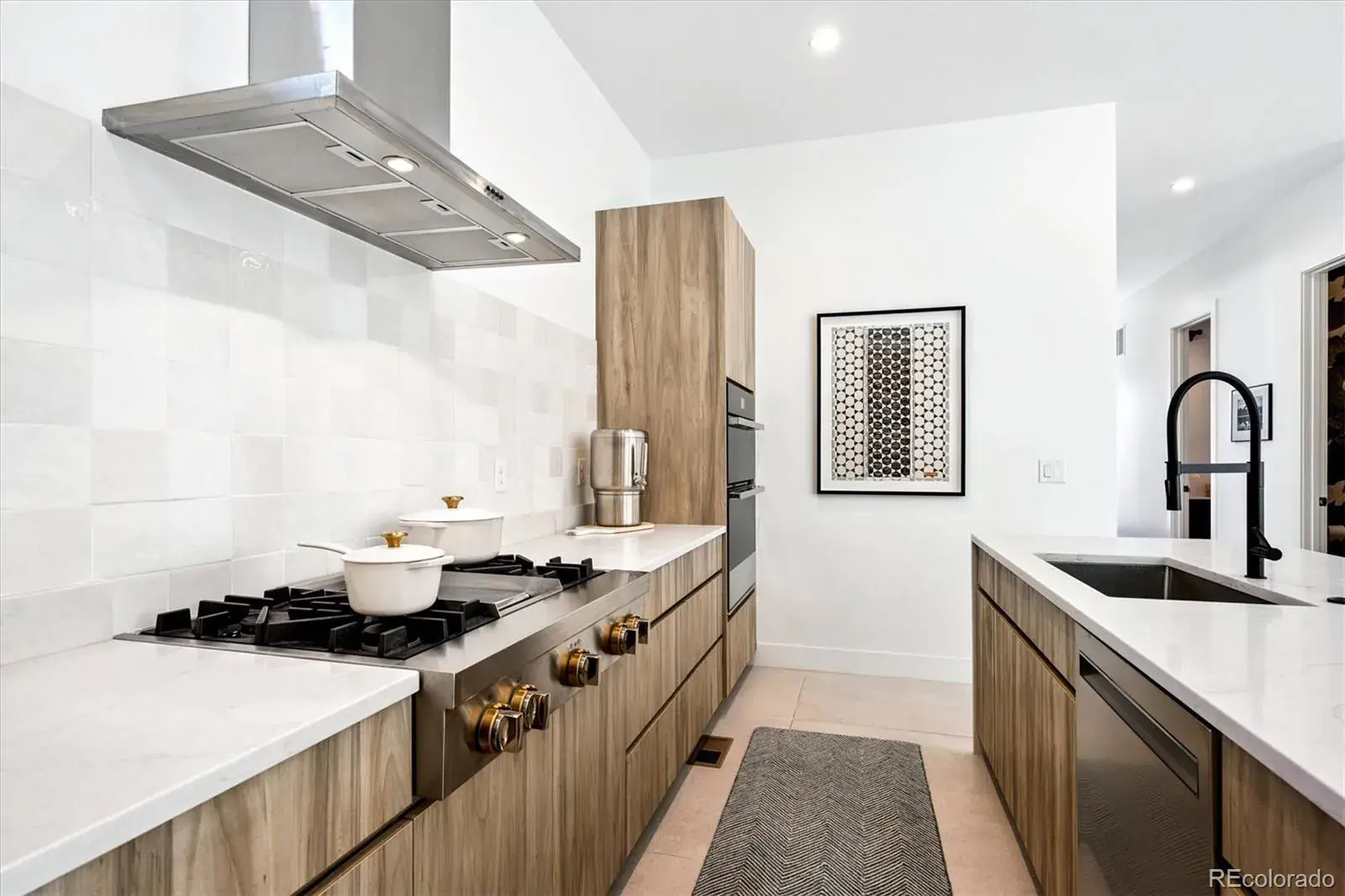 *$15,000 Lender Concession Offered For Rate Buy Down and/or Closing! Stunning Mid-Century Modern masterpiece in the heart of Sunnyside, offering ranch-style living at its finest. Filled with natural light from expansive windows, this home showcases an open floor plan designed for effortless everyday living and elegant entertaining. Accordion-style doors create a seamless transition for indoor-outdoor living, leading to a private terrace perfect for relaxing or hosting guests. Designer finishes abound, featuring high-end Porcelanosa tile and thoughtfully curated details throughout. At the heart of the home, the chef’s kitchen impresses with quartz countertops, a waterfall island, Dacor French Door refrigerator, JennAir range top and oven/microwave combo, custom tile backsplash, and upgraded lighting selections—ideal for both cooking and entertaining. The main level includes a luxurious primary suite with walk-in closet and spa-inspired bath complete with standalone tub, dual vanities, and walk-in shower. Two additional bedrooms share a Jack-and-Jill bath, while an exquisite powder room showcases designer wallpaper. Custom curtains in select rooms, Hunter Douglas Roman shades in all bedrooms, and remote-control shades in the primary suite and living room add both function and sophistication, complemented by a whole-house Honeywell steam humidifier. The fully finished basement extends the living space with an expansive recreation room, wet bar with refrigerator and dishwasher, three additional bedrooms, full bath, second laundry hookup, and plush wool carpeting—just another of the home’s many upgrades. Outside, enjoy a professionally designed and landscaped backyard with a custom garden box, perfect for outdoor dining and relaxation. Completing this exceptional property is a detached three-car garage. Ideally located just steps from Rocky Mountain Lake Park and Berkeley Lake Park, and near Tennyson Street, the Highlands, and downtown Denver.