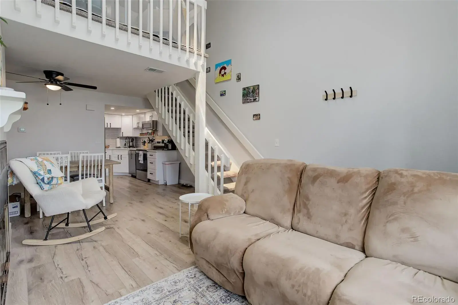 Beautifully remodeled from top to bottom. This 2 bedroom, 2 bath home has had virtually everything replaced in the last 18 months. Bright, south facing home feels extra spacious because of the vaulted ceiling, light walls, and beautiful light wood shaded LVP floors. Large, triple pane picture window lets in plenty of sunlight. Rare wood burning fireplace, quartz countertops, and stainless appliances are just some of the features that make this home special. The floorplan is open, perfect for entertaining. Bedrooms and remodeled baths on the lower and upper floors are perfect for a small family or a home office. The back deck offers additional space for entertaining or relaxing. This home is conveniently located close to the Denver Tech Center, restaurants, and shopping, and is adjacent to the Highline Canal trail system. The neighborhood is a peaceful, quiet part of southeast Denver.