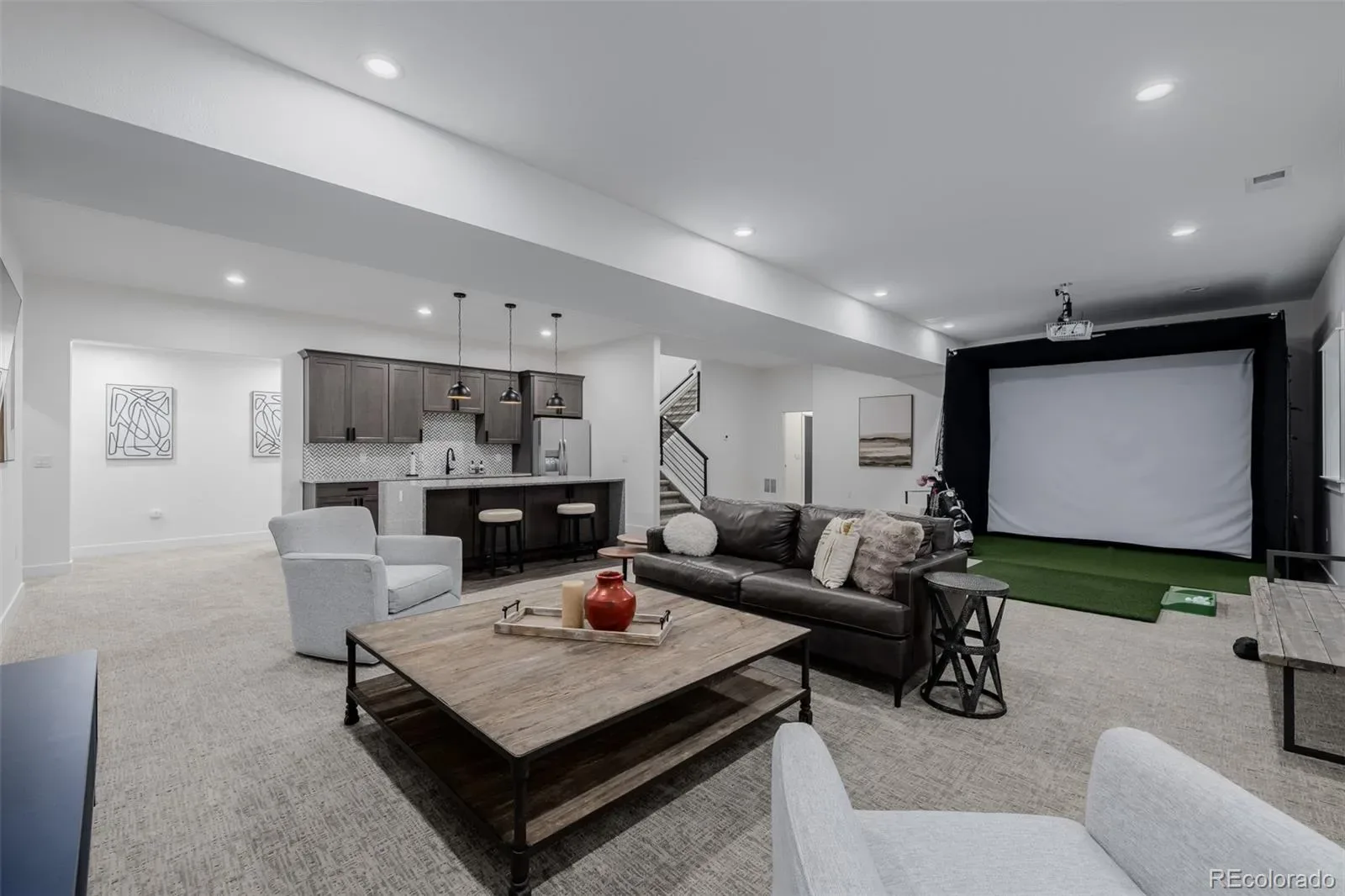 The finished basement adds exceptional functionality, featuring a secondary kitchen, expansive living space, 2 additional bedrooms with en-suite bathrooms, a sports/entertainment TV wall and a versatile bonus room ideal for a home office, gym, or retreat. With ceilings tall enough to accommodate a golf simulator, it offers a truly elevated entertainment experience.
